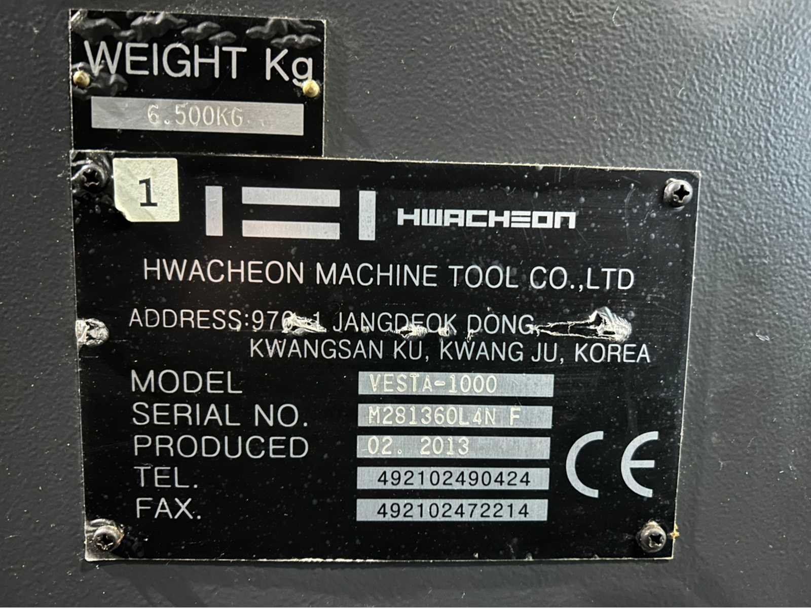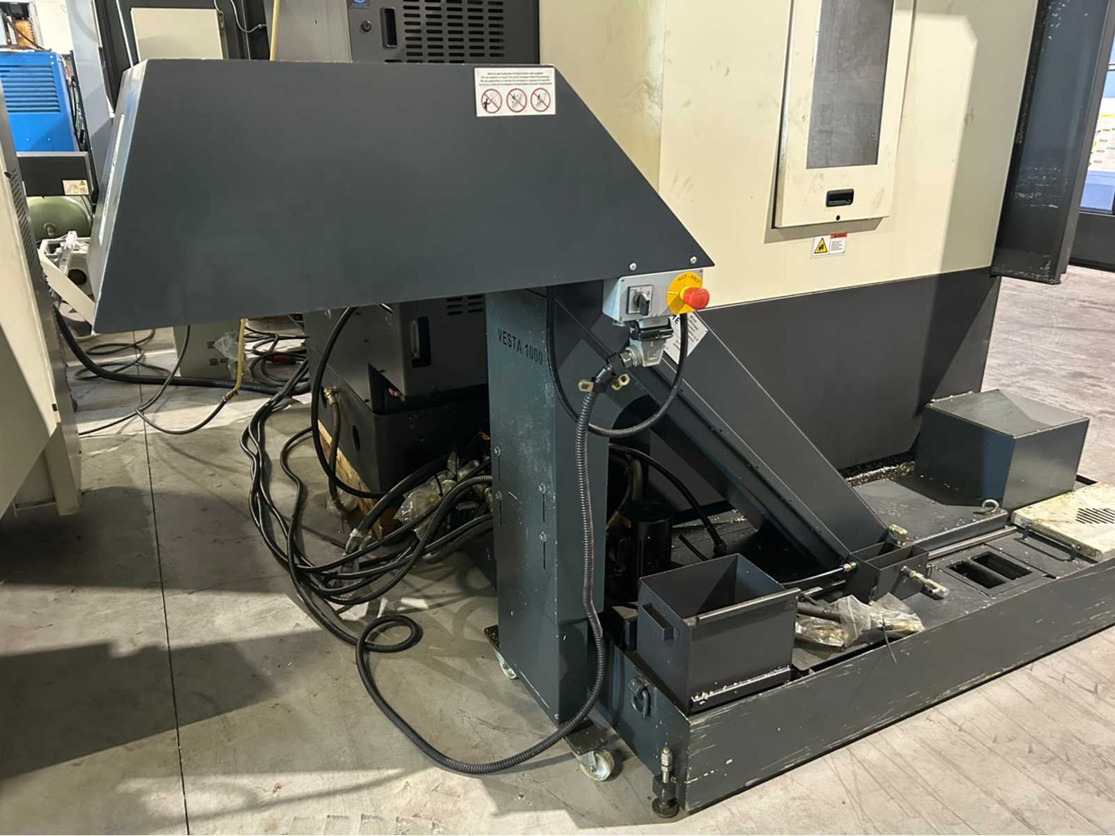Besturing: Fanuc 0i-MD Snijtijd: 2011 uur - X-as: 1000mm - Y-as: 550 mm - Z-as: 500mm - Spilafstand tot tafel: 130 ~ 630 mm - Tafelgrootte: 1100mm x 502mm - Maximaal onderdeelgewicht: 700 kg - Spilsnelheid: 10.000 tpm - Spiltaps: BT-40 - Spindelmotorvermogen: 11kW - Posities op gereedschapsmagazine: 24 Merk: Hwacheon Type: Vesta 1000 Bouwjaar: 2013 Serienummer: M281360L4N F Opname iso: BT-40 Verplaatsing x-as: 1000mm Verplaatsing y-as: 550mm Verplaatsing z-as: 500mm Snelheid tot n =: 10000rpm Afgelezen urenstand: 2011 CNC-besturing, merk, type: Fanuc 0i-MD Spanentransporteur: true Koelmiddelpomp: true Werkstuk gewicht max.: 700kg T-gleuf opspantafelafmeting B: 502mm T-gleuf opspantafelafmeting L: 1100mm -assig: 3 Motorvermogen (kW): 11kW Handboek aanwezig: true Aansluiting: 400V Totale afmeting Hoogte: 2600mm Totale afmeting Breedte: 2180mm Totale afmeting L: 3270mm Machinegewicht: 6500kg