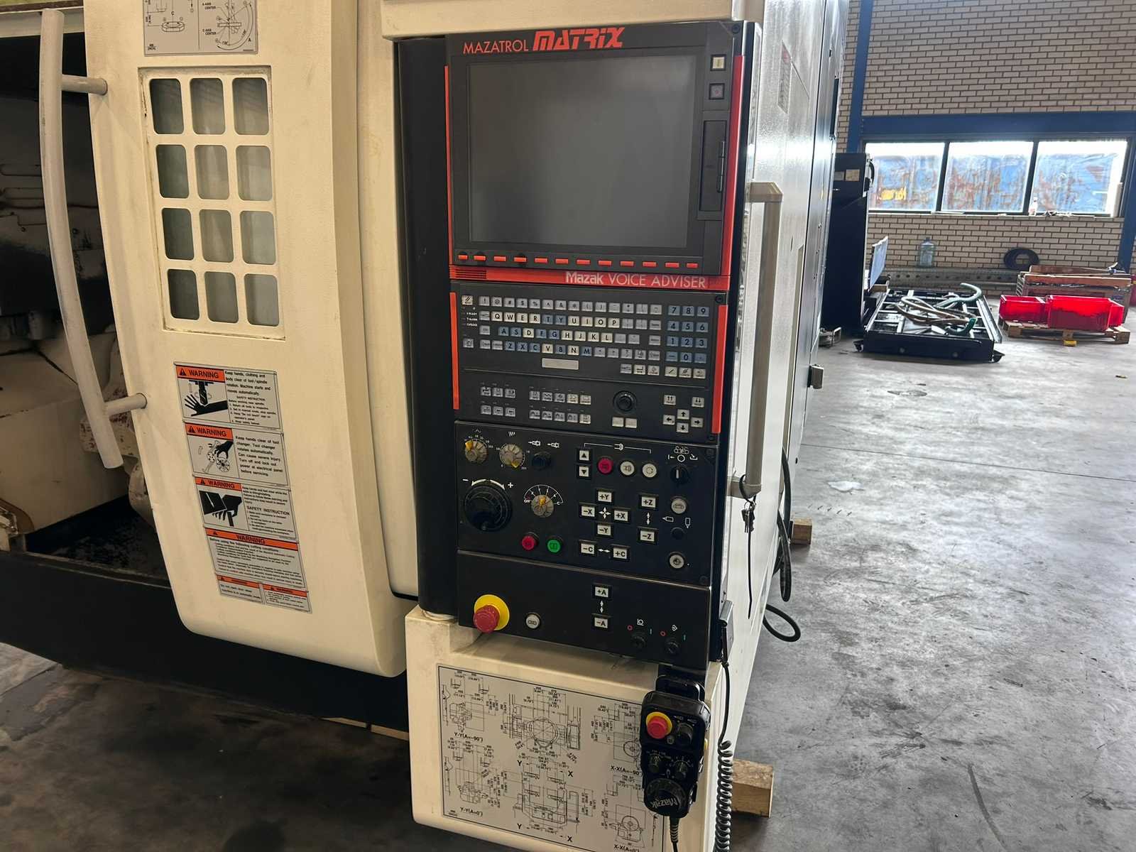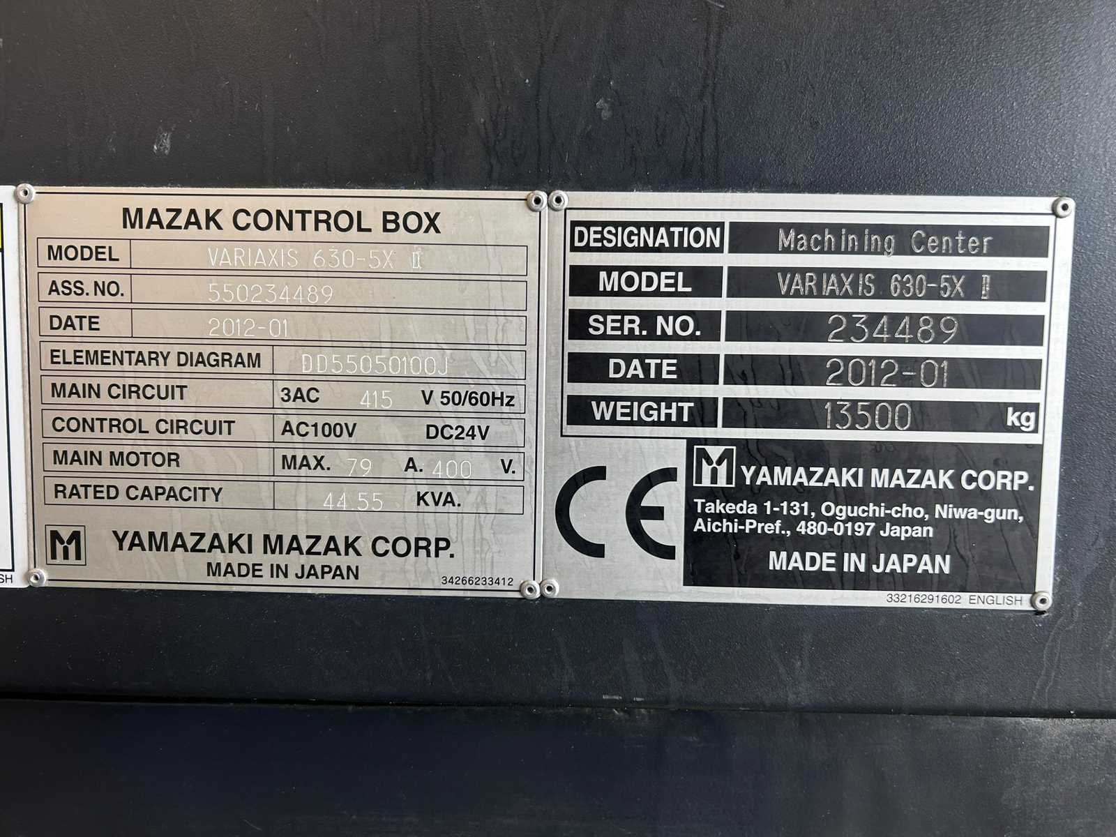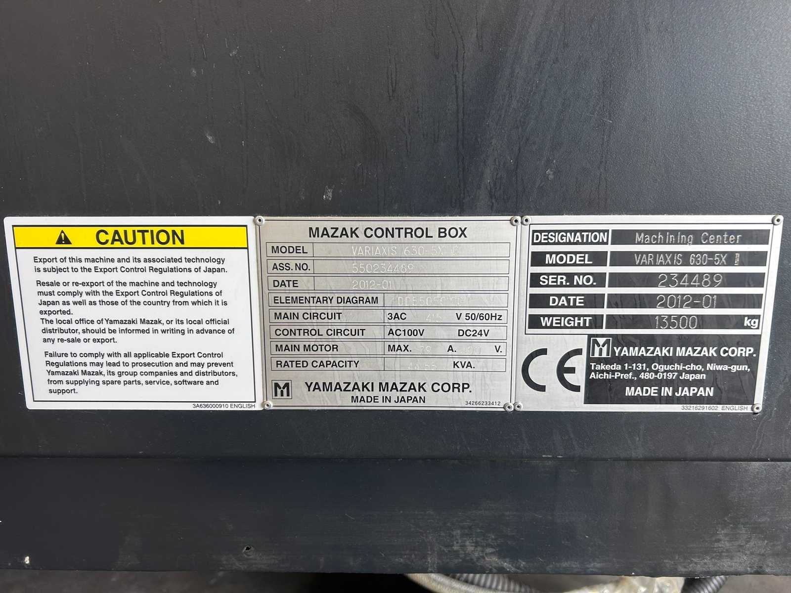 5-as gelijktijdig! X-as: 630mm Y-as: 765 mm Z-as: 510mm A-as: -120° ~ +30° C-as: 360° Posities op ATC: 40 De machine is uitgerust met: - chiptransporteur - chipcontainer - Doorspoelkoelmiddel Merk: Mazak Type: Variaxis 630-5X II Bouwjaar: 2012 Serienummer: 234489 Opname iso: BT-40 Verplaatsing x-as: 630mm Verplaatsing y-as: 765mm Verplaatsing z-as: 510mm Snelheid tot n =: 12000rpm CNC-besturing, merk, type: Mazatrol Matrix Spanentransporteur: true Koelmiddelpomp: true Werkstuk gewicht max.: 500kg T-gleuf opspantafelafmeting B: 500mm T-gleuf opspantafelafmeting L: 630mm -assig: 5 Motorvermogen (kW): 26kW Handboek aanwezig: true Aansluiting: 400V Totale afmeting Hoogte: 3270mm Totale afmeting Breedte: 2470mm Totale afmeting L: 4300mm Machinegewicht: 13500kg