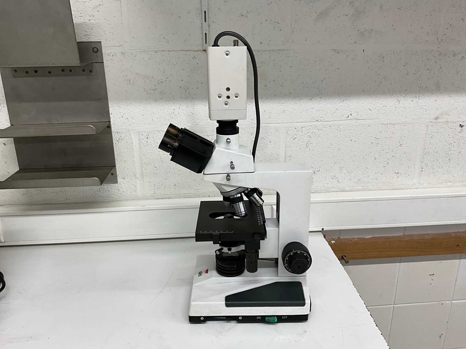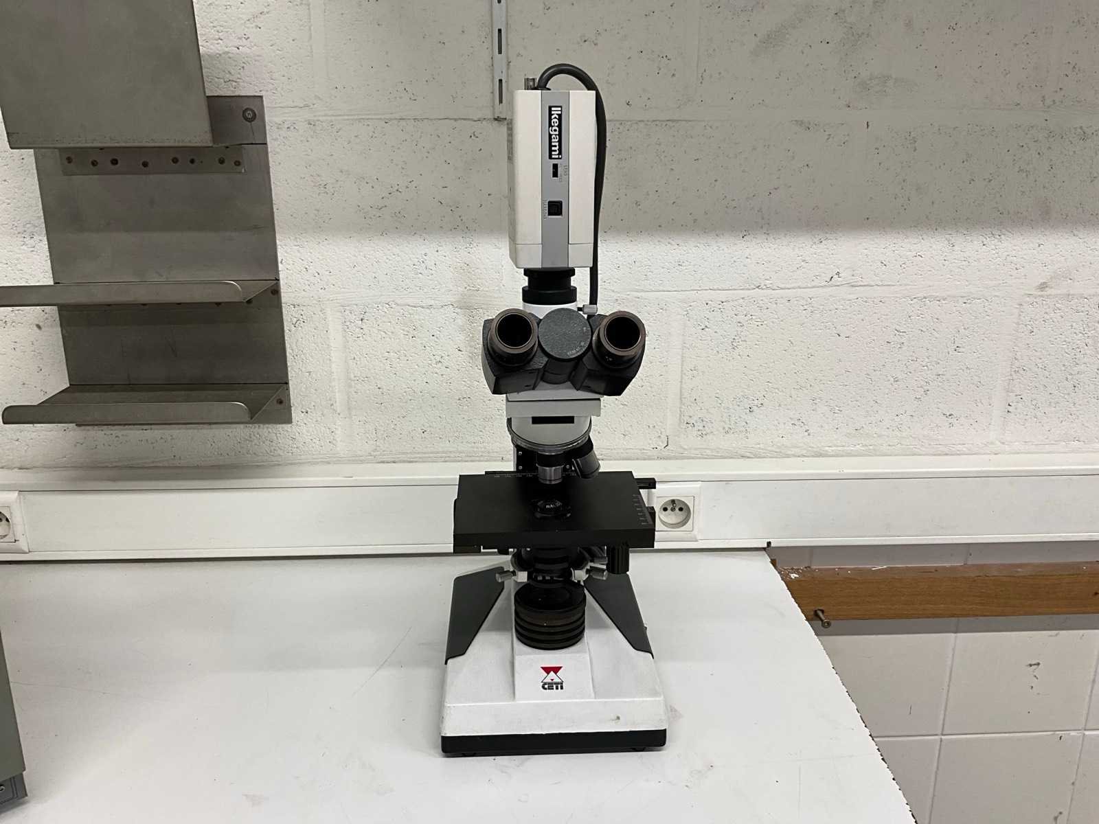 Ceti topic-t trinoculaire stereo microscoop met ikegami icd-47e camera en crt-monitor