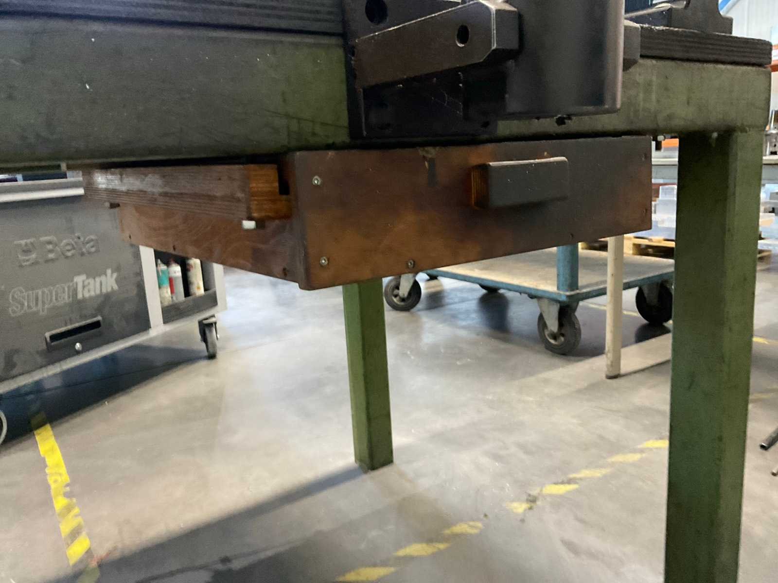 Voorzien van: (3x) meet- instelapparatuur. Breedte: 980mm Lengte: 1500mm Hoogte: 920mm Materiaal: Staal / Hout