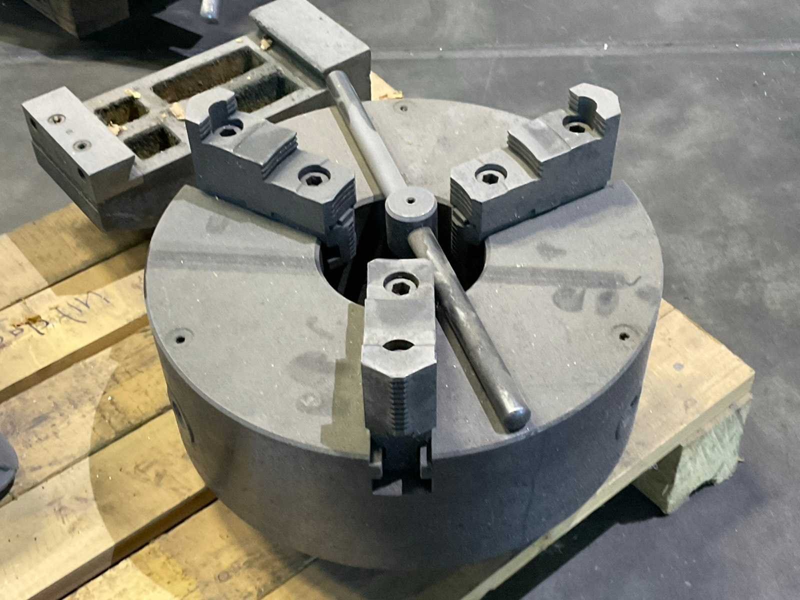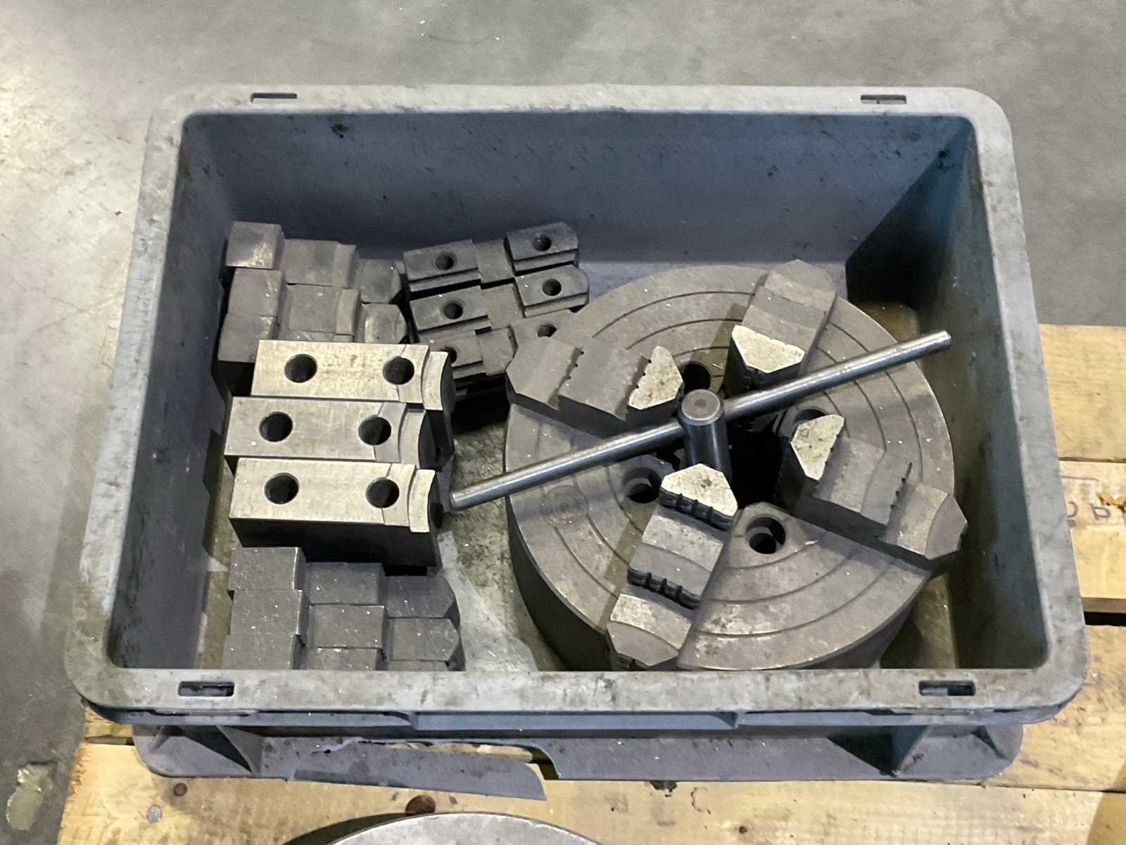 (3x) Draaibank klauwplaten (3- en 4-klauw) met losse bekken en accessoires.