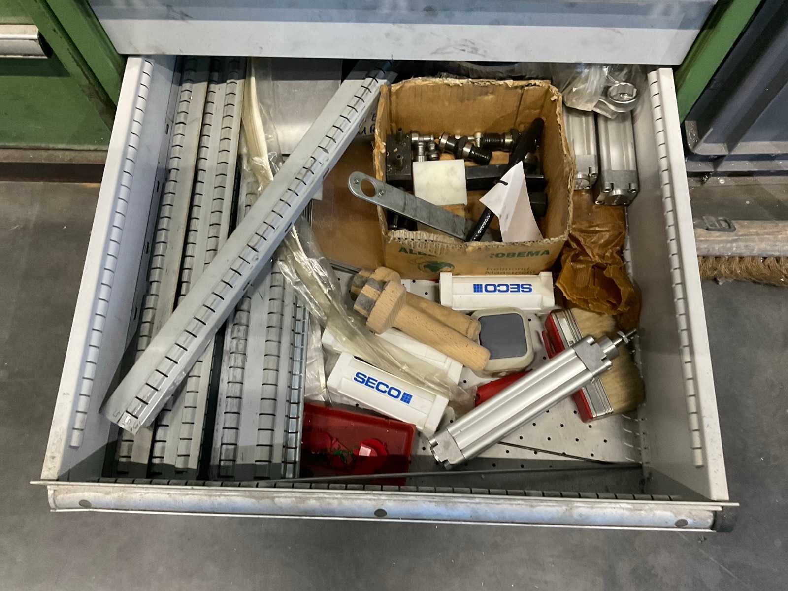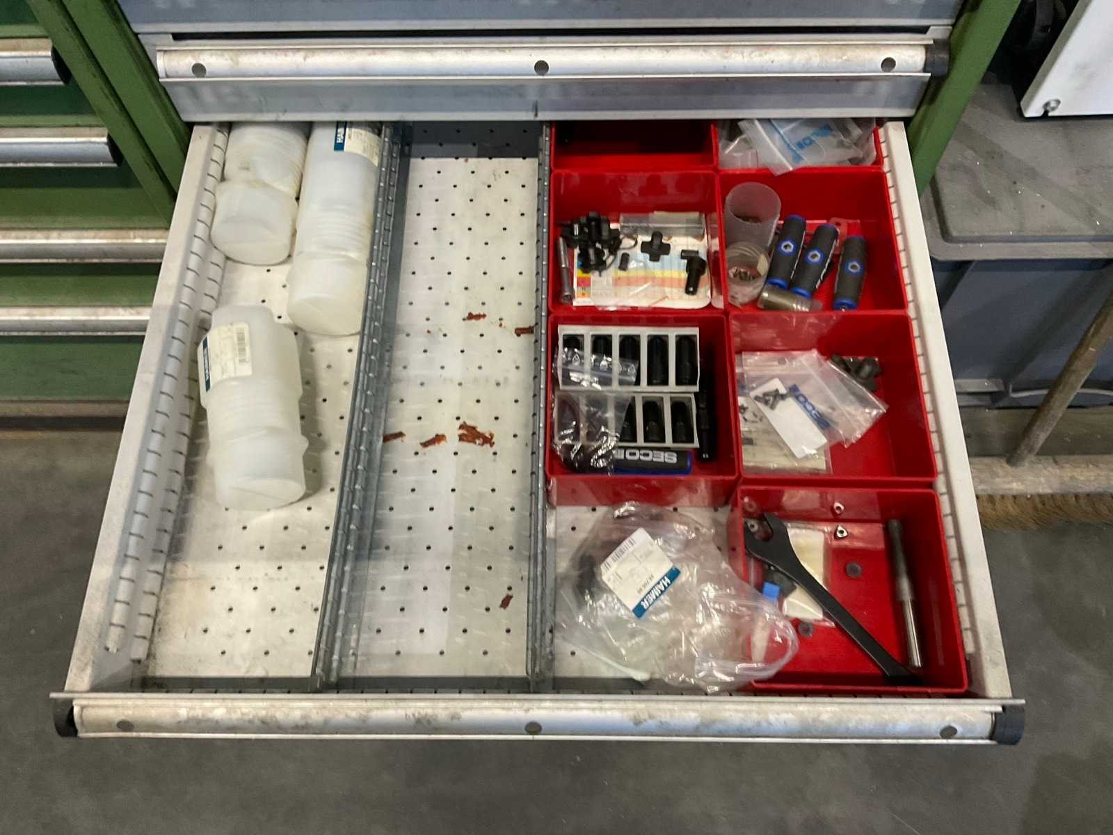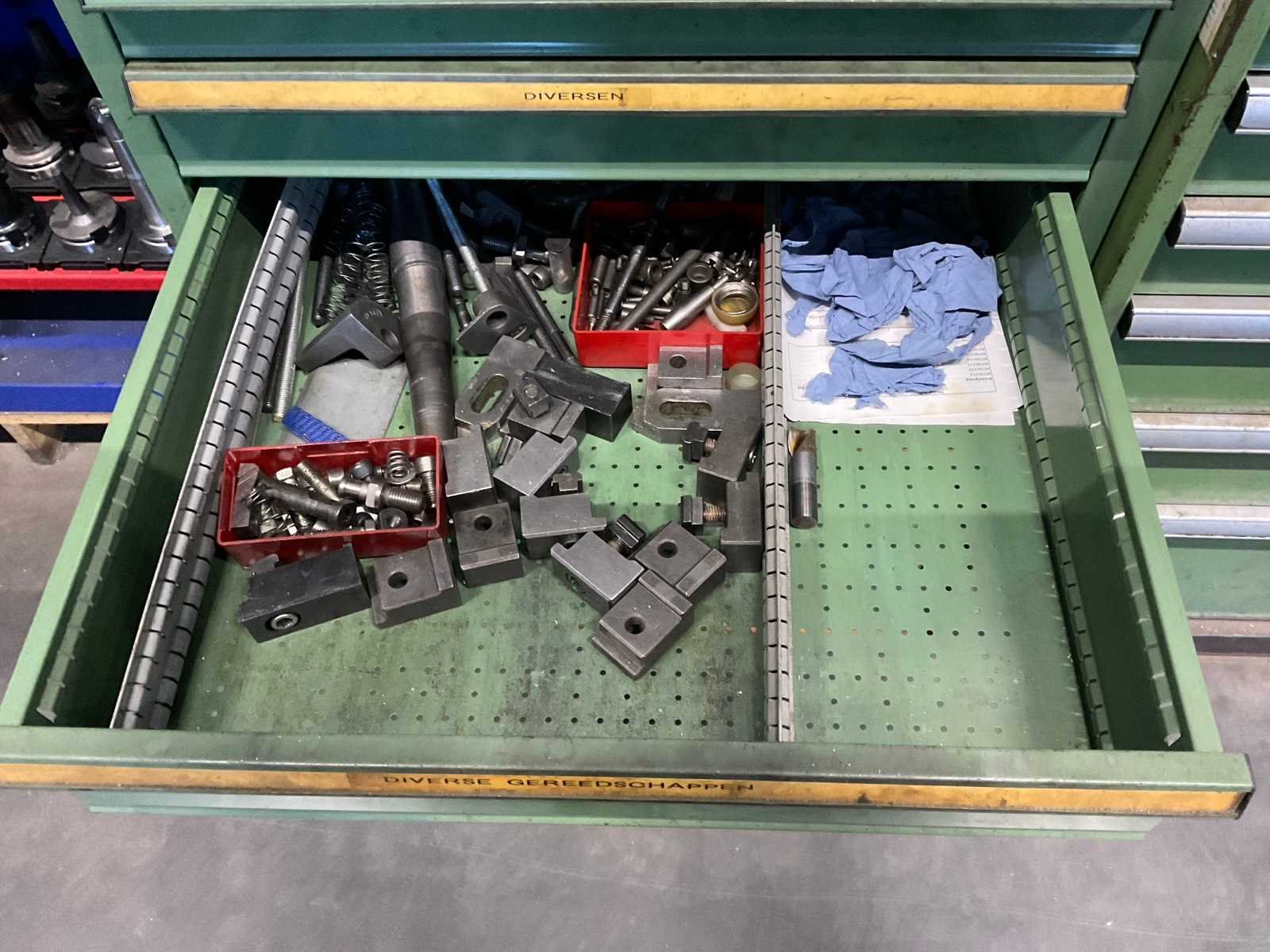 Inclusief inhoud, bestaande uit: boren, spangereedschap, frezen, etc. Kleur: Groen Lengte: 71cm Breedte: 72cm Hoogte: 100cm Materiaal: Staal