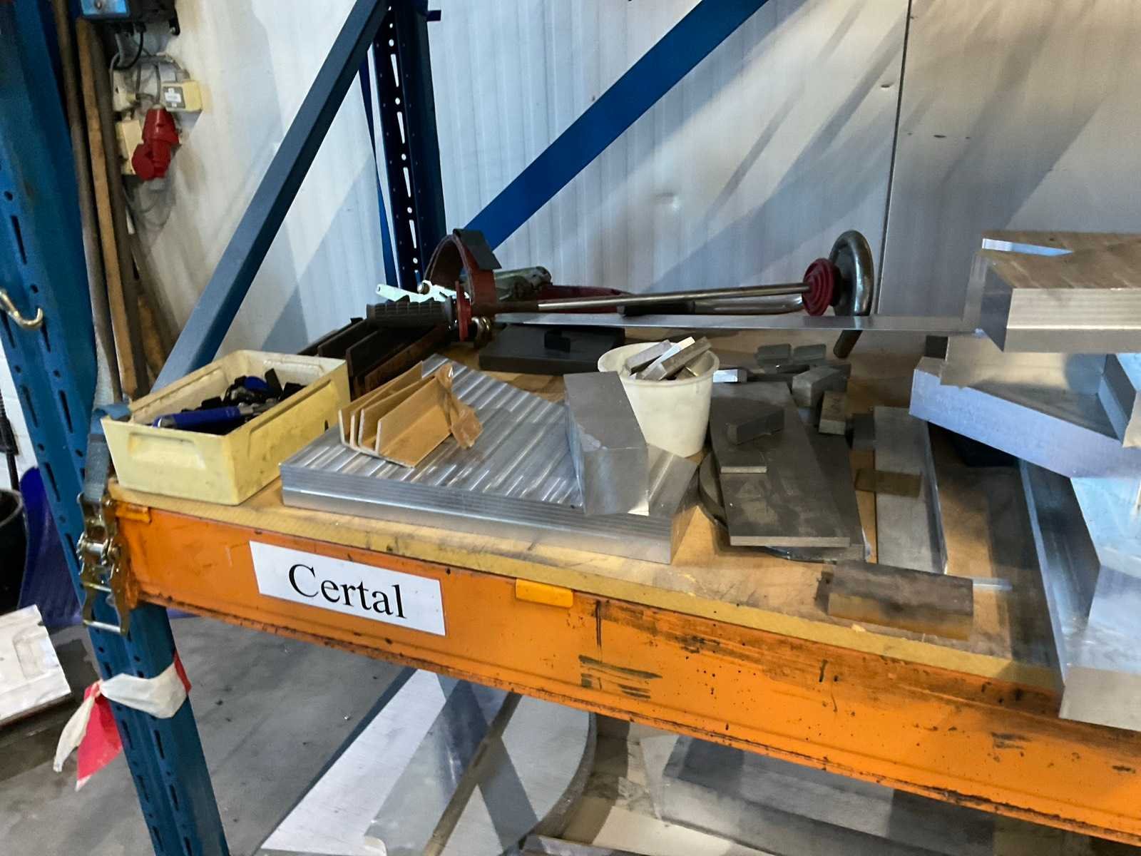 Diverse mallen en bewerkt materiaal in stelling. Let op! Zonder stelling.