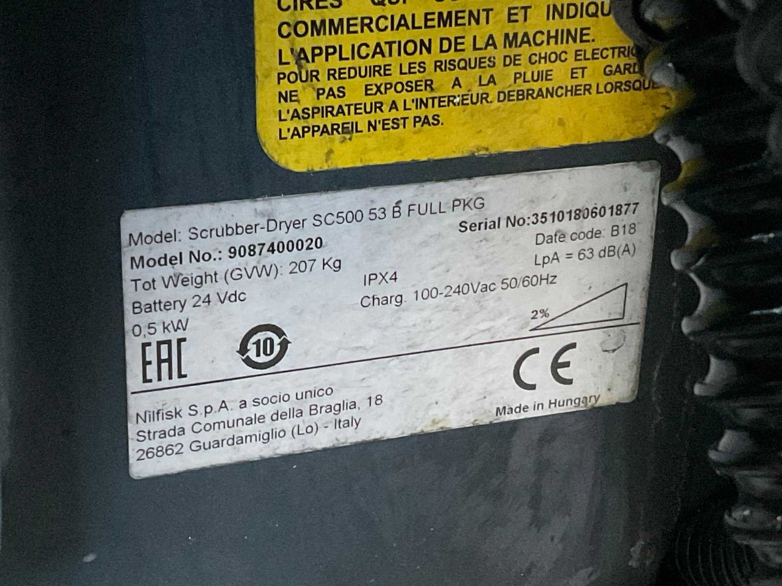 Afgelezen Draaiuren: 842. Merk: Nilfisk Type: SC500- 53B Ecoflex Serienummer: 3510180601877 Werkbreedte: 530mm Eigen gewicht: 207kg Totale afmeting L: 350mm Totale afmeting Breedte: 350mm Totale afmeting Hoogte: 260mm