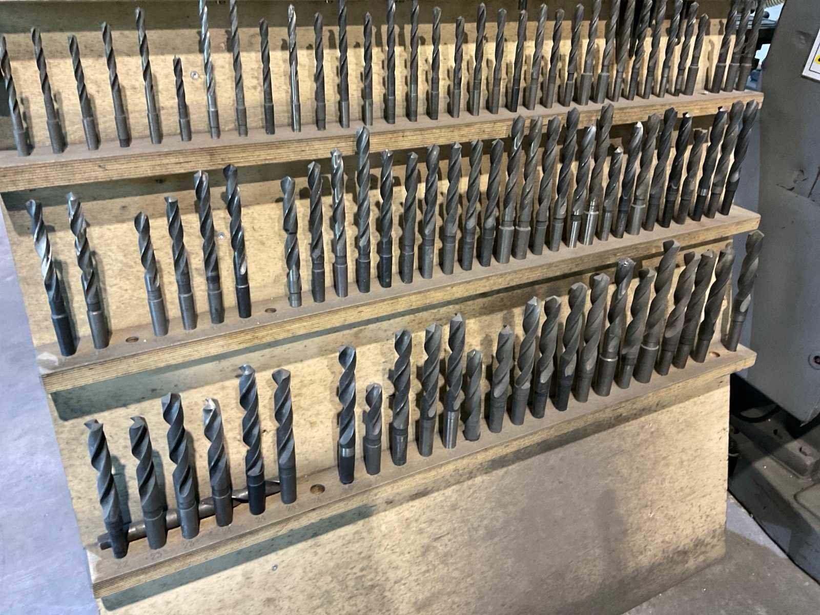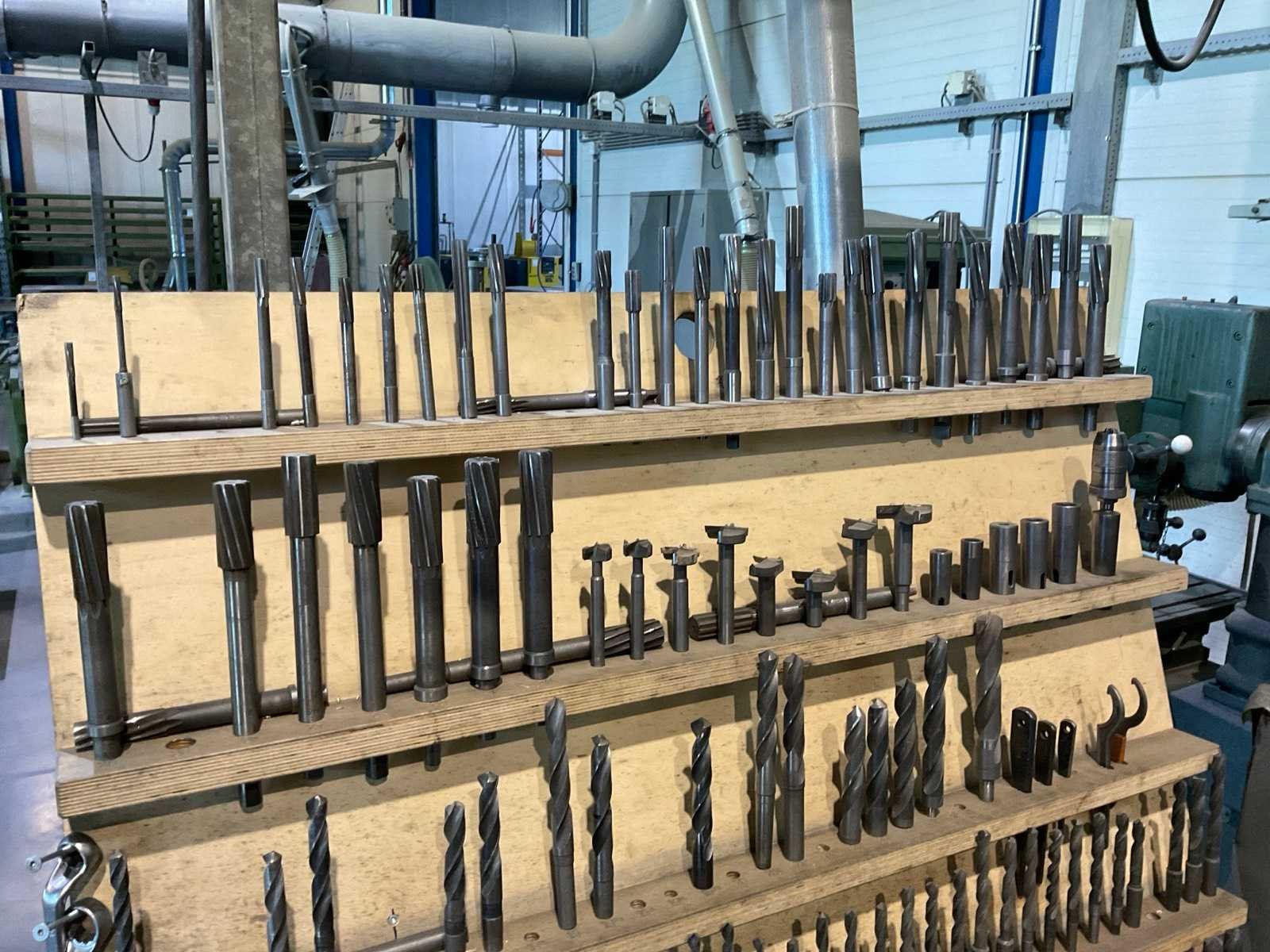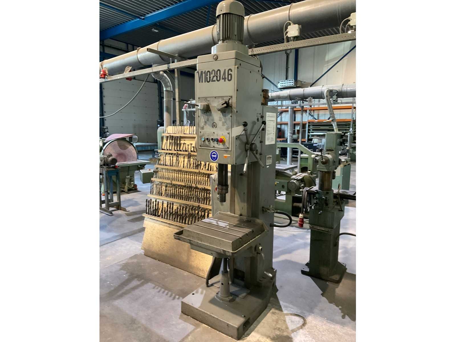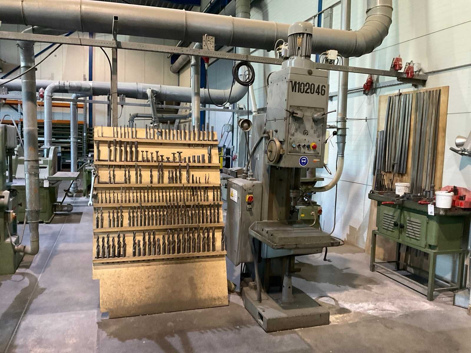 Inclusief: (1x) houten stellage met boren in diverse soorten en maten. Merk: Premack Type: 2H135 Bouwjaar: 1993 Serienummer: 123264 Boorcapaciteit: 35mm Aantal snelheden: 12 Spindelsnelheid van n =: 31.5rpm Spindelsnelheid tot n =: 1400rpm Boordiepte: 250mm Uitlading: 300mm Opname mc: 4 Tafel afmeting l: 500mm Tafel afmeting b: 500mm Aansluiting: 400V Afmeting l: 800mm Afmeting b: 1000mm Afmeting h: 2700mm