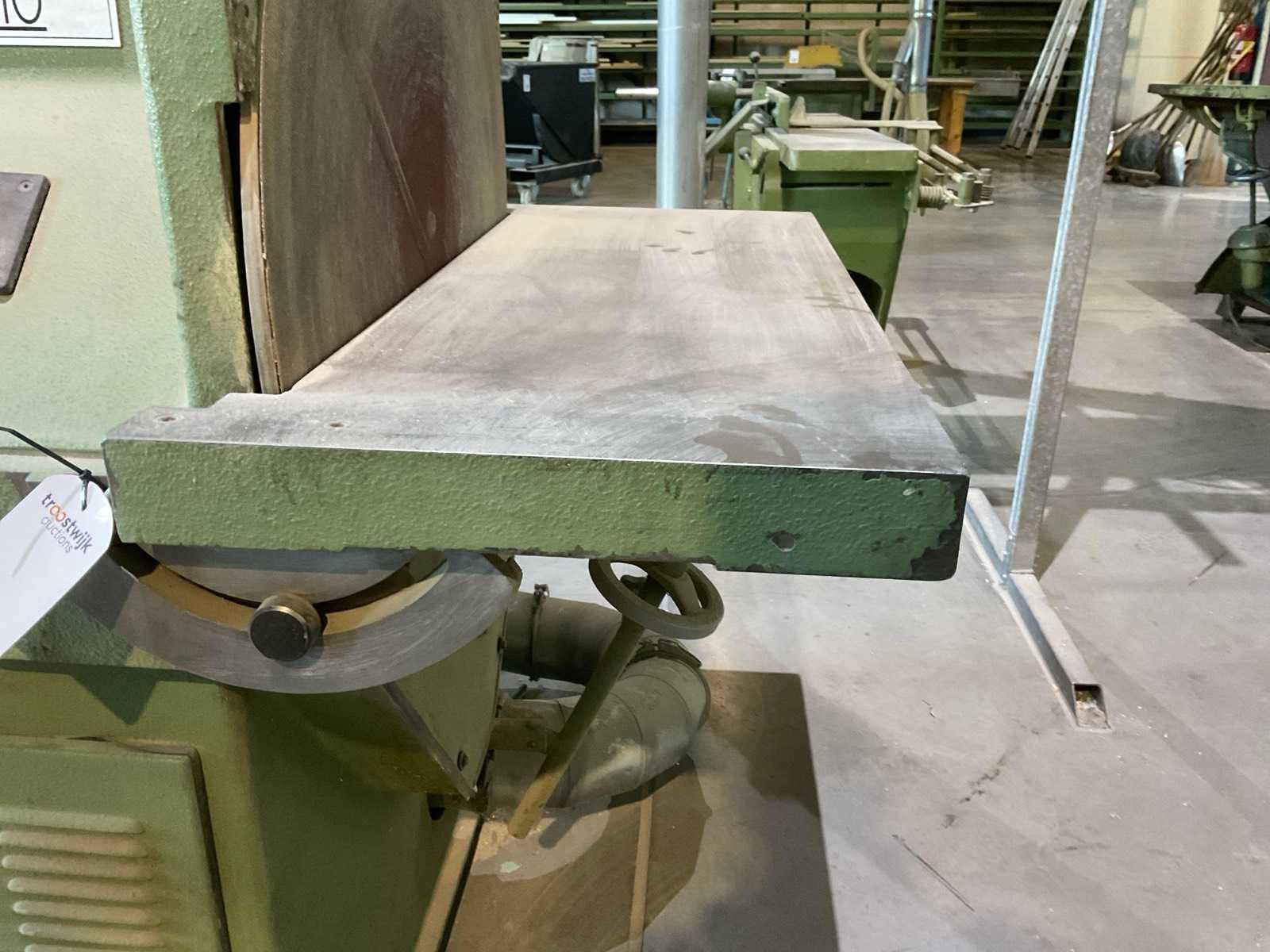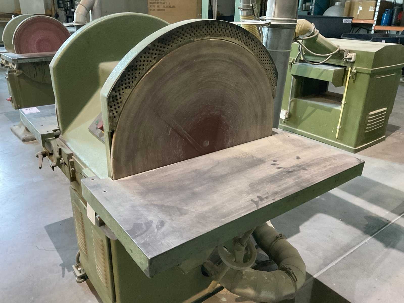 Schuurdiameter: 800mm, Tafel schuin instelbaar. Merk: Roberto Landonio Type: 800 Bouwjaar: 1990 Serienummer: 9010127 Aansluiting: 400V Afmeting l: 1460mm Afmeting b: 990mm Afmeting h: 1400mm