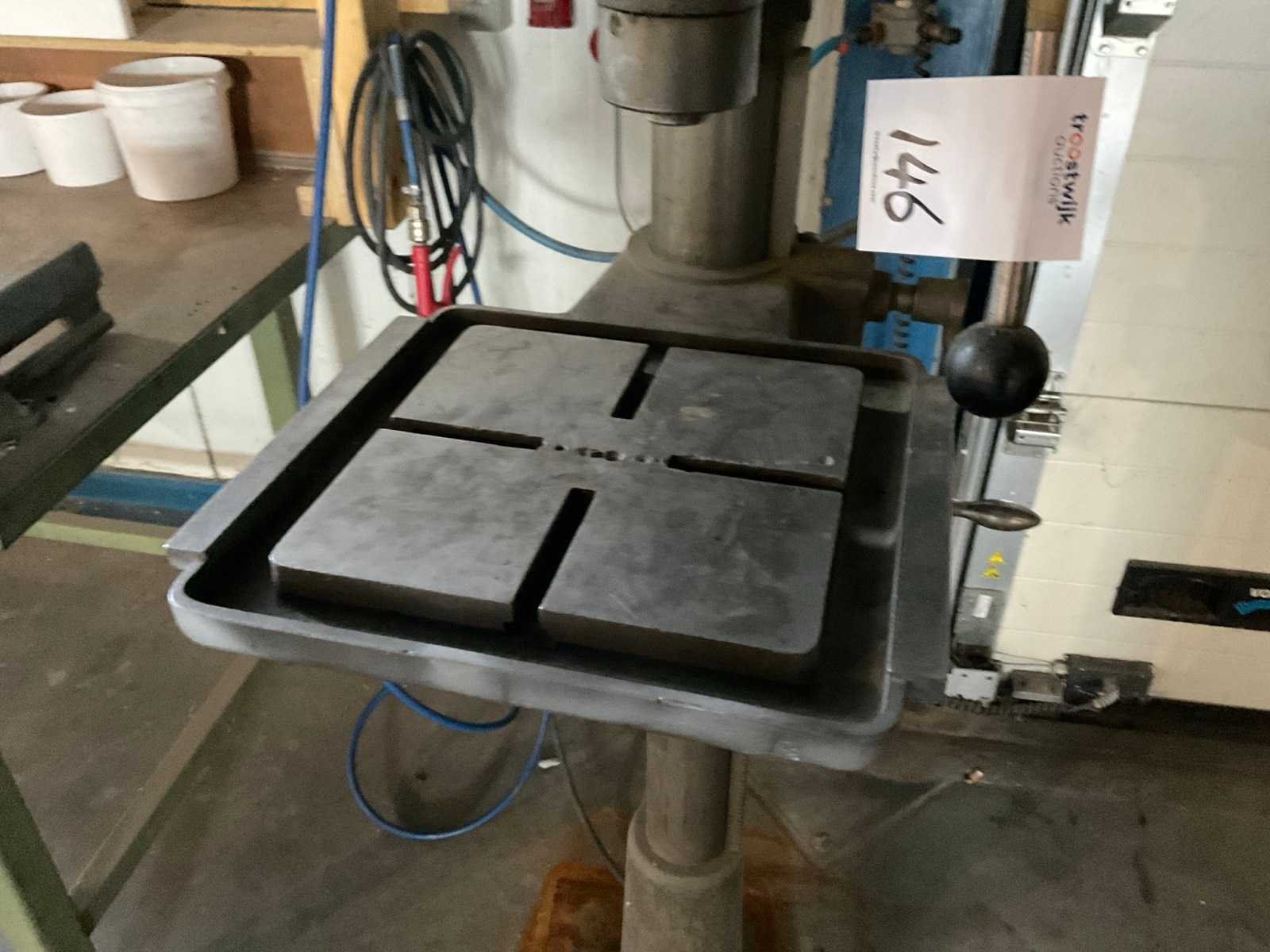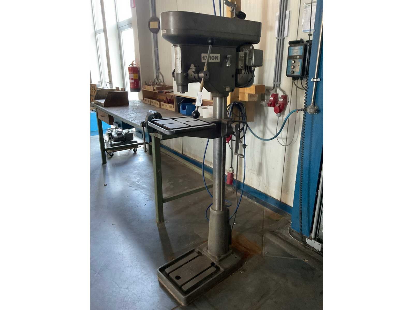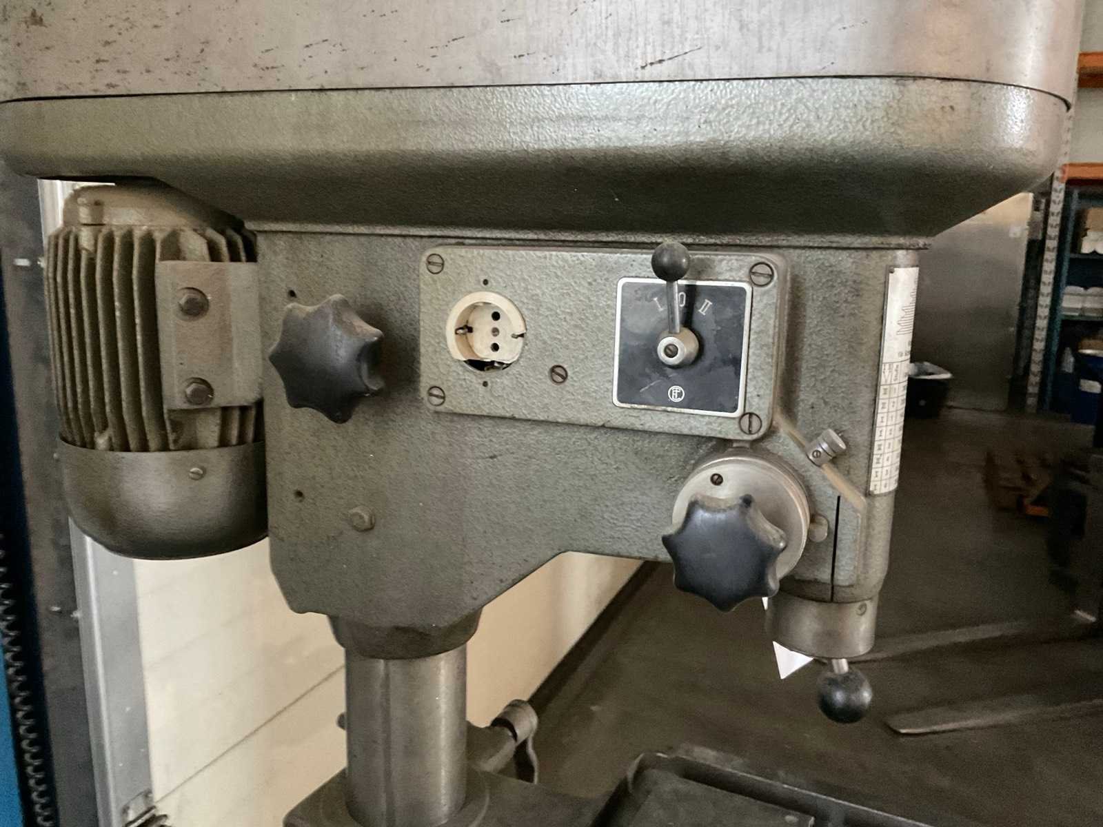 Tafels schuininstelbaar. Merk: Ixion Type: BSS16 Bouwjaar: 1973 Serienummer: 21273 Boorcapaciteit: 16mm Aantal snelheden: 8 Spindelsnelheid van n =: 250rpm Spindelsnelheid tot n =: 2800rpm Boordiepte: 100mm Uitlading: 250mm Tafel afmeting l: 350mm Tafel afmeting b: 320mm Motorvermogen (kW): 0.63kW Aansluiting: 400V Afmeting l: 420mm Afmeting b: 700mm Afmeting h: 1750mm