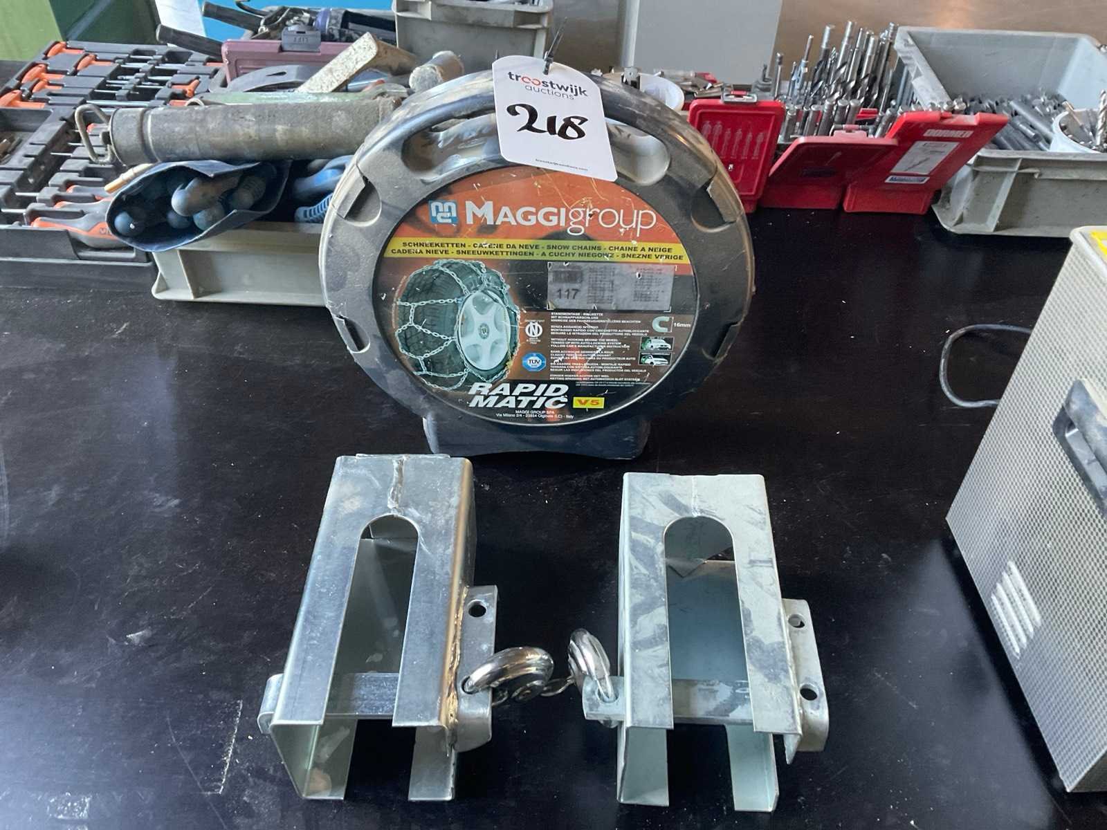 Let op! 1x hangslot zonder sleutel. Inclusief 1x set Maggigroup Rapid Matic V5 sneeuwkettingen.