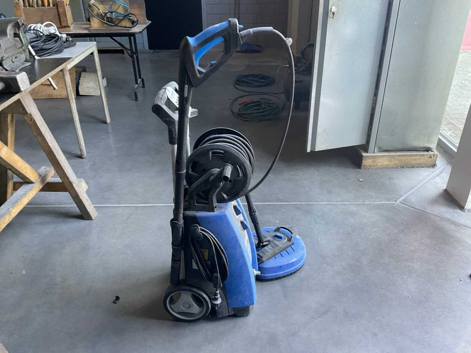 Inclusief terrasreiniger Merk: Nilfisk Type: P 160.2 Bouwjaar: 2017 Maximale werkdruk: 160bar Temperatuurbereik max.: 60C°c Capaciteit.: 570l/hr Mobiel: true Vermogen: 3.3kW Aansluiting: 230V Eigen gewicht: 27.8kg Totale afmeting Hoogte: 980mm
