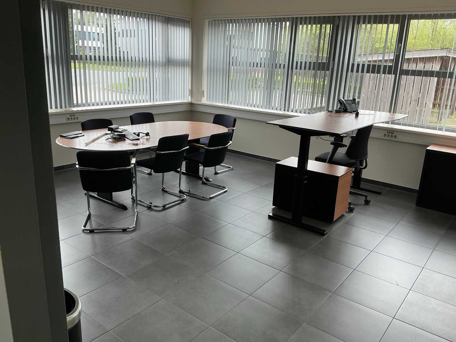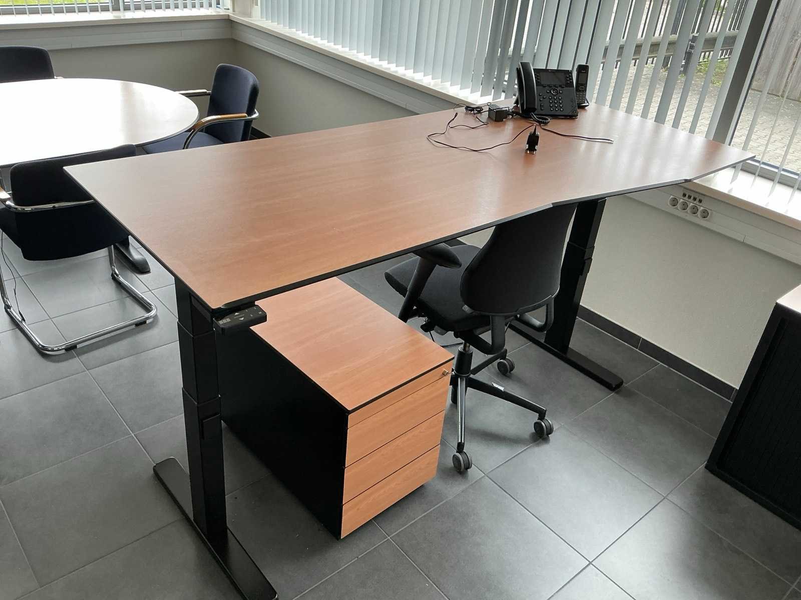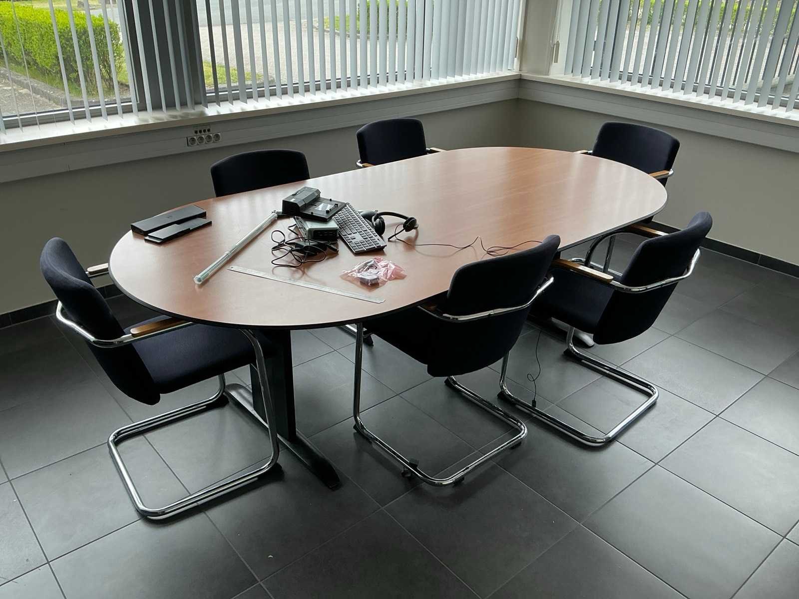 Bestaande uit: Vergadertafel 240x120cm met 6 vergaderstoelen 1e: 1x elektrisch verstelbaar bureau 200x80cm met bureaustoel 2e: Ladeblok 120x45x75cm 3e: 2x archiefkast 120x45x198cm 4e: Prullenbak