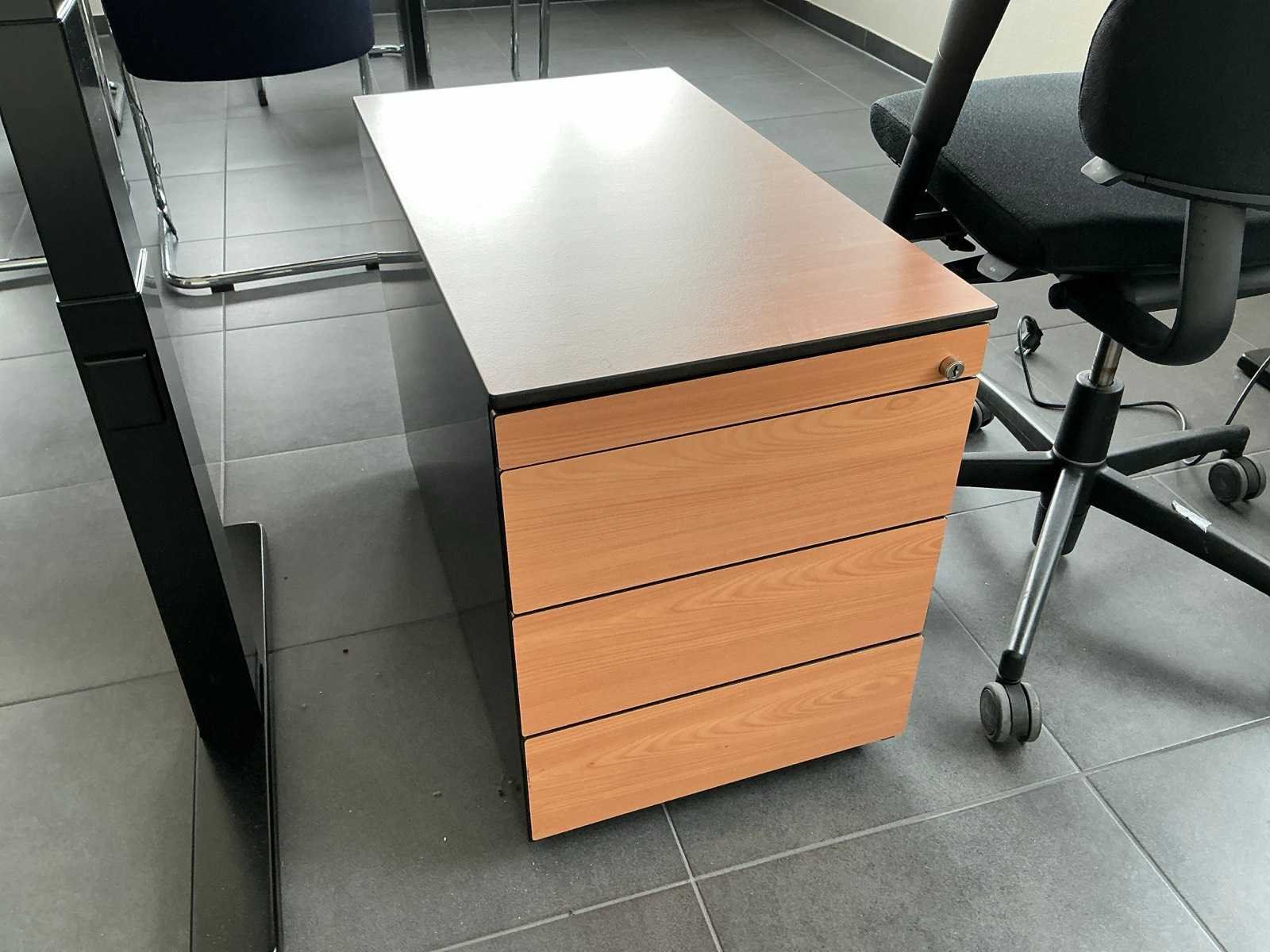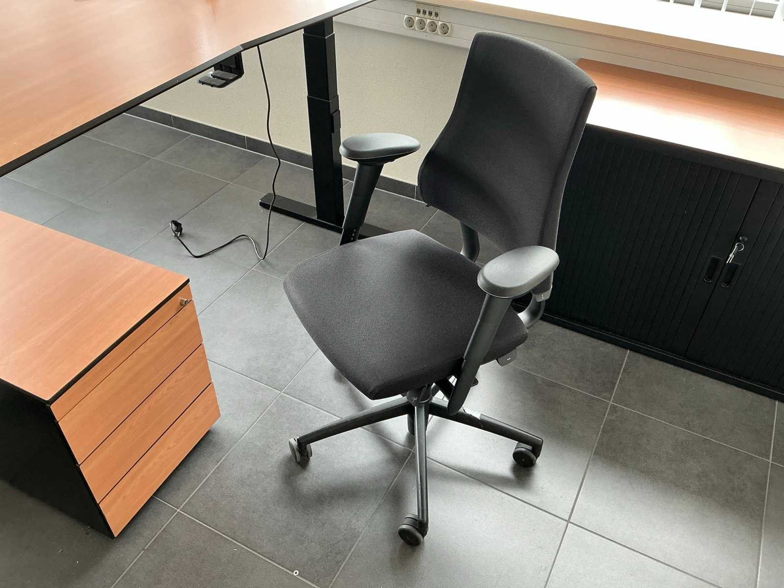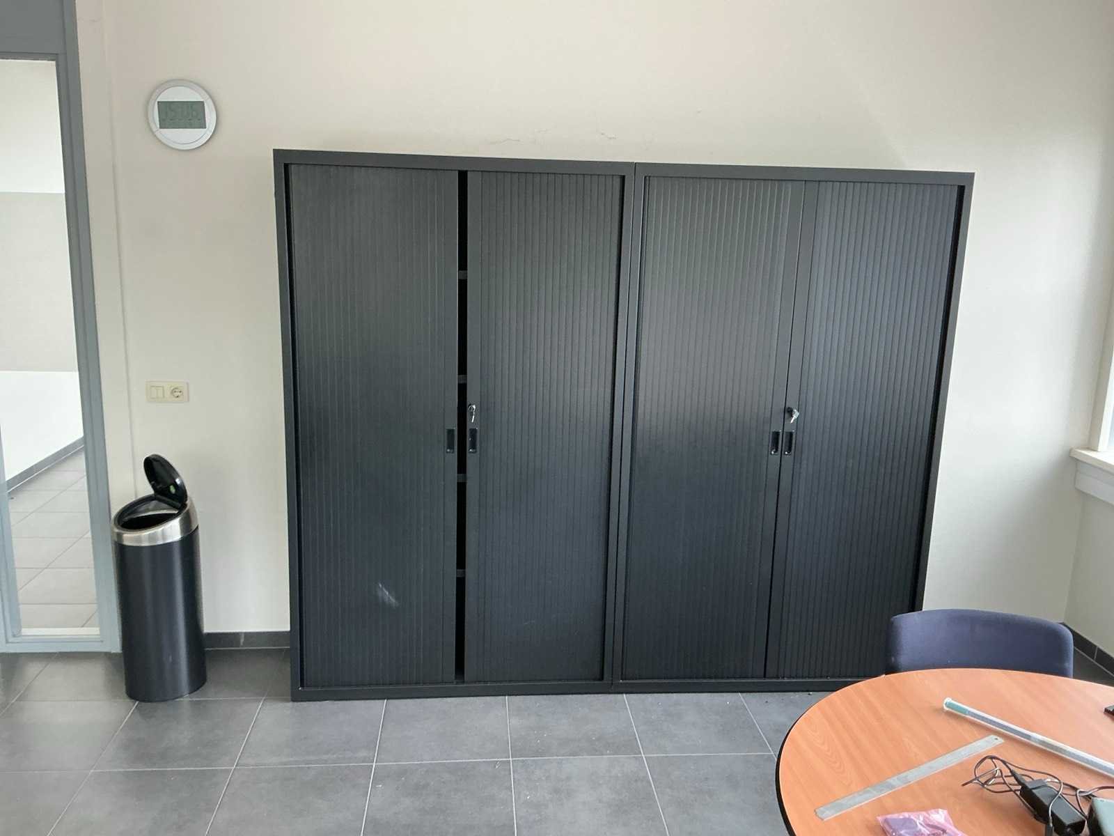 Bestaande uit: Vergadertafel 240x120cm met 6 vergaderstoelen 1e: 1x elektrisch verstelbaar bureau 200x80cm met bureaustoel 2e: Ladeblok 120x45x75cm 3e: 2x archiefkast 120x45x198cm 4e: Prullenbak