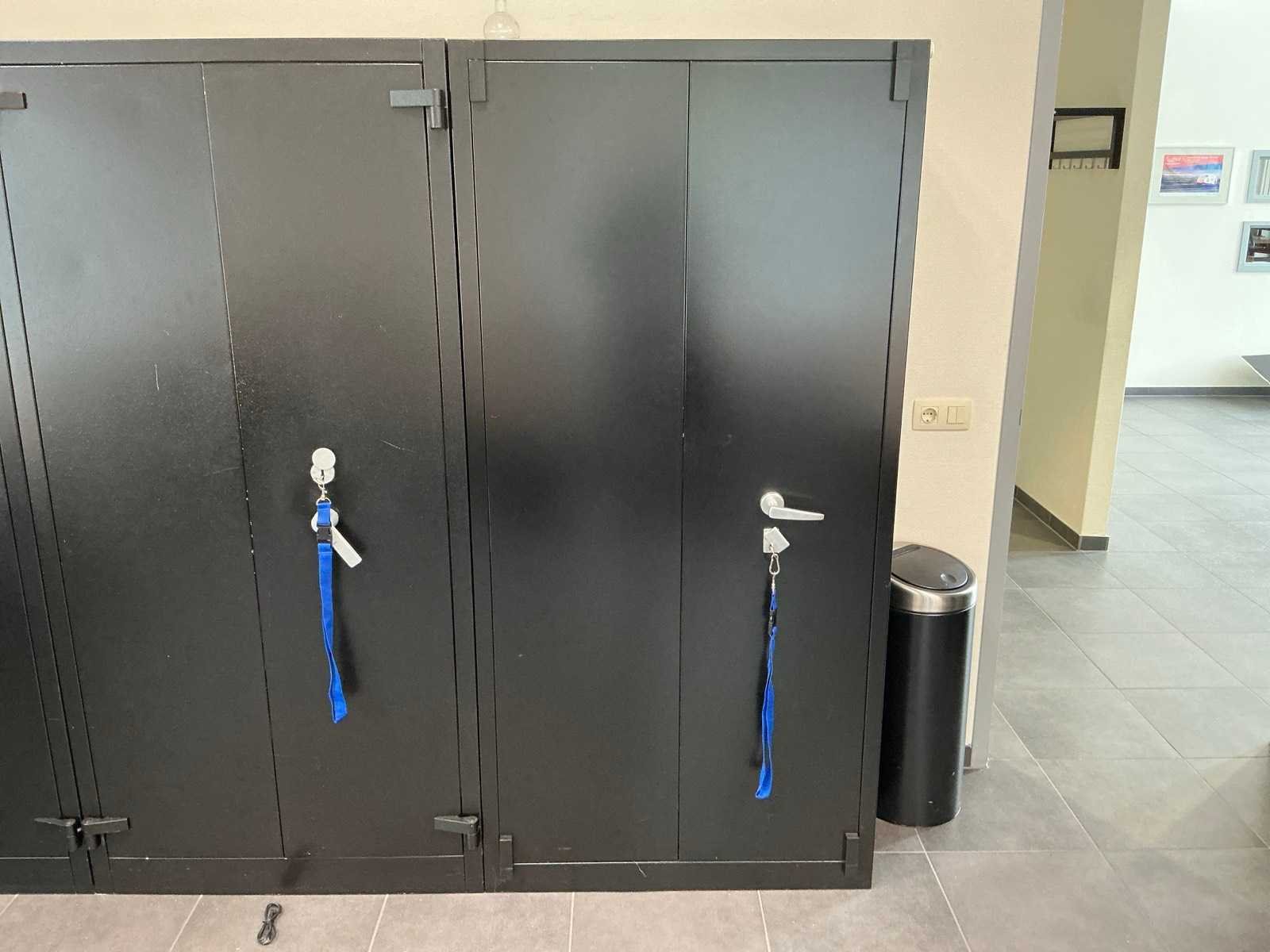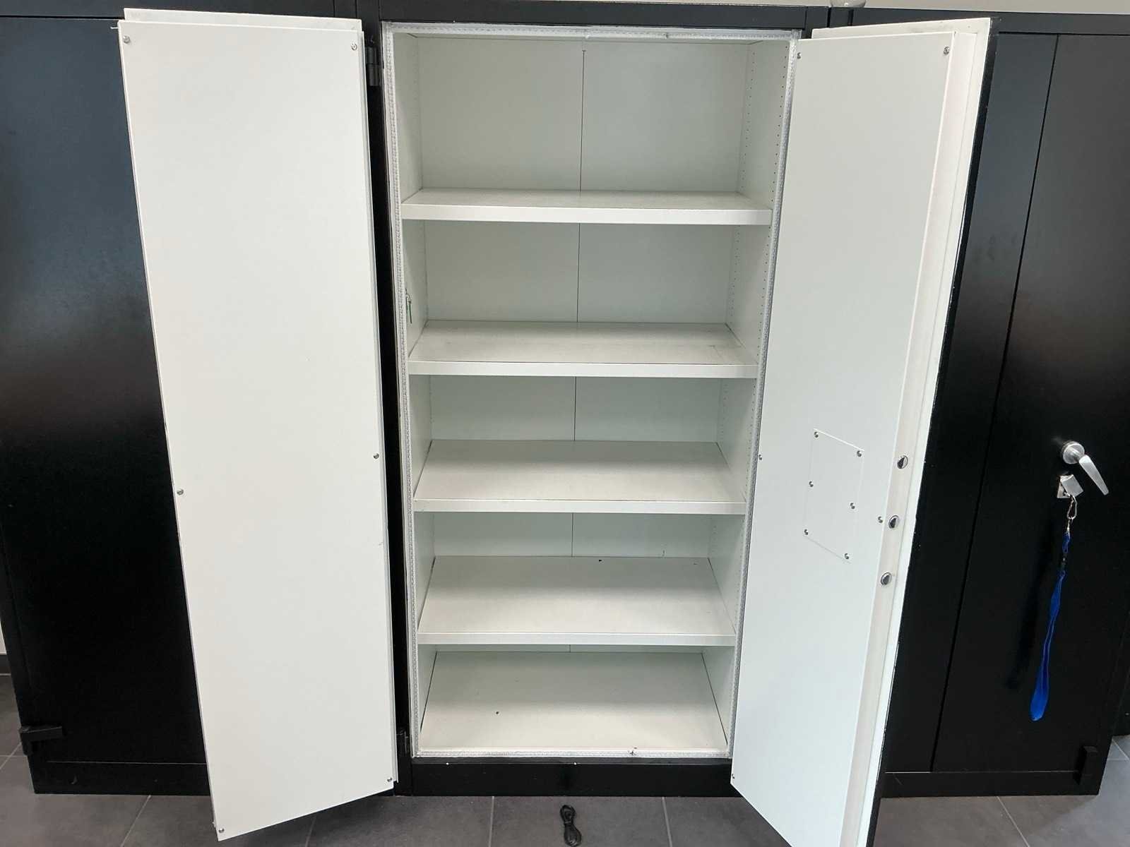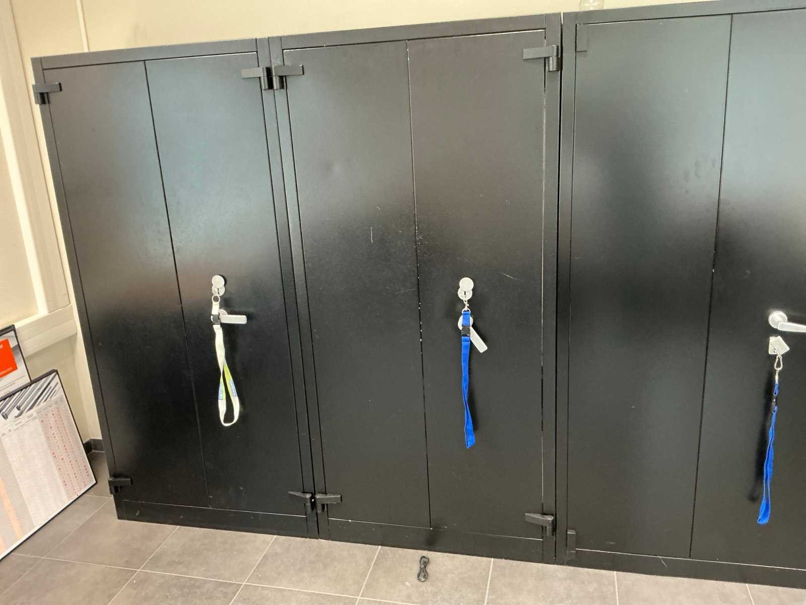 Met 1 sleutel per kast. Kleur: Zwart Lengte: 95cm Breedte: 55cm Hoogte: 195cm