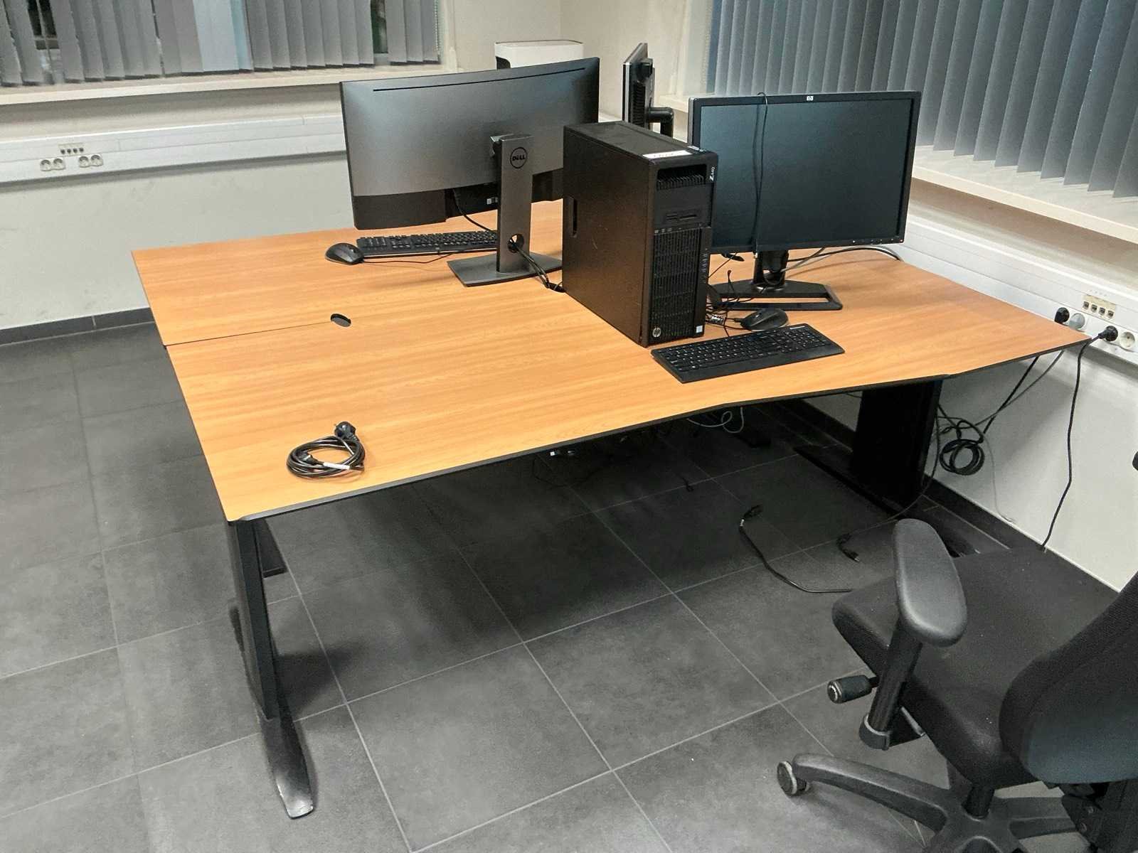 Bestaande uit: 8x bureautafel 200x90cm met 5x bureaustoel 1e: 2x archiefkast 120x45x198cm 2e: 2x vergaderstoel met stoffen bekleding 3e: Plant in pot 4e: Prullenbak 5e: 2x statafel 80x80x110cm