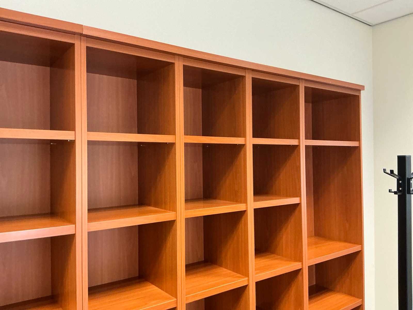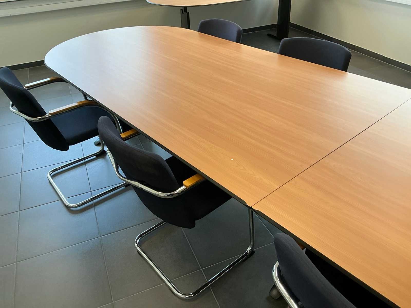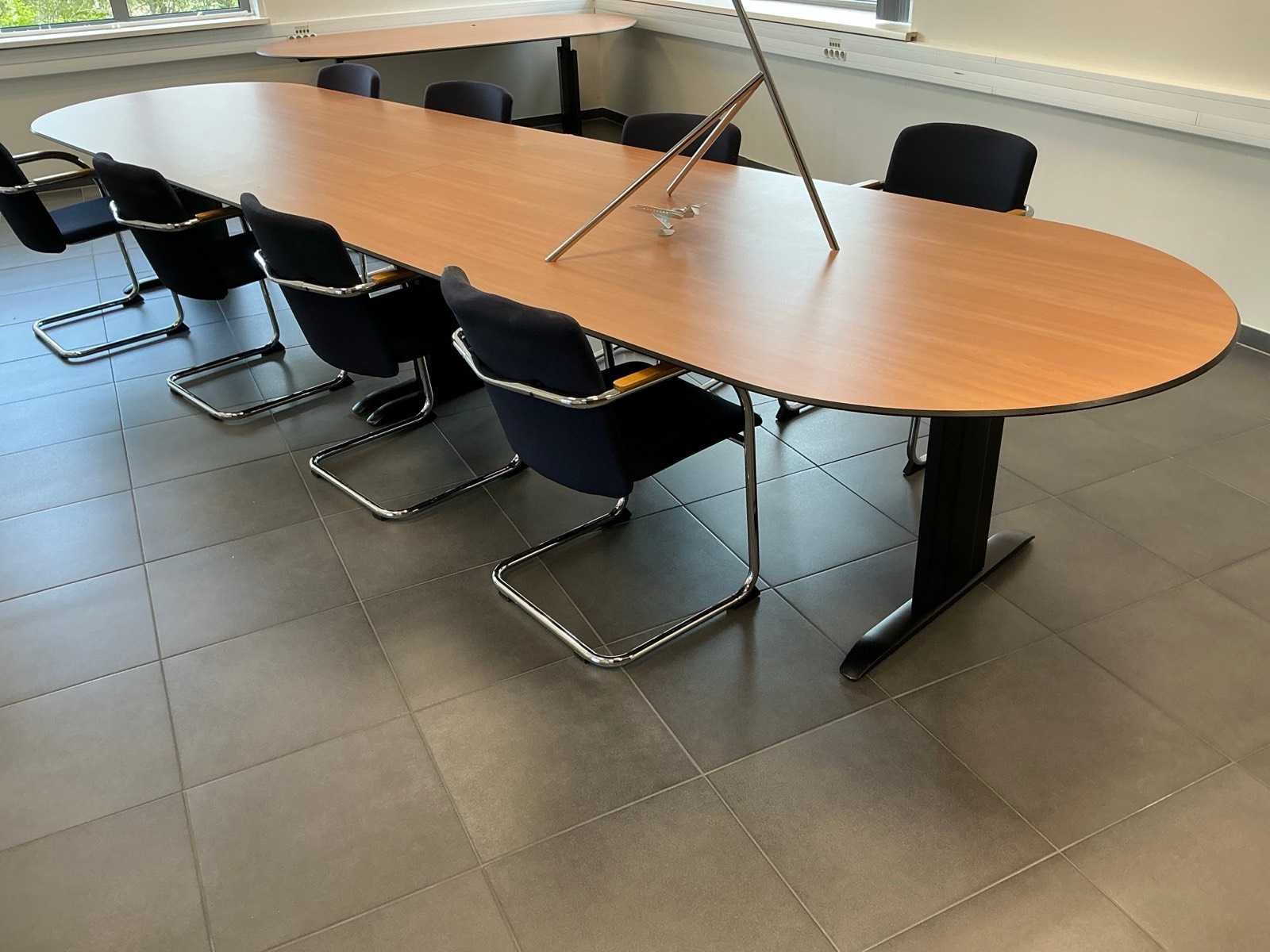 Bestaande uit: Vergadertafel 470x120cm met 8 stoelen 1e: Bureautafel ovaal 240x120cm 2e: Bergkast/vakkenkast 320x39x212cm 3e: Kapstok 6e: Archiefkast laag 120x45x75cm