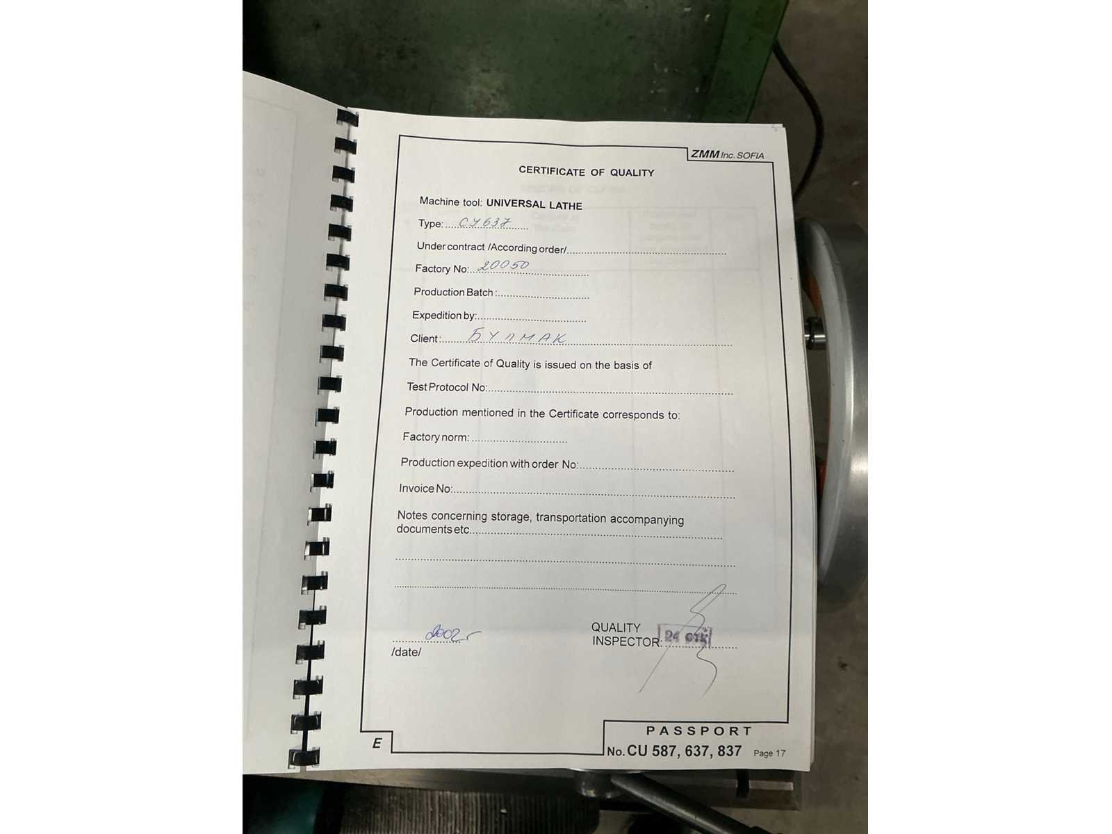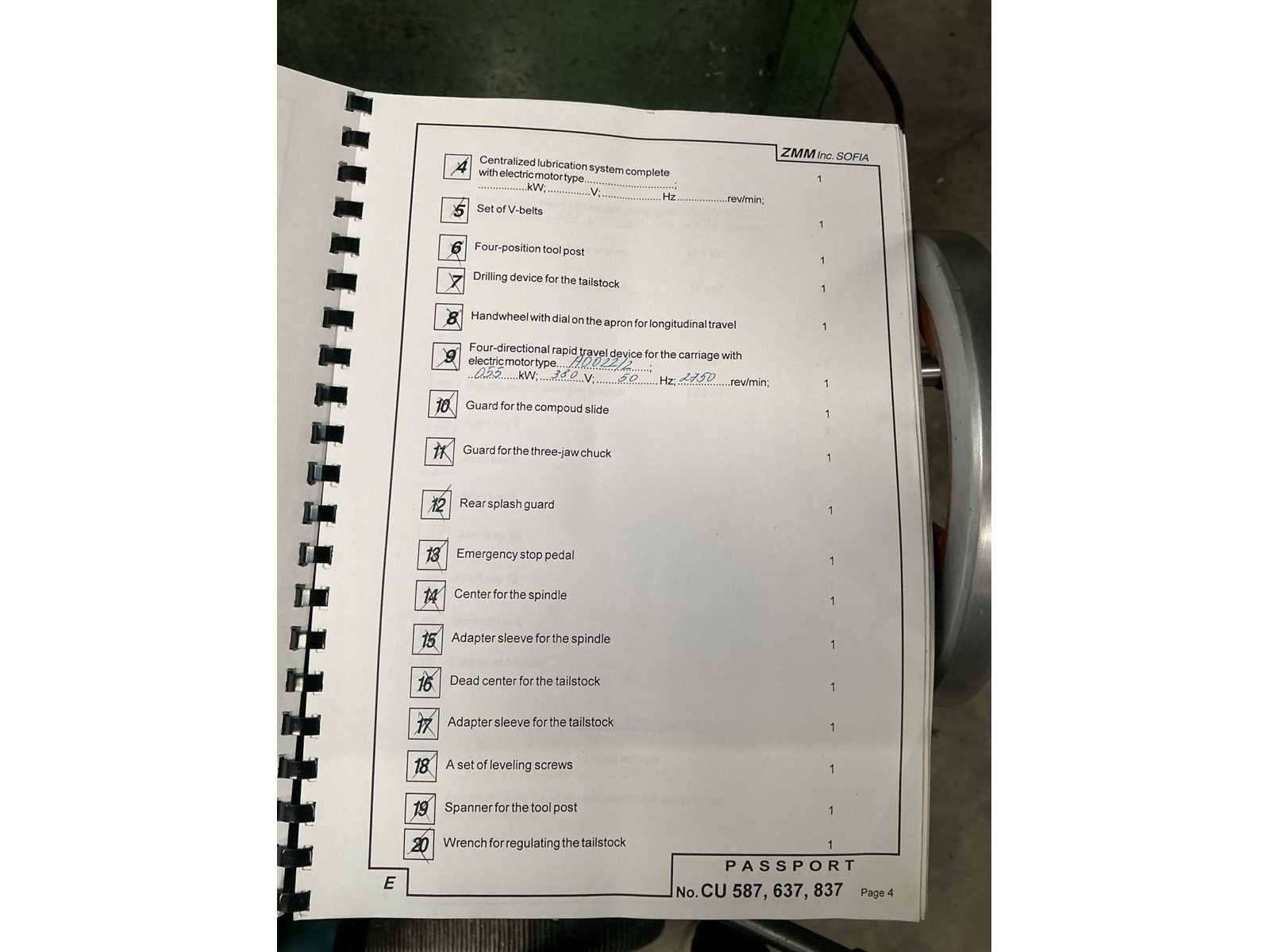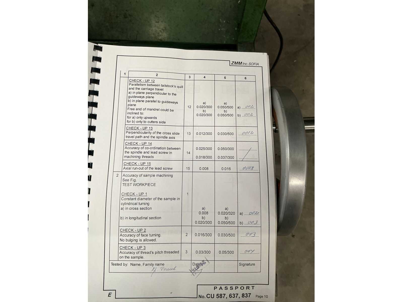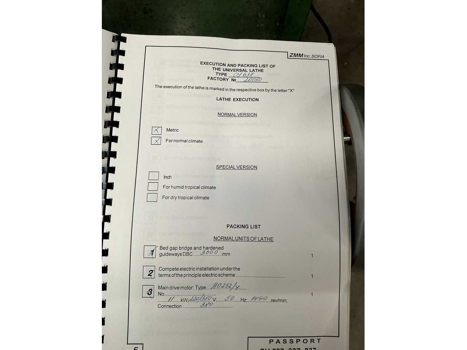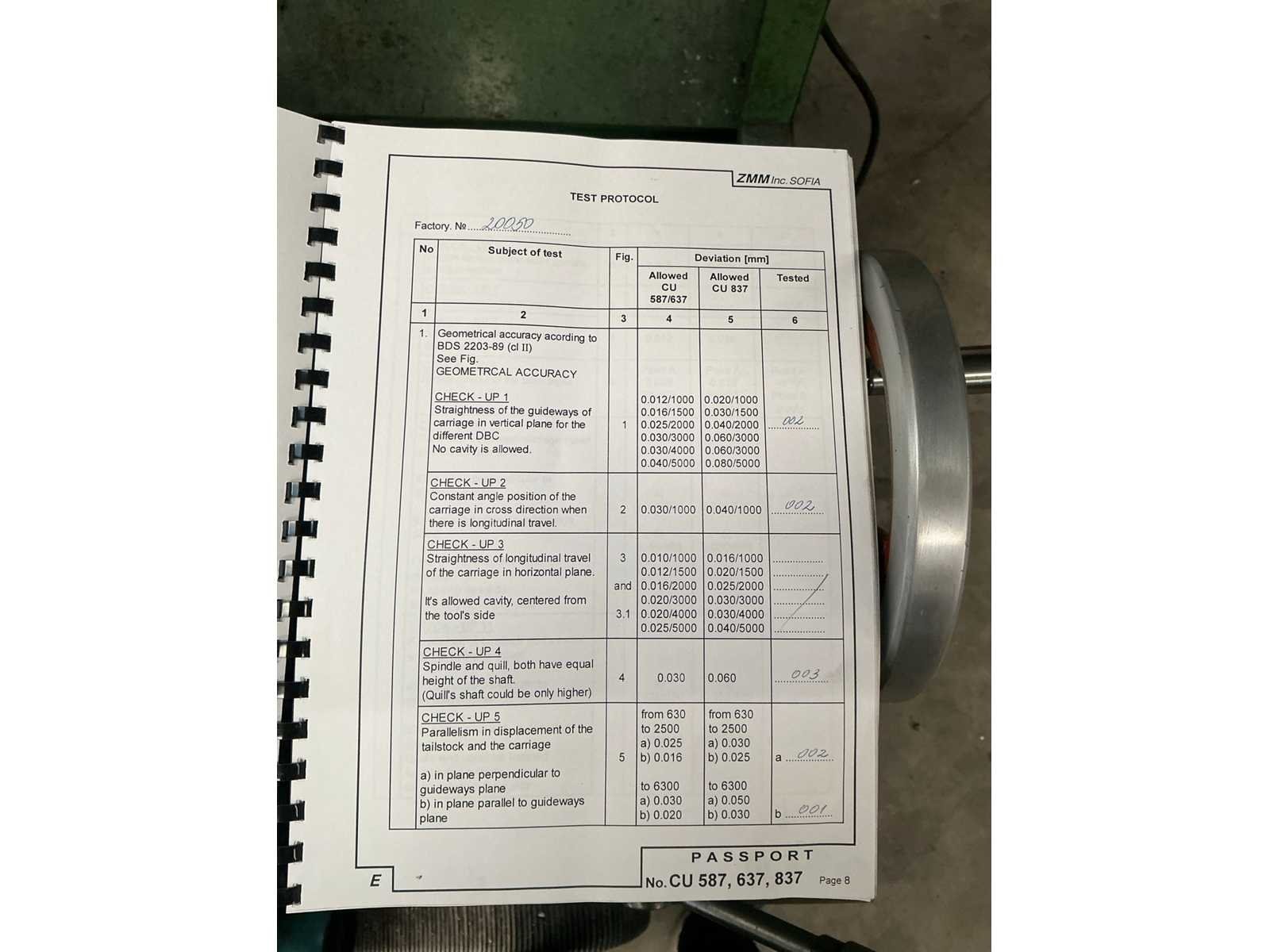 Draaidiameter boven bed 600mm, draaidiameter met uitneembaar deel van bed circa 800mm, max draaidiameter boven slede 430mm. Newall digitale X-Y uitlezing, inclusief diverse beitelhouders, 2 brillen, en vierklauwplaat(500mm). Let op! De beschikbare heftruck kan deze machine niet verladen, neemt u uw eigen geschikte middelen mee Merk: ZMM Type: CU 637 DBC3000 Bouwjaar: 2002 Serienummer: 20050 Draailengte: 3000mm Machinegewicht: 5000kg Afmeting l: 4900mm Afmeting b: 1800mm Afmeting h: 1900mm