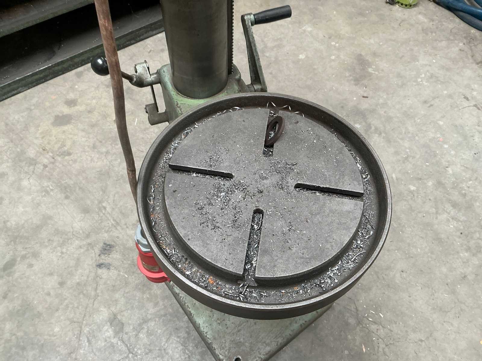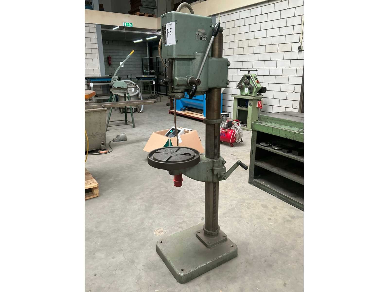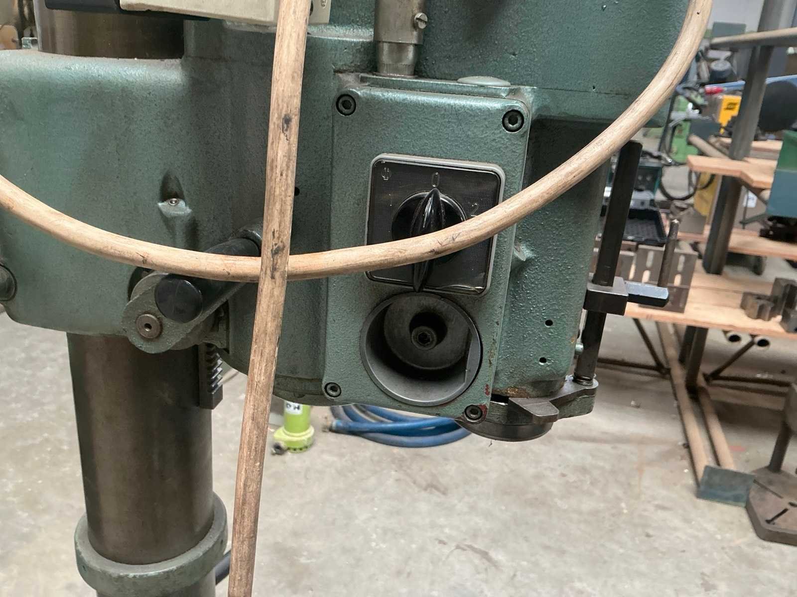 Merk: Arboga Type: G2508 Serienummer: 287079 Aantal snelheden: 8 Spindelsnelheid van n =: 100rpm Spindelsnelheid tot n =: 2900rpm Boordiepte: 120mm Uitlading: 220mm Tandwiel aangedreven: true Tafel afmeting l: 280mm Tafel afmeting b: 280mm Motorvermogen (kW): 0.75kW Aansluiting: 400V Afmeting l: 600mm Afmeting b: 500mm Afmeting h: 1630mm