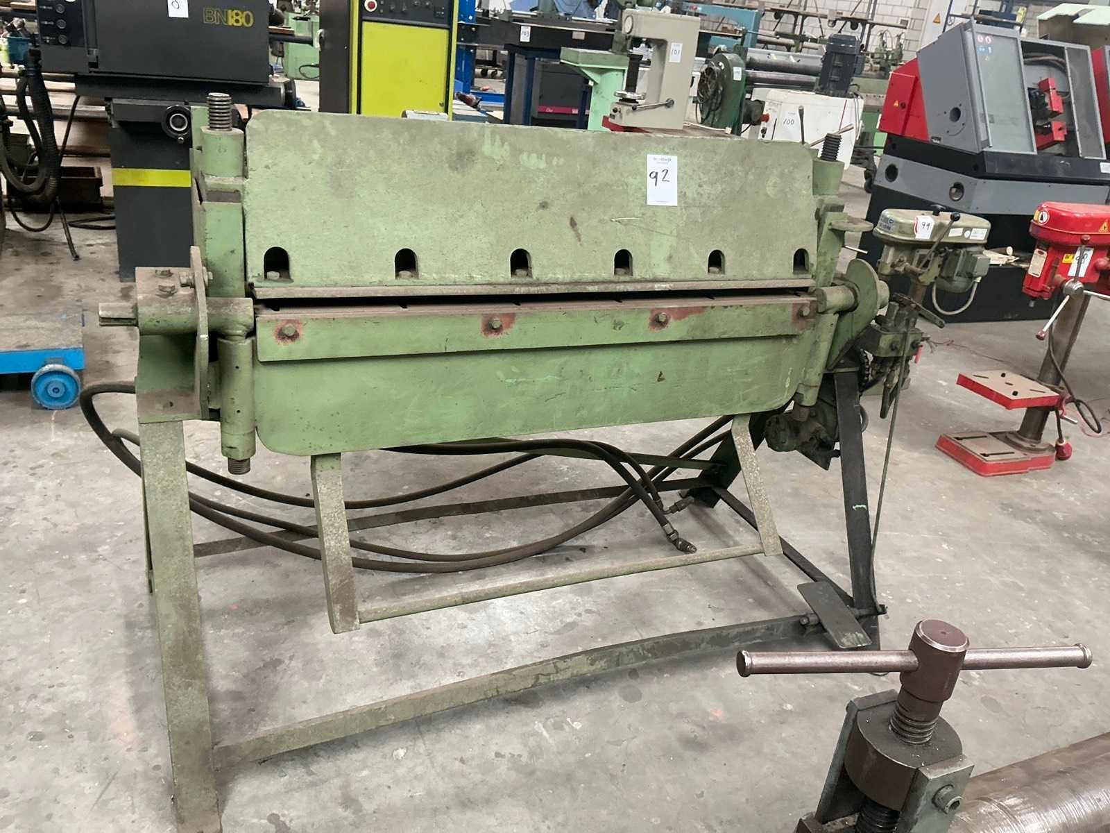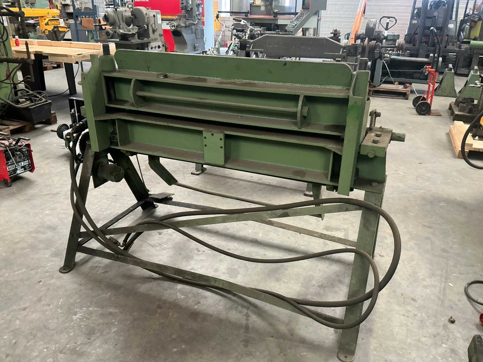 Voorzien van hydraulische hoogte verstelling(doet het niet) Zetlengte: 1260mm Max. plaatdikte: 2mm Afmeting l: 1900mm Afmeting b: 1000mm Afmeting h: 1300mm