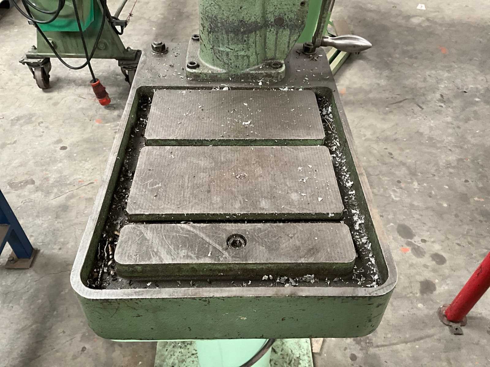 Merk: Ixion Type: BT 15 Bouwjaar: 1989 Serienummer: 00121989 Boorcapaciteit: 18mm Aantal snelheden: 5 Spindelsnelheid van n =: 480rpm Spindelsnelheid tot n =: 3800rpm Boordiepte: 90mm Uitlading: 220mm Tafel afmeting l: 290mm Tafel afmeting b: 330mm Motorvermogen (kW): 0.6kW Aansluiting: 380V Afmeting l: 610mm Afmeting b: 560mm Afmeting h: 1770mm