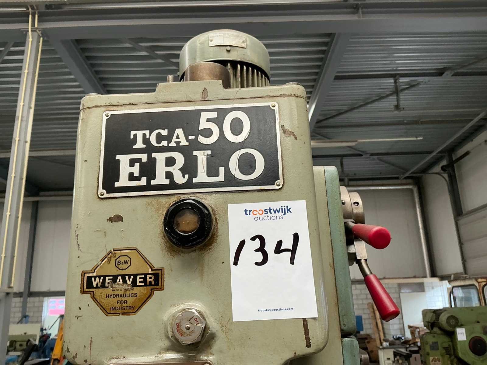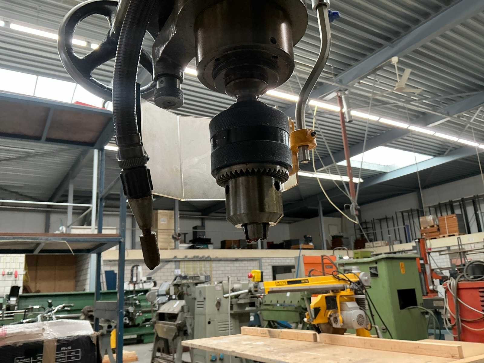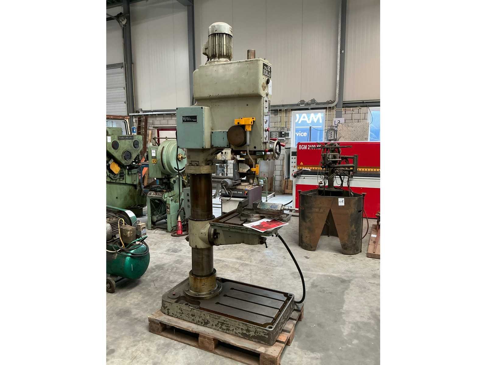 Voorzien van CH-2 140mm machineklem Merk: Erlo Type: TCA-50 Aantal snelheden: 9 Spindelsnelheid van n =: 45rpm Spindelsnelheid tot n =: 1115rpm Boordiepte: 250mm Uitlading: 400mm Tandwiel aangedreven: true Tafel afmeting l: 420mm Tafel afmeting b: 420mm Koelmiddelpomp: true Motorvermogen (kW): 3kW Aansluiting: 400V Afmeting l: 1200mm Afmeting b: 800mm Afmeting h: 2650mm