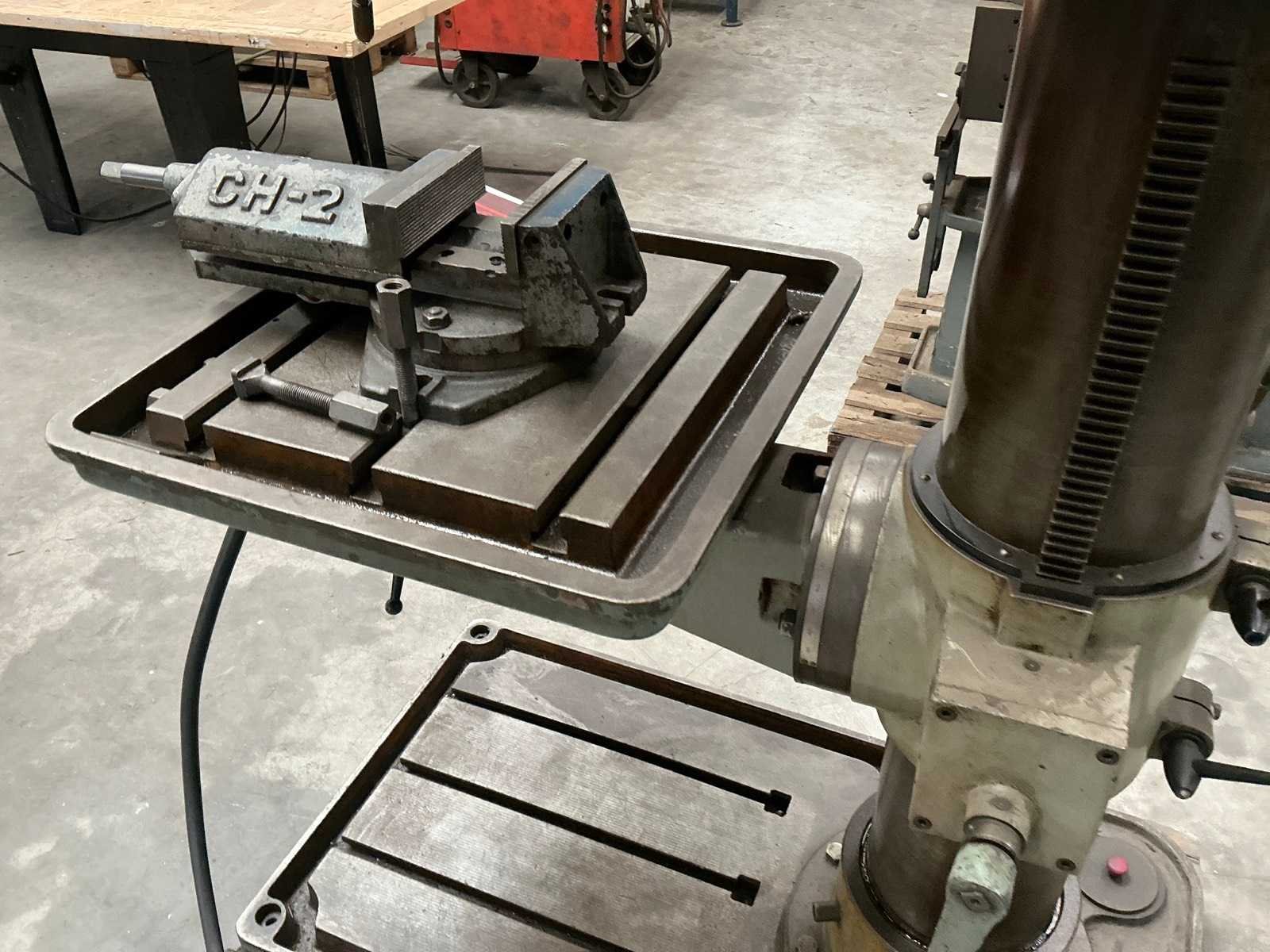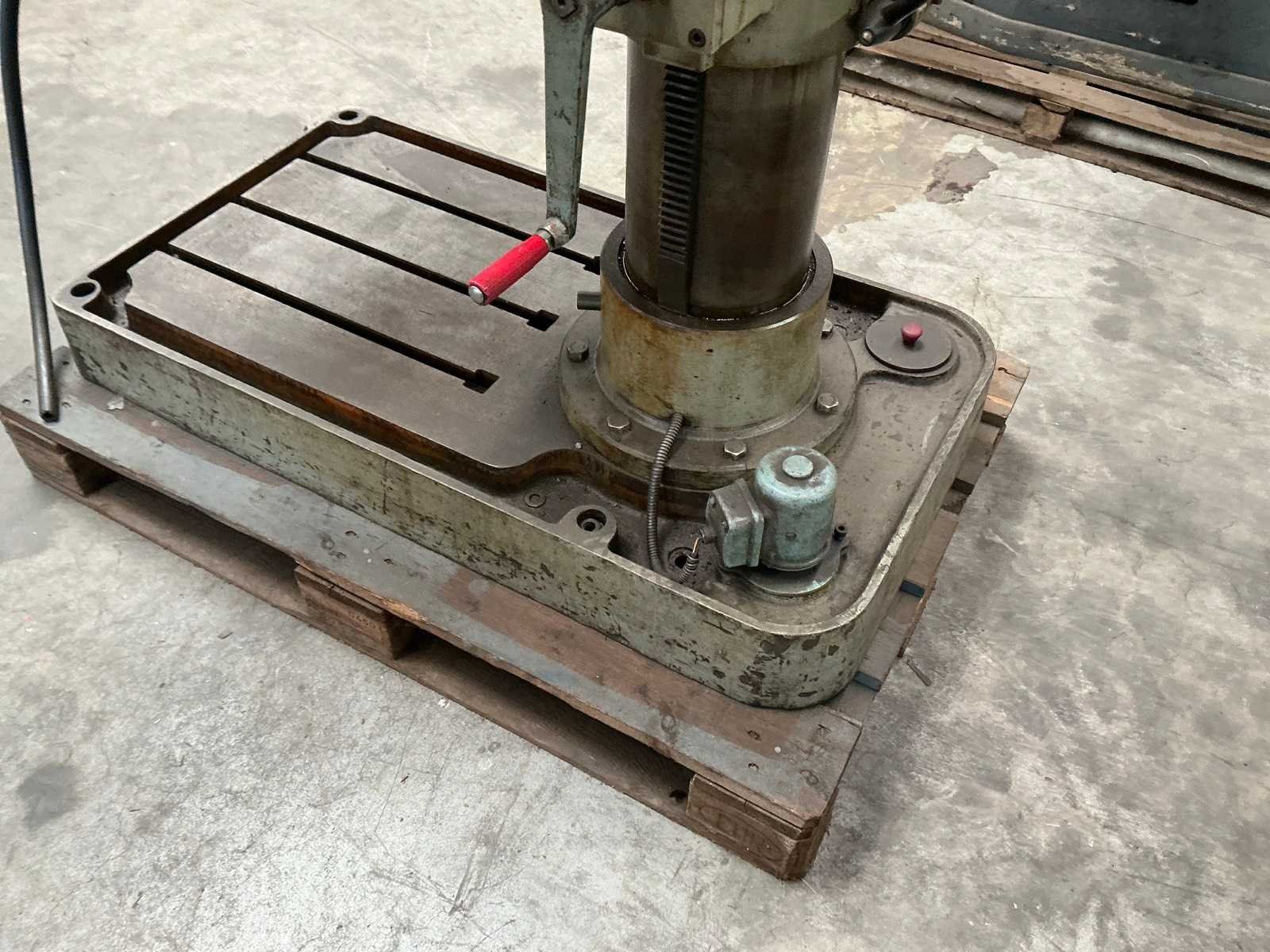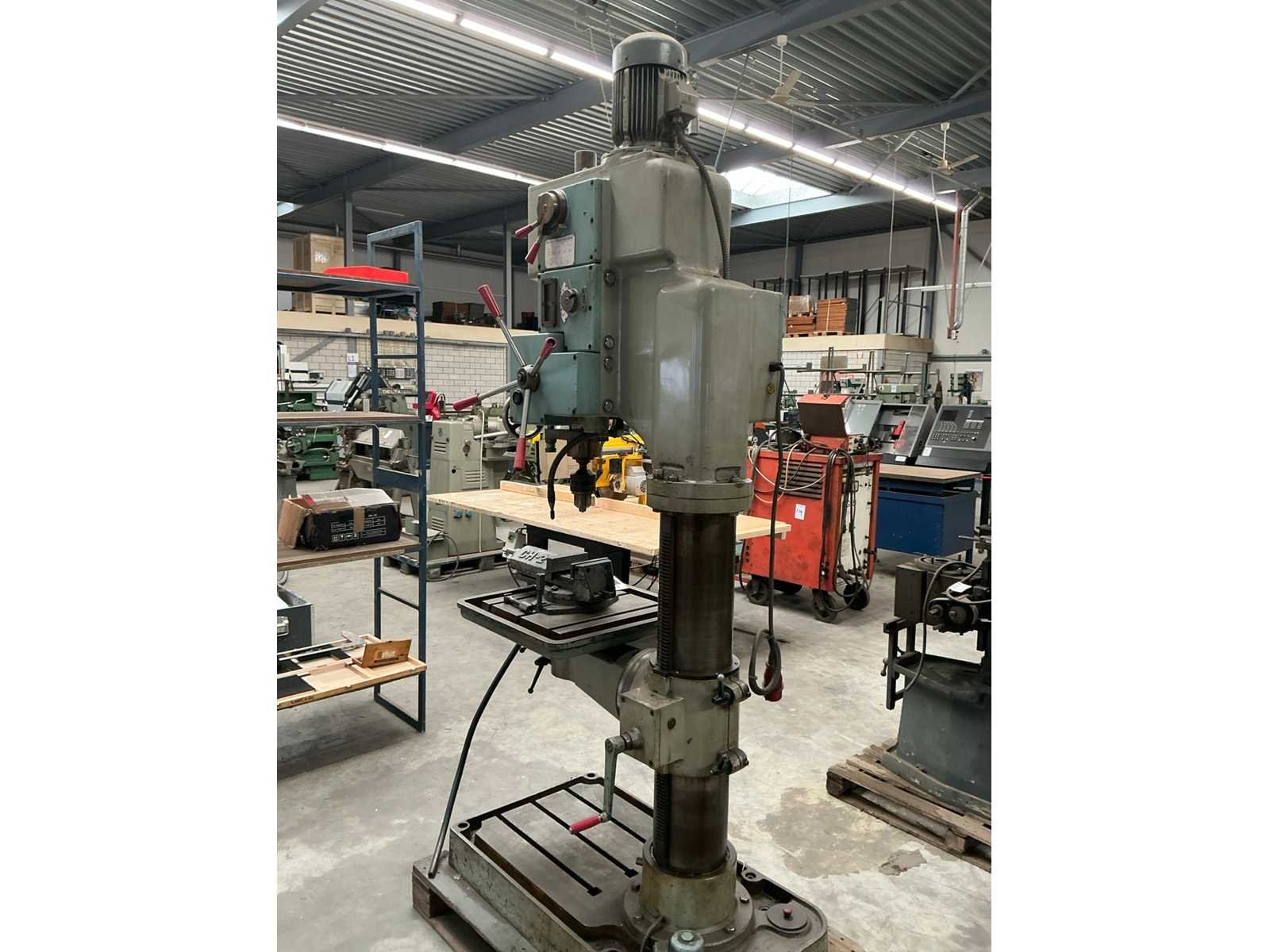Voorzien van CH-2 140mm machineklem Merk: Erlo Type: TCA-50 Aantal snelheden: 9 Spindelsnelheid van n =: 45rpm Spindelsnelheid tot n =: 1115rpm Boordiepte: 250mm Uitlading: 400mm Tandwiel aangedreven: true Tafel afmeting l: 420mm Tafel afmeting b: 420mm Koelmiddelpomp: true Motorvermogen (kW): 3kW Aansluiting: 400V Afmeting l: 1200mm Afmeting b: 800mm Afmeting h: 2650mm