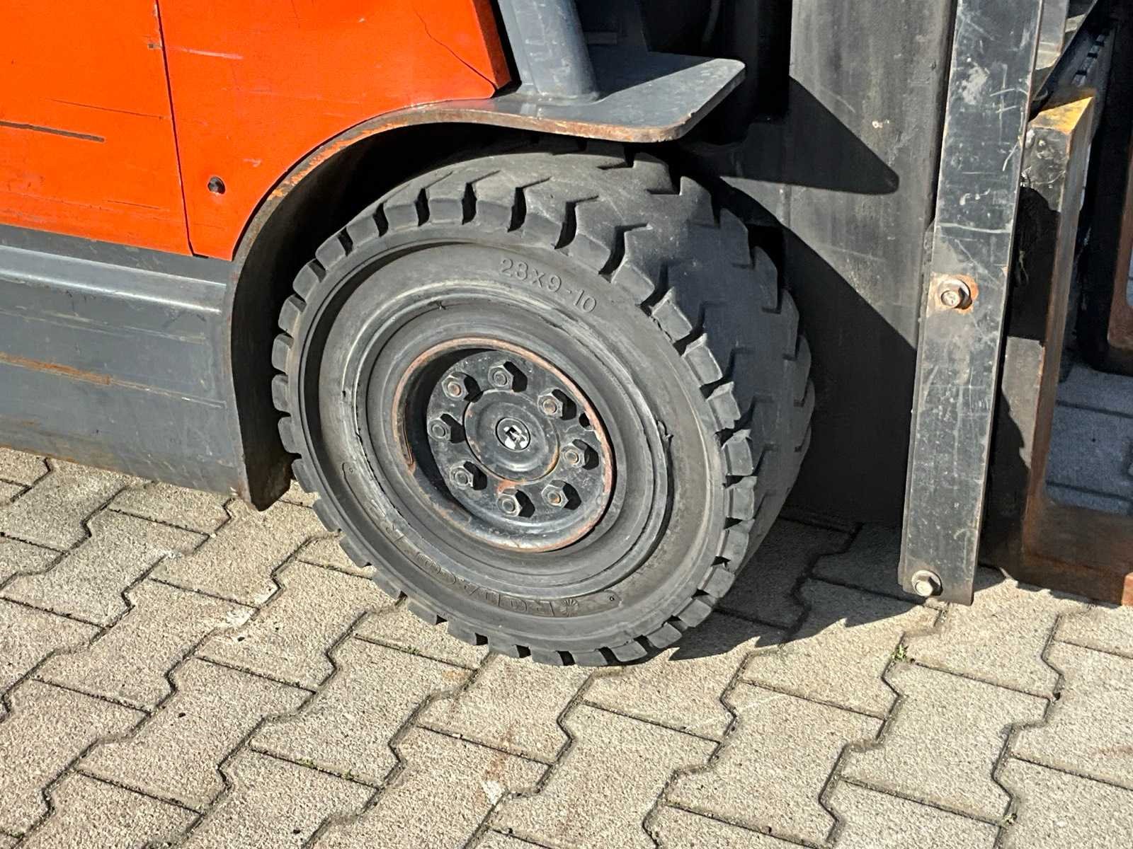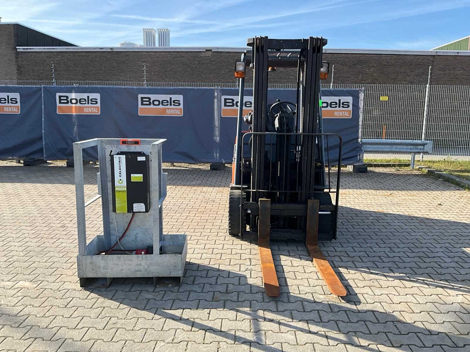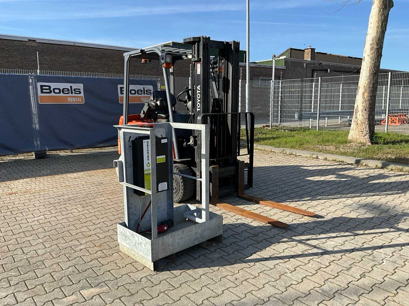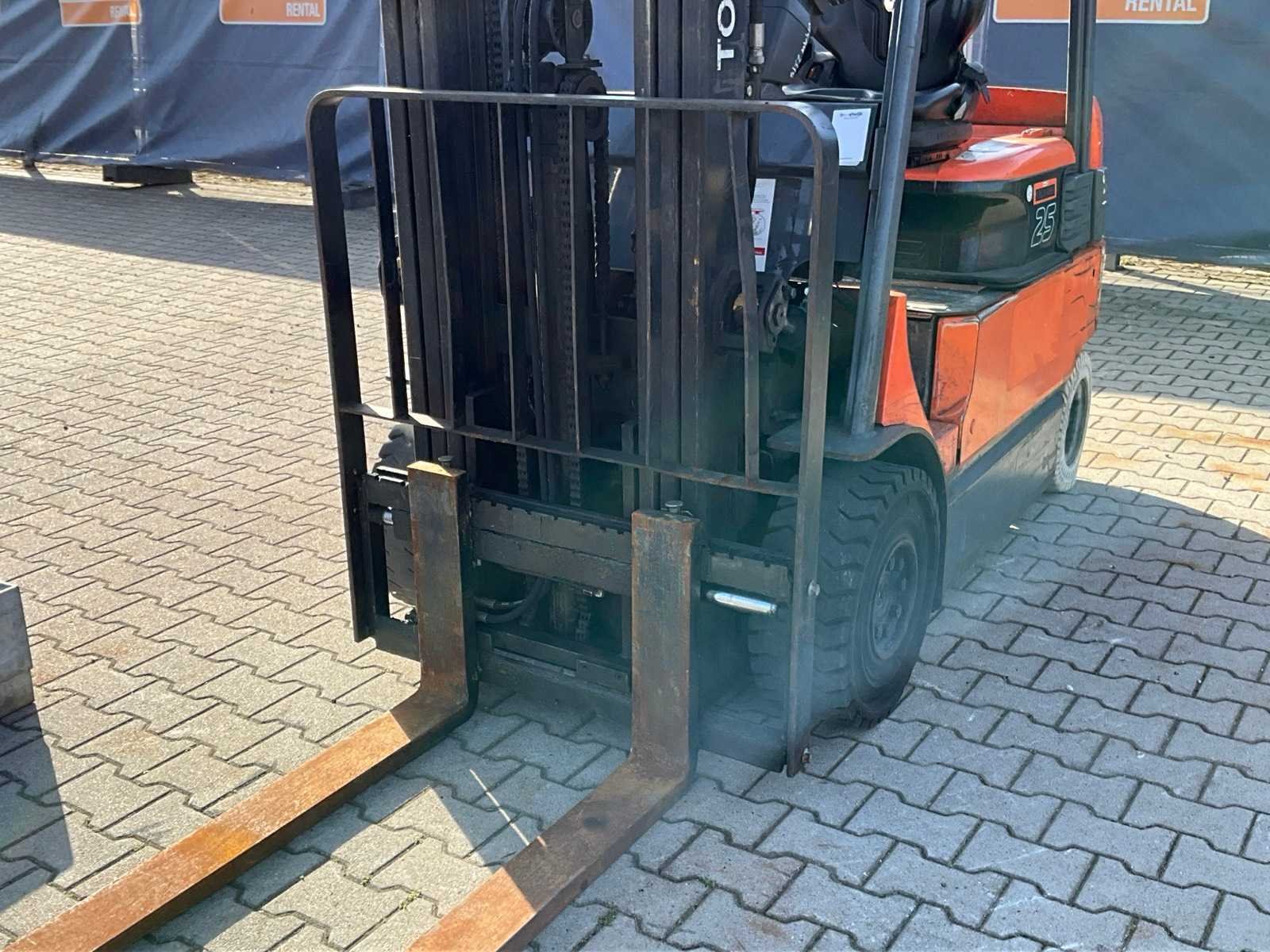 FEM2; working condition; Merk: Toyota Type: 7FBMF25 Bouwjaar: 2012 Serienummer: 7FBMF2519371 Brandstof: Elektrisch Mast: Triple Soort band: Volrubber banden Aantal wielen: 4 Afgelezen urenstand: 4484 Free-lift: true Side-shift: true Triple mast: true Eigen gewicht: 3150kg Hefvermogen: 2500kg Lepellengte: 1200mm Max. hefhoogte: 5000mm Vol rubber banden: true Minimale doorrijhoogte: 2400mm Totale afmeting L: 3600mm Totale afmeting Breedte: 1200mm Totale afmeting Hoogte: 2350mm