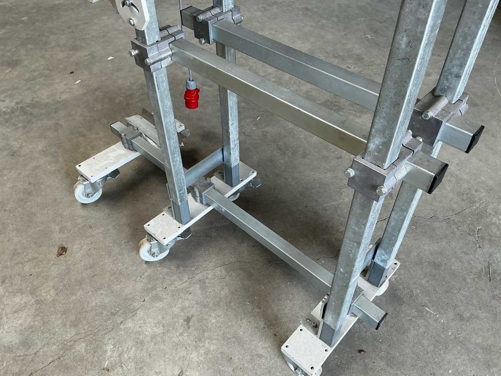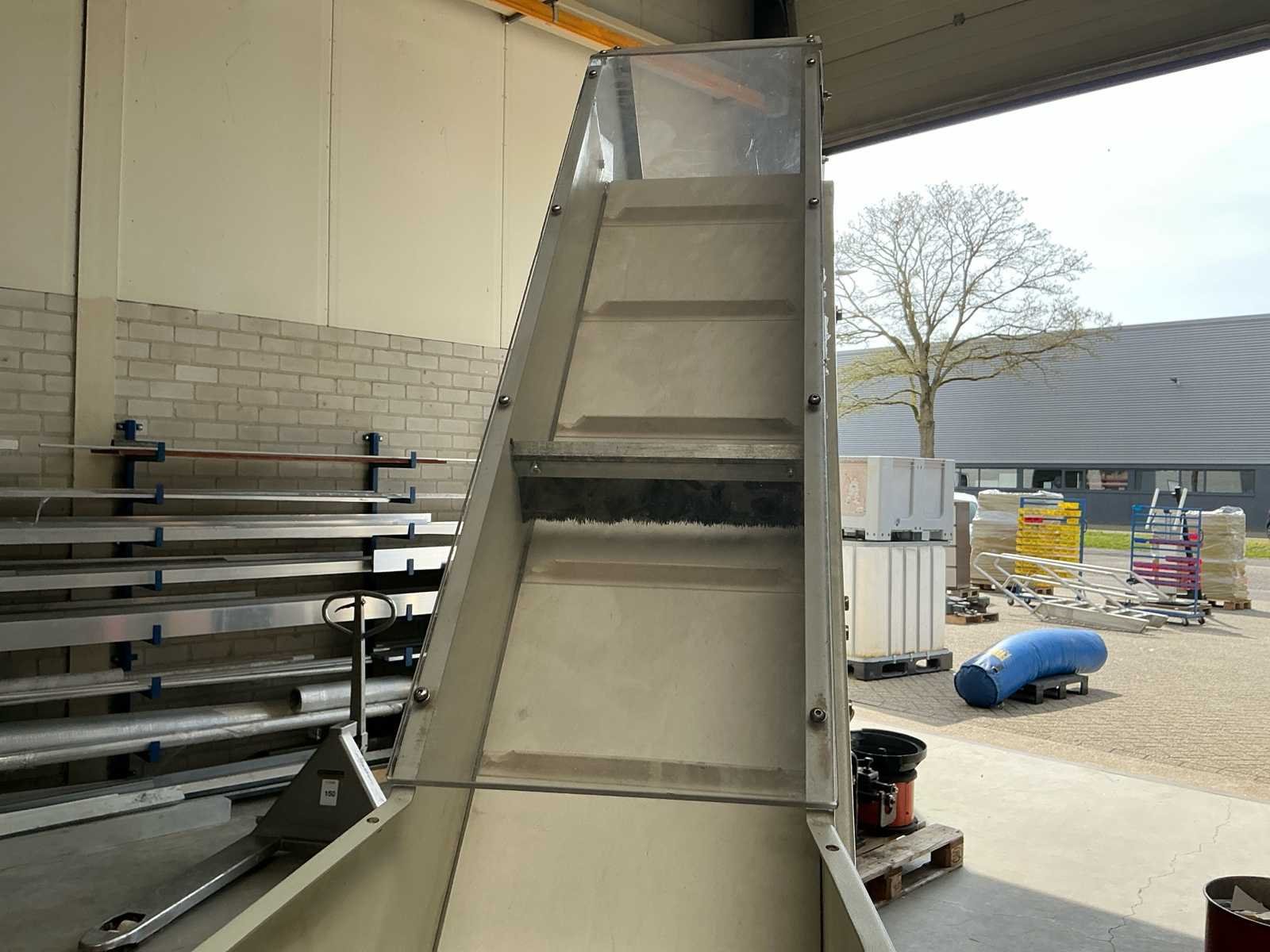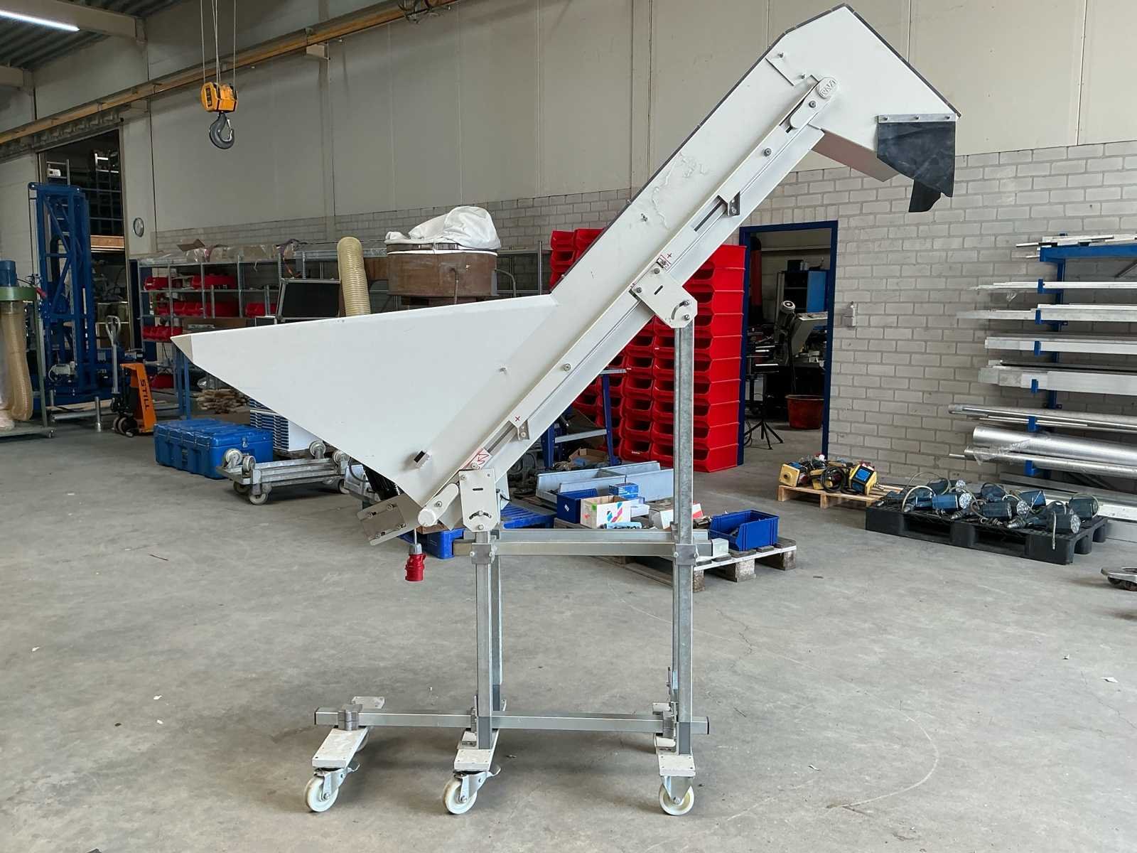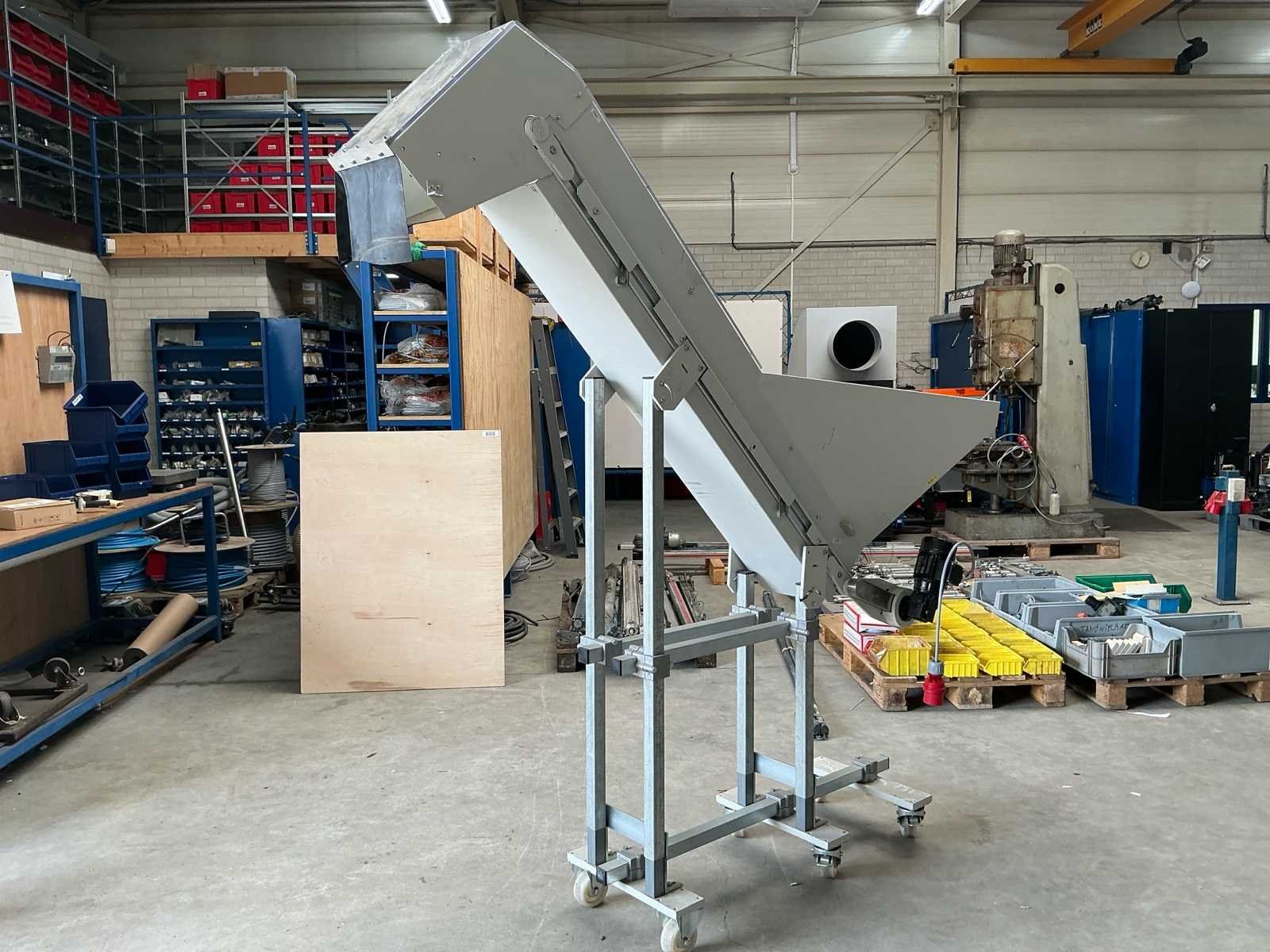 Voorzien van: elektromotor, meenemers, borstels, opvangbak Transportband afm. b: 250mm Aansluiting: 380V Totale afmeting L: 2100mm Totale afmeting Breedte: 500mm Totale afmeting Hoogte: 2200mm