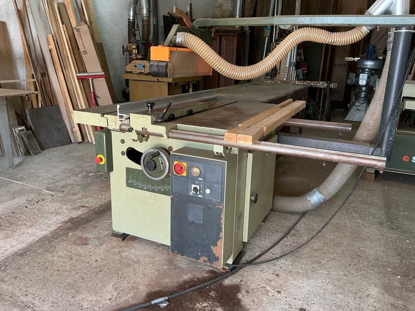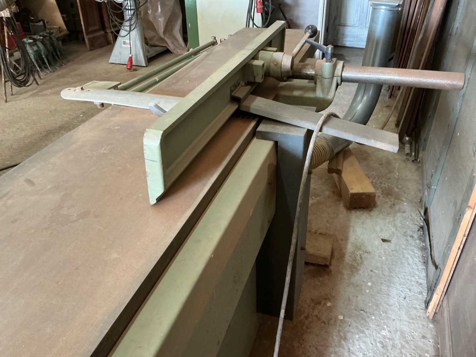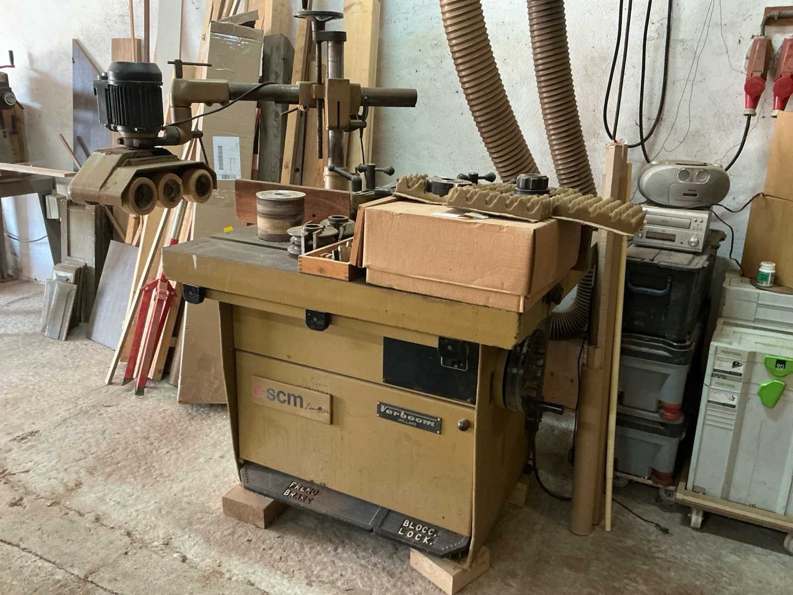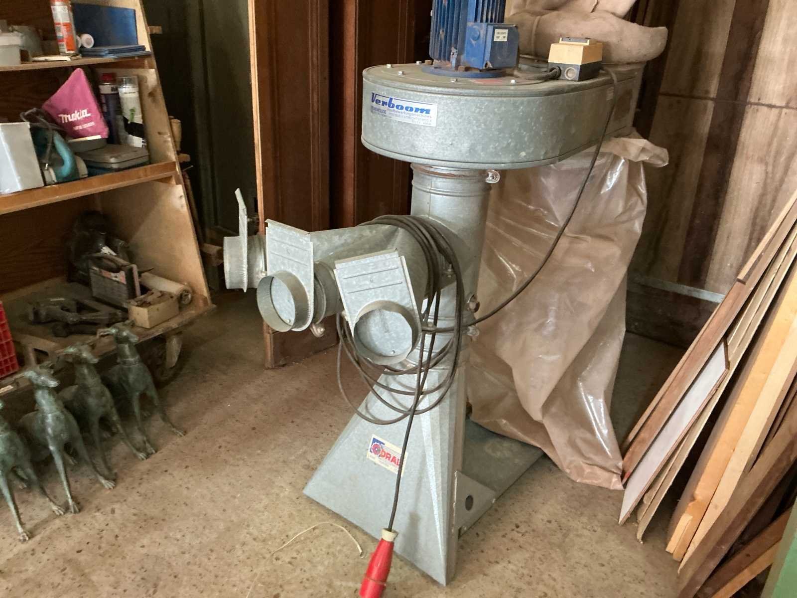 Voorzien van: HEY Afzuigsysteem type SAU 300 1000x3200x2900 VERBOOM Vlakbank type VE-400 2510x1200x1100 SCM Verdikte bank type S52 1800x1000x1100 SCM Tafelzaag type S116F inclusief aansluitende op maat gemaakte werkbank 1820x3750x1550 VERBOOM Afkortzaag type Radial600P3S inclusief op maat gemaakte metalen geleider 1260x4500x1450 SCM frees type T120/C 1050x950x1640 CORAL Afzuiging 1400x600x2200 CENTAURO Lintzaag type SP60 440x1100x2060 SAMCO Langgatboor type AS16 700x900x1200 Inclusief volledig functionerend afzuiging met koppeling en diverse losse buizen en stroomkast Dient door koper gedemonteerd te worden, hefmiddel aanwezig. Merk: VERBOOM