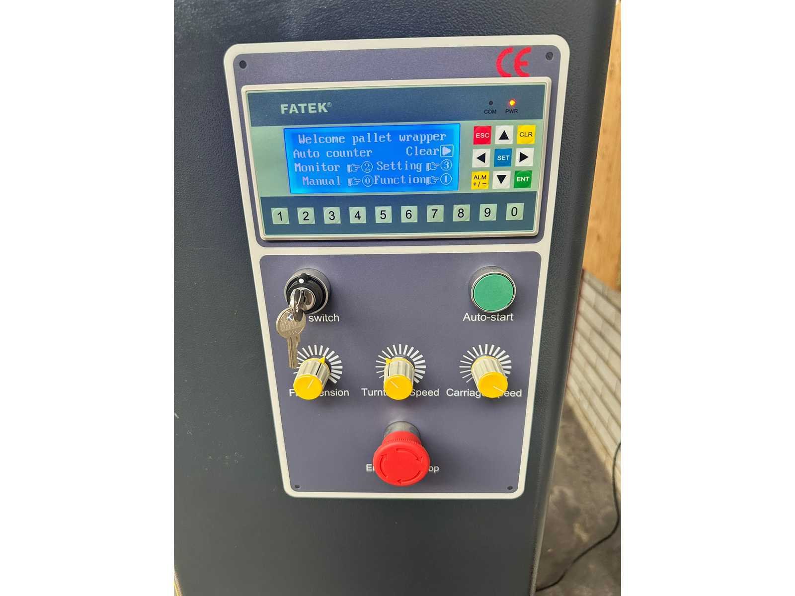 <p>Automatische palletwikkelmachine</p> <p>Verpakkingsmaat (L * W): (500-1200) mm * (500-1200) mm</p> <p>Verpakkingshoogte L-type: (500-2000) mm</p> <p>Verpakkingshoogte H-type: (500-2400) mm</p> <p>Verpakkingsefficiëntie: 20-40 ladingen/uur</p> <p>Draaitafel snelheid: 0-12 rpm</p> <p>Draaitafel diameter: 1650 mm</p> <p>Draaitafel hoogte: 85 mm</p> <p>Draaitafel laden (max): 2000 kg</p> <p>Spanning: eenfase 220V / 50Hz</p> <p>Stroom draaitafel: 0,75 kW</p> <p>Stroom filmwagen: 0,3 kW</p> <p>Stroom up-down: 0,4 kW</p> <p>Omhoog-omlaag frame: dubbele ketting, snelheidsregeling</p> <p>Filmwagen: pre-stretch</p> <p>Controle systeem: PLC</p> Bouwjaar: 2023 Plateau Ø: 1650mm Aansluiting: 220V Eigen gewicht: 700kg Totale afmeting L: 1650mm Totale afmeting Breedte: 2600mm Totale afmeting Hoogte: 2470mm