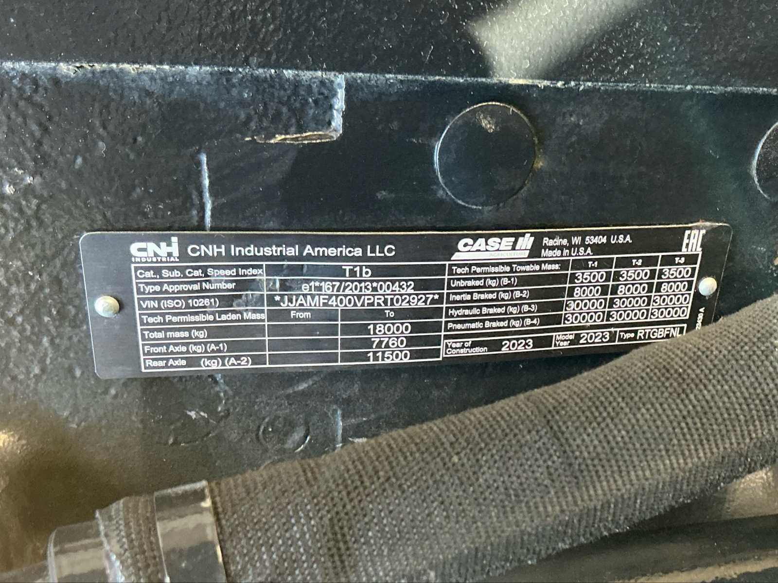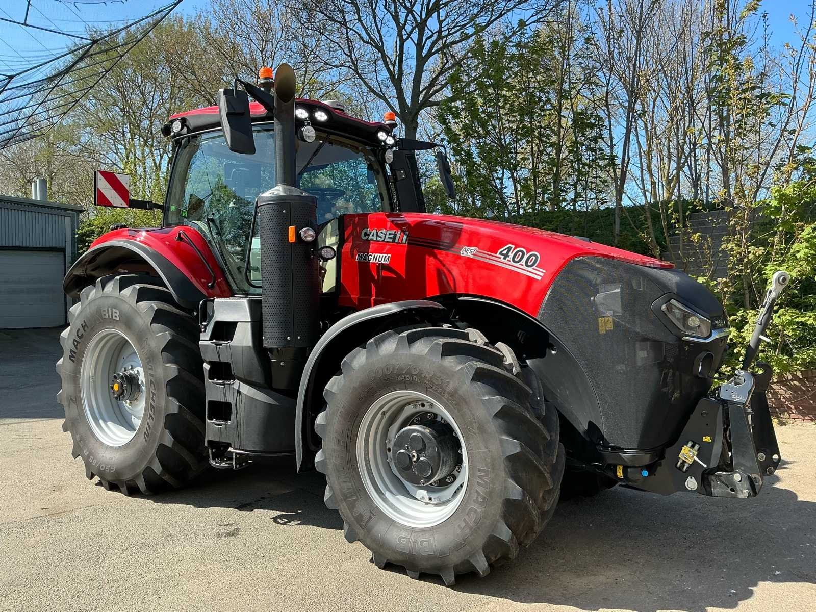 CASE IH Magnum 400 AFS Connect 4WD tractor Bouwjaar: 2023 Urenstand: 413 uur 6 cilinder dieselmotor Vermogen: 400 PK Powerdrive Full PowerShift 21 x 5 transmissie 50 km/pu transmissie Aandrijving: 4WD Ad Blue systeem Voorzien van: AFS GPS RTK Luchtremmen Geveerde vooras met differentieelblokkering Geveerde cabine Geveerde bestuurdersstoel AFS 1200 PRO monitor Airco Camera voorzijde LED verlichting 360 graden LED 20 werklichten Dubbel zwaailicht met achteruitrijalarm Fronthefinrichting 1000 RPM PTO Michelin banden 5 hydraulische ventielen Hefinrichting achterzijde 38mm automatische boventrekhaak Sleutelloze toegang met anti-diefstal sleutel Merk: Case Type: IH Magnum 400 AFS Connect Bouwjaar: 2023 Motorvermogen (kW): 294kW Afgelezen urenstand: 413 Versnellingsbaktype: Powershift 21 x 5 Aftakastoerental: 1000rpm Aantal hydraulische ventielen achter: 5 Bandenmaat voor: 600/70R30 Bandenmaat achter: 650/65R38 Fronthefinrichting: true Cabine: true Luchtgeveerde stoel: true Eigen gewicht: 13400kg Totale afmeting L: 6300mm Totale afmeting Breedte: 2650mm Totale afmeting Hoogte: 3600mm Chassisnummer: JJAMF400VPRT02927 Datum eerste toelating: 2023 Nationaliteit documenten: Nederlandse documenten