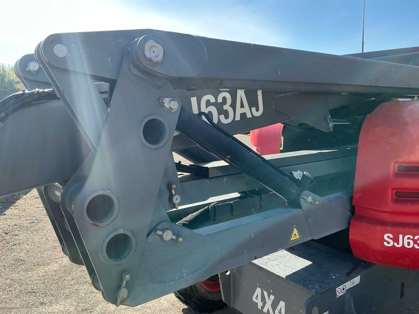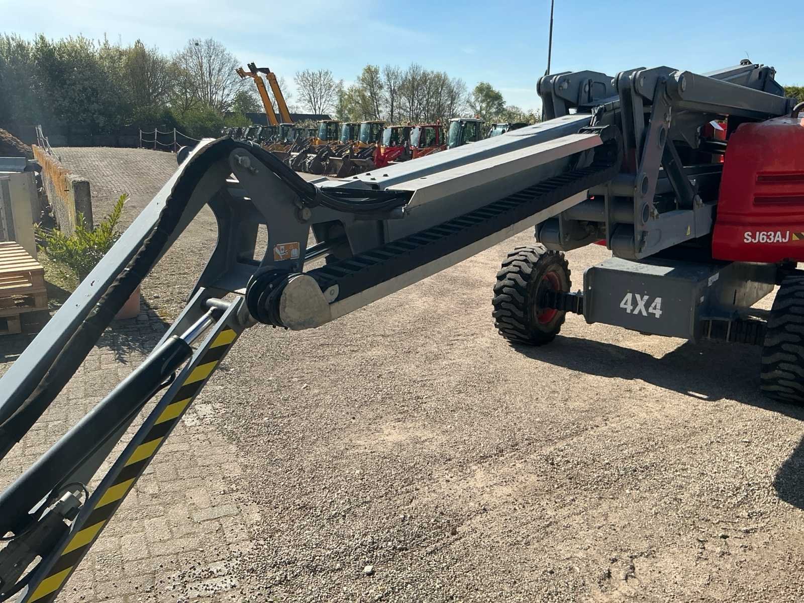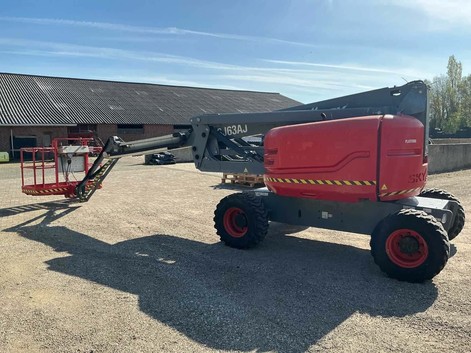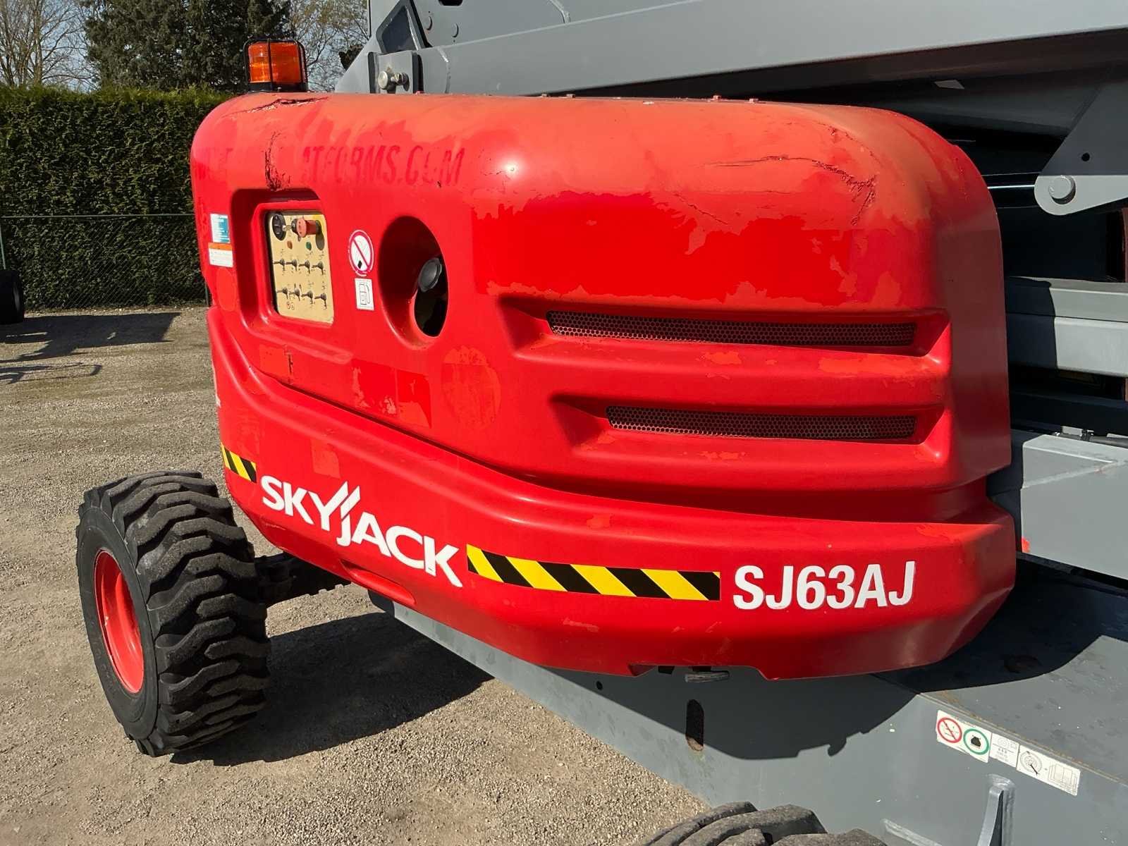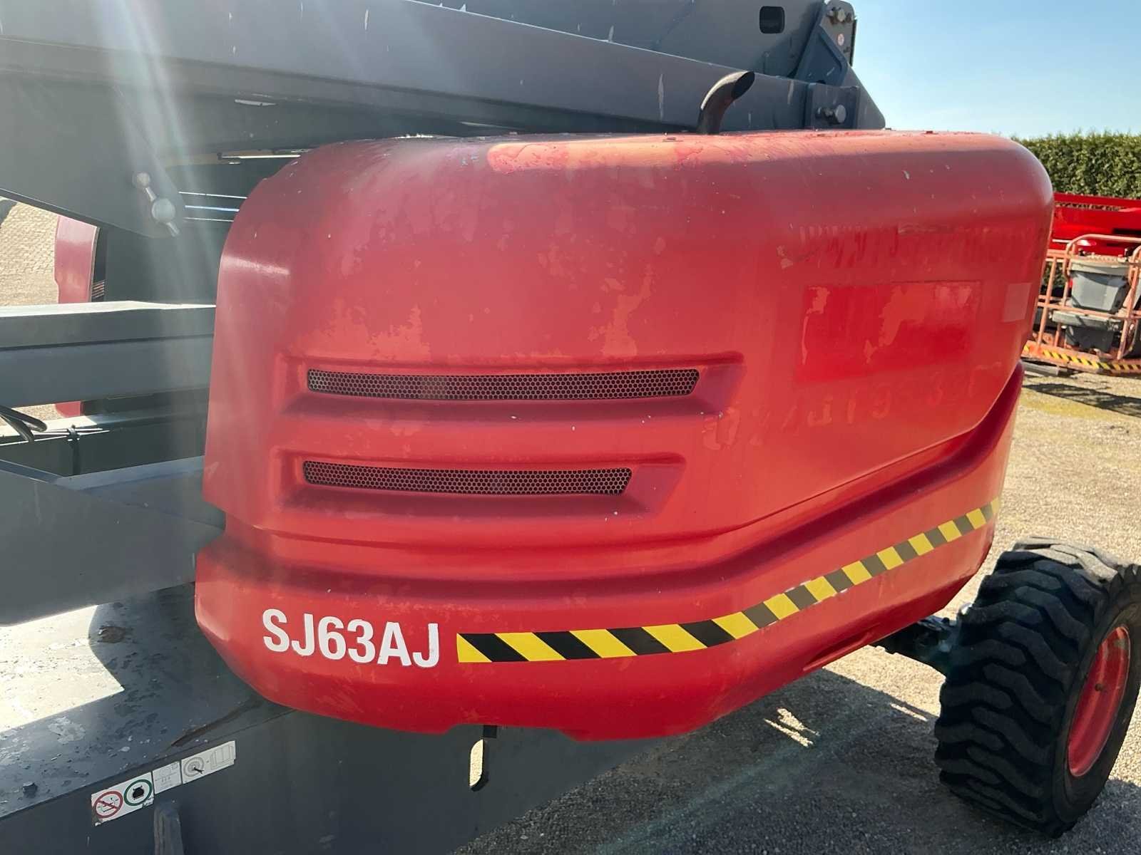 Wheel load: 5080kg, max wind 12,5 m/s, 400N, Rijsnelheid: ca. 7,3 km/u, Hellingsvermogen: 45% , Draaibereik toren: 360° continu, Platformrotatie: ±170° Merk: Skyjack Type: SJ 63AJ Bouwjaar: 2015 Serienummer: 95300565 Diesel: true Elektrisch: true Motorvermogen (kW): 55kW Knikarm hoogwerker: true Werkhoogte: 21500mm Horizontale rijkwijdte: 12000mm Plateau afm. l: 1800mm Plateau afm. b: 900mm Platform capaciteit: 227kg Afgelezen urenstand: 2763 Eigen gewicht: 10200kg Totale afmeting L: 7000mm Totale afmeting Breedte: 2350mm Totale afmeting Hoogte: 2500mm