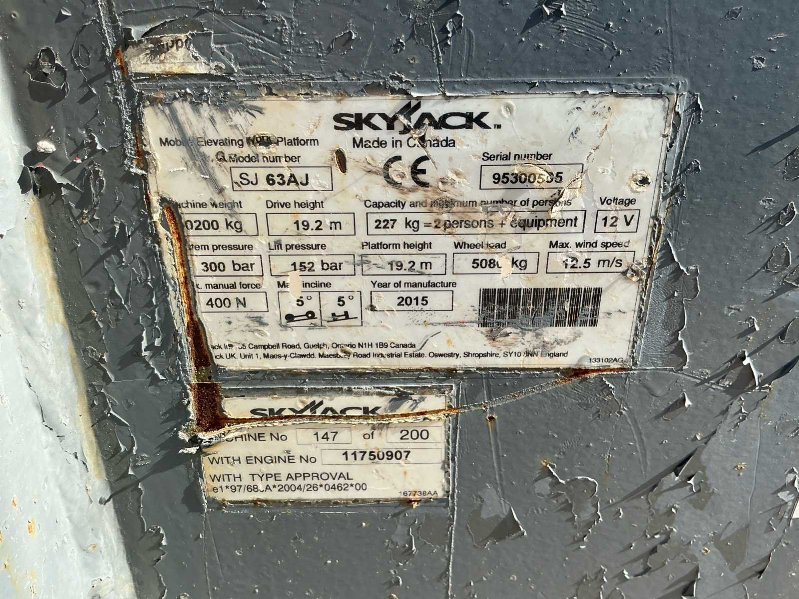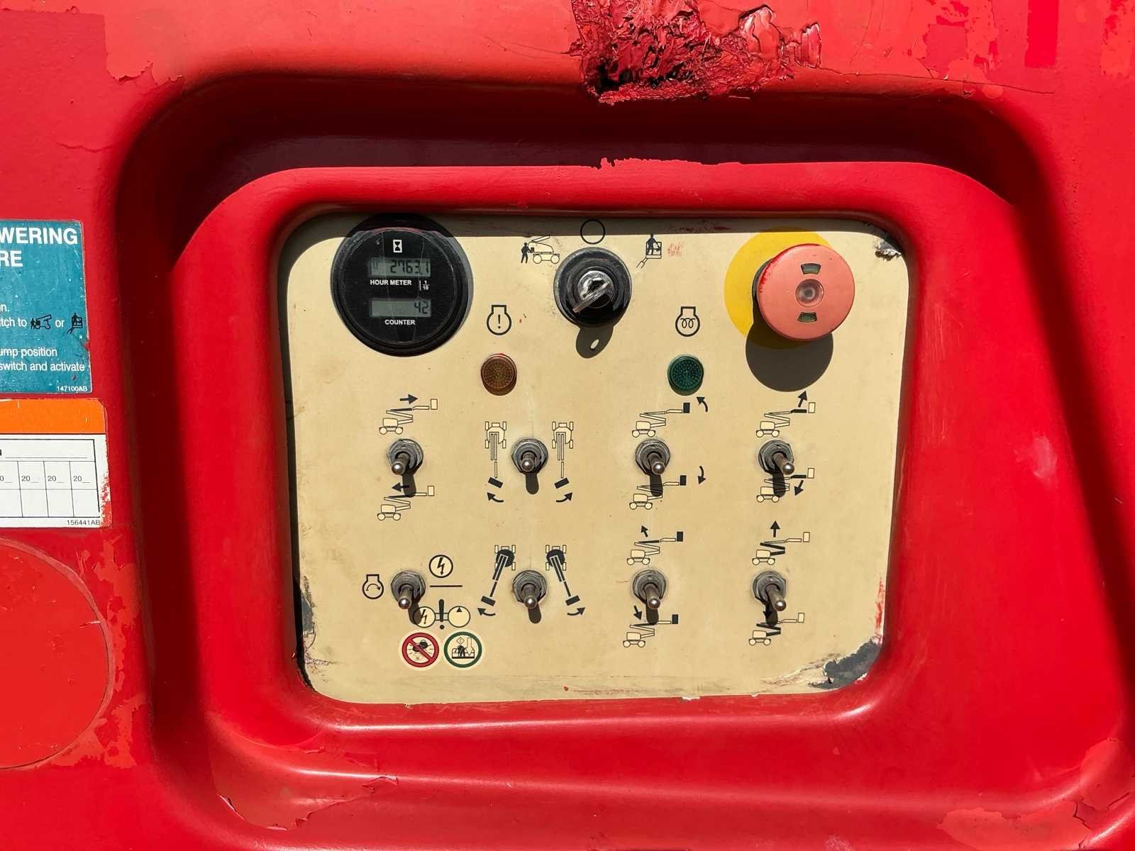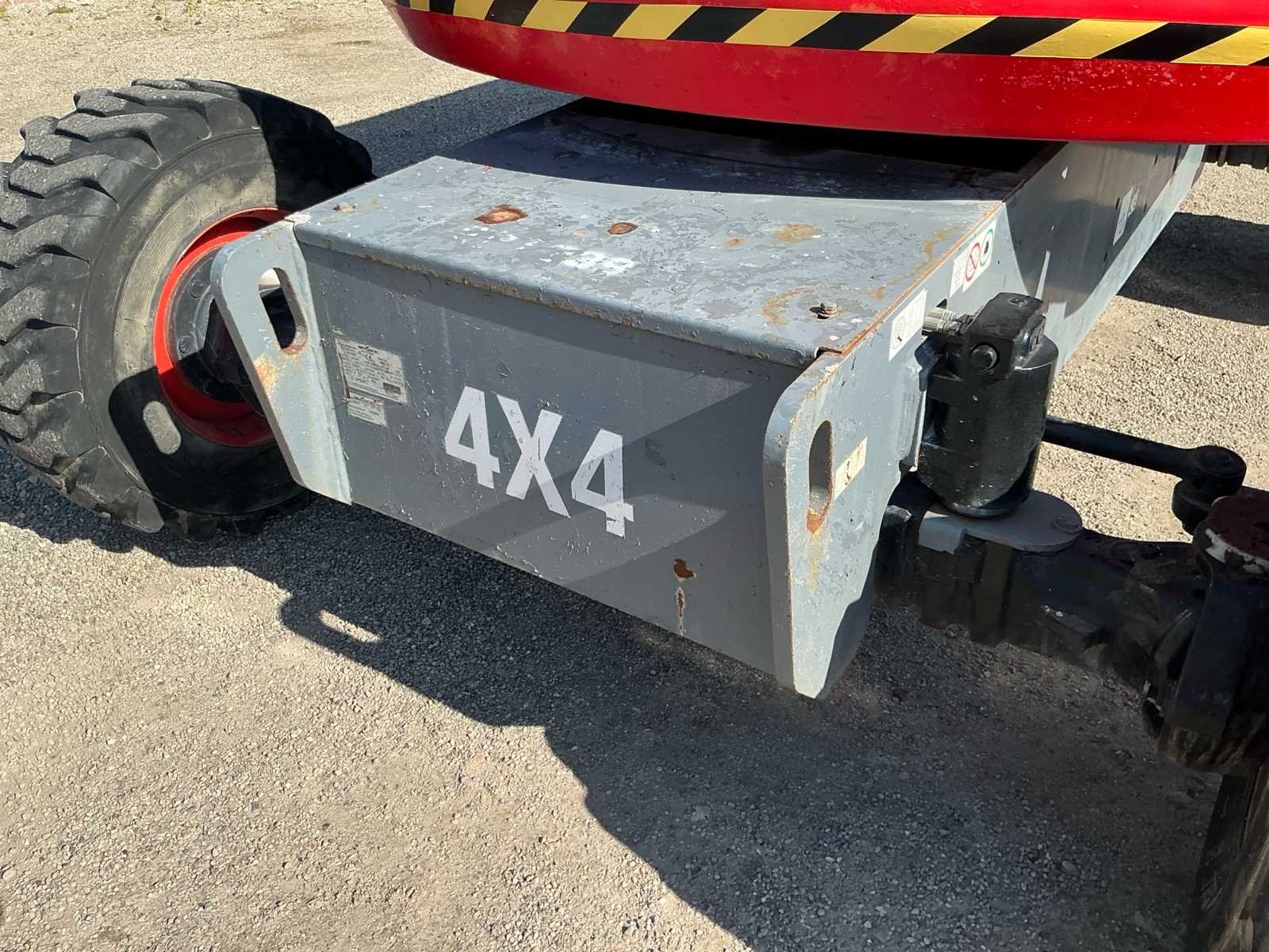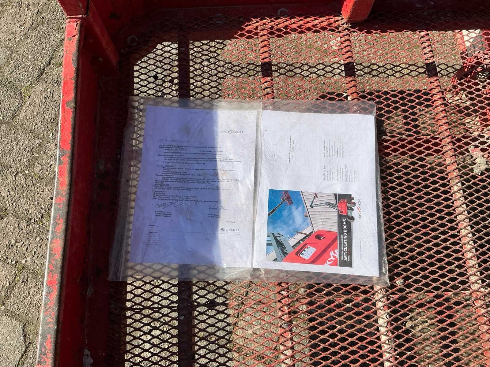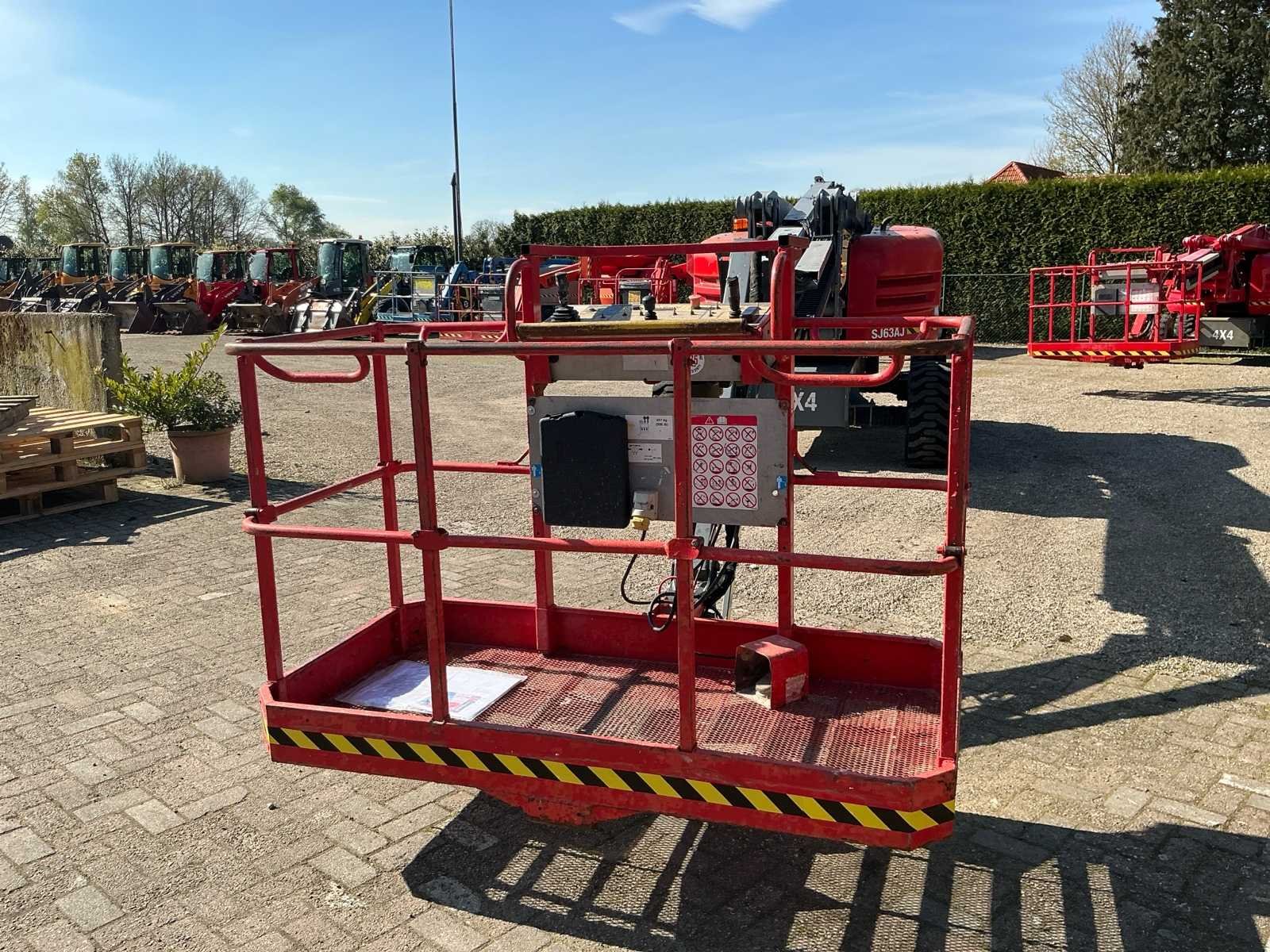 Wheel load: 5080kg, max wind 12,5 m/s, 400N, Rijsnelheid: ca. 7,3 km/u, Hellingsvermogen: 45% , Draaibereik toren: 360° continu, Platformrotatie: ±170° Merk: Skyjack Type: SJ 63AJ Bouwjaar: 2015 Serienummer: 95300565 Diesel: true Elektrisch: true Motorvermogen (kW): 55kW Knikarm hoogwerker: true Werkhoogte: 21500mm Horizontale rijkwijdte: 12000mm Plateau afm. l: 1800mm Plateau afm. b: 900mm Platform capaciteit: 227kg Afgelezen urenstand: 2763 Eigen gewicht: 10200kg Totale afmeting L: 7000mm Totale afmeting Breedte: 2350mm Totale afmeting Hoogte: 2500mm