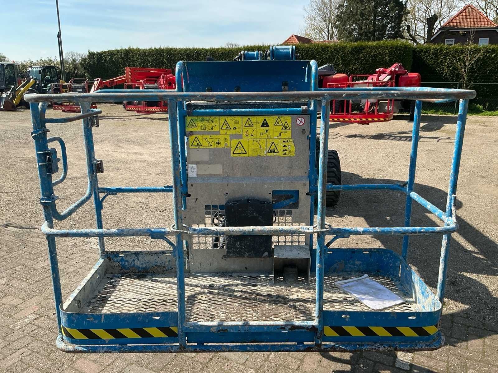 400N, 12,5 m/s, Rijsnelheid: ± 4,8 km/u, Hellingsvermogen: 30%, Draaibereik toren: 355° (niet continu), Platformrotatie: ±160–180° Merk: Genie Type: Z-45/25J Bouwjaar: 2014 Serienummer: Z452514B-3703 Diesel: true Elektrisch: true Motorvermogen (kW): 35kW Knikarm hoogwerker: true Werkhoogte: 16000mm Horizontale rijkwijdte: 8000mm Plateau afm. l: 1800mm Plateau afm. b: 750mm Platform capaciteit: 227kg Afgelezen urenstand: 3998 Eigen gewicht: 6172kg Totale afmeting L: 4500mm Totale afmeting Breedte: 2300mm Totale afmeting Hoogte: 2500mm