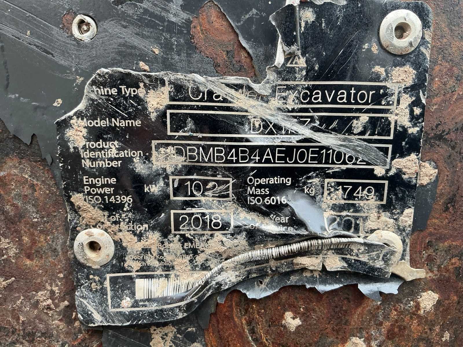 Let op, display niet leesbaar 230mm, vaste pen, 3e functie voorbereid, werkverlichting, blad 990mm, verstelbaar rijwerk 990/1300mm, 2e rijsnelheid Merk: Doosan Type: DX17z Bouwjaar: 2018 Serienummer: DBMB4BAEJ0E11062 Motorvermogen (kW): 10.2kW Brandstof: Diesel Bedrijfsgewicht: 1749kg Inclusief graafbak: Yes Graafbak afm. b: 230mm Rups breedte: 230mm Eigen gewicht: 1749kg Totale afmeting L: 3200mm Totale afmeting Breedte: 1300mm Totale afmeting Hoogte: 2300mm