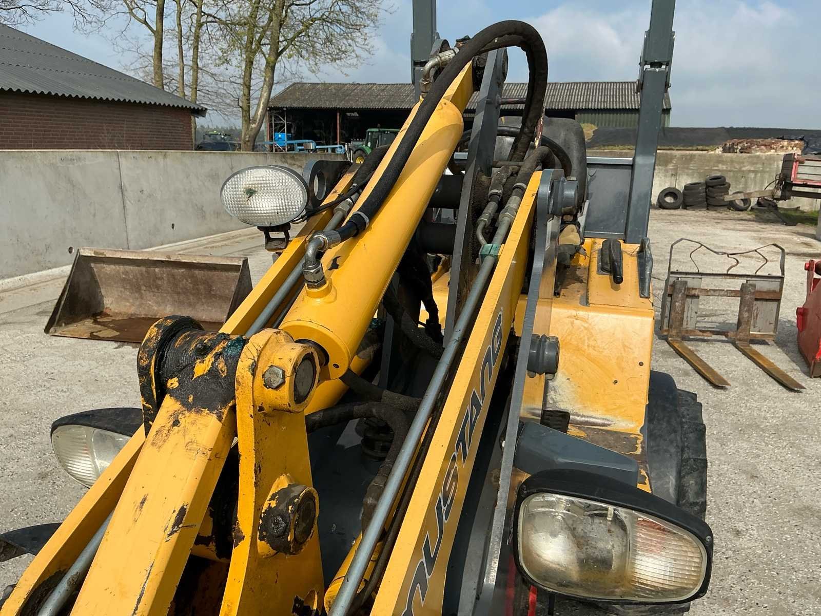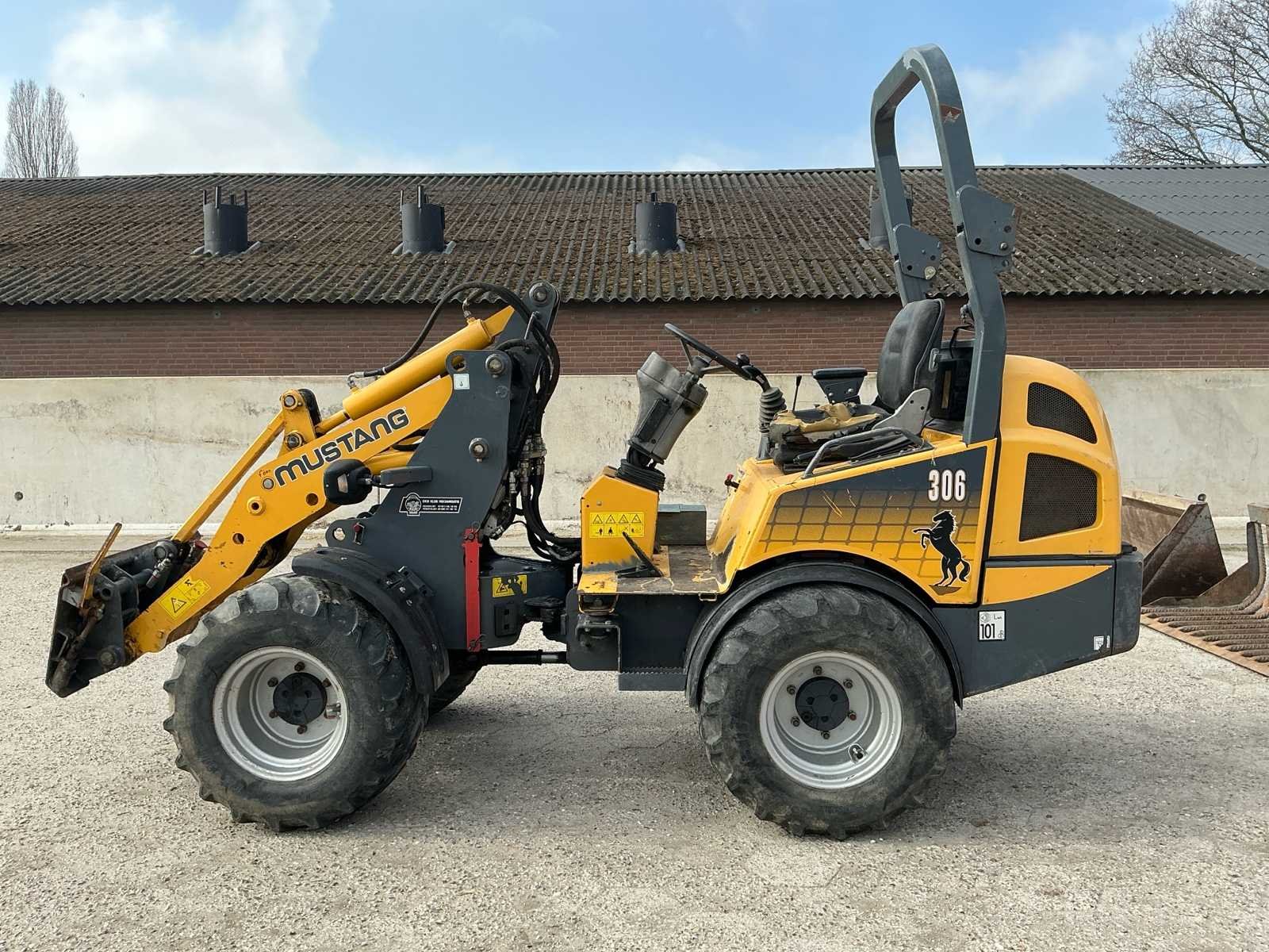 Voorzien van: hydraulische snelwissel, sper, hydraulische functie op giek, werkverlichting, knikbesturing, trekhaak, NL kenteken, hydraulische grijper/mestriek, puinbak, vorken, schepbak, grote mestriek/mestklem Merk: Mustang Type: AL306 Serienummer: GHLAL300T00030252 Merk motor: Yanmar Kenteken: TFZ02L Motorvermogen (kW): 26kW Aantal cilinders: 3 Brandstof: Diesel Bedrijfsgewicht: 2357kg Graafbak afm. l: 750mm Graafbak afm. b: 1400mm Graafbak afm. h: 650mm Bandenmaat: 31x15.50-15 NHS Afgelezen urenstand: 3122 Eigen gewicht: 2357kg Totale afmeting L: 2700mm Totale afmeting Breedte: 1300mm Totale afmeting Hoogte: 1820mm