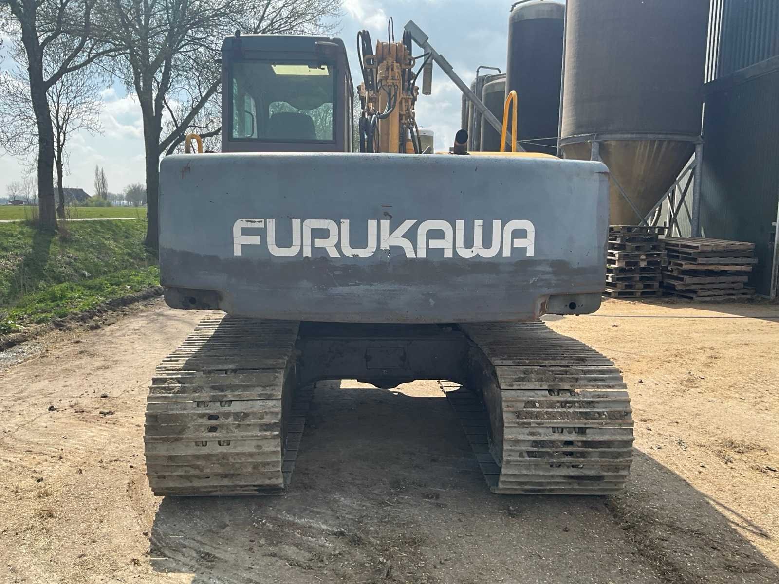 Voorzien van CW20 aansluiting; extra hydraulische functie Merk: Furukawa Type: 725 LS Bouwjaar: 1995 Serienummer: 282 0022 Bedrijfsgewicht: 14000kg Graafbak afm. b: 1780mm Rups breedte: 700mm Cabine: true Afgelezen urenstand: 7362 Eigen gewicht: 14000kg