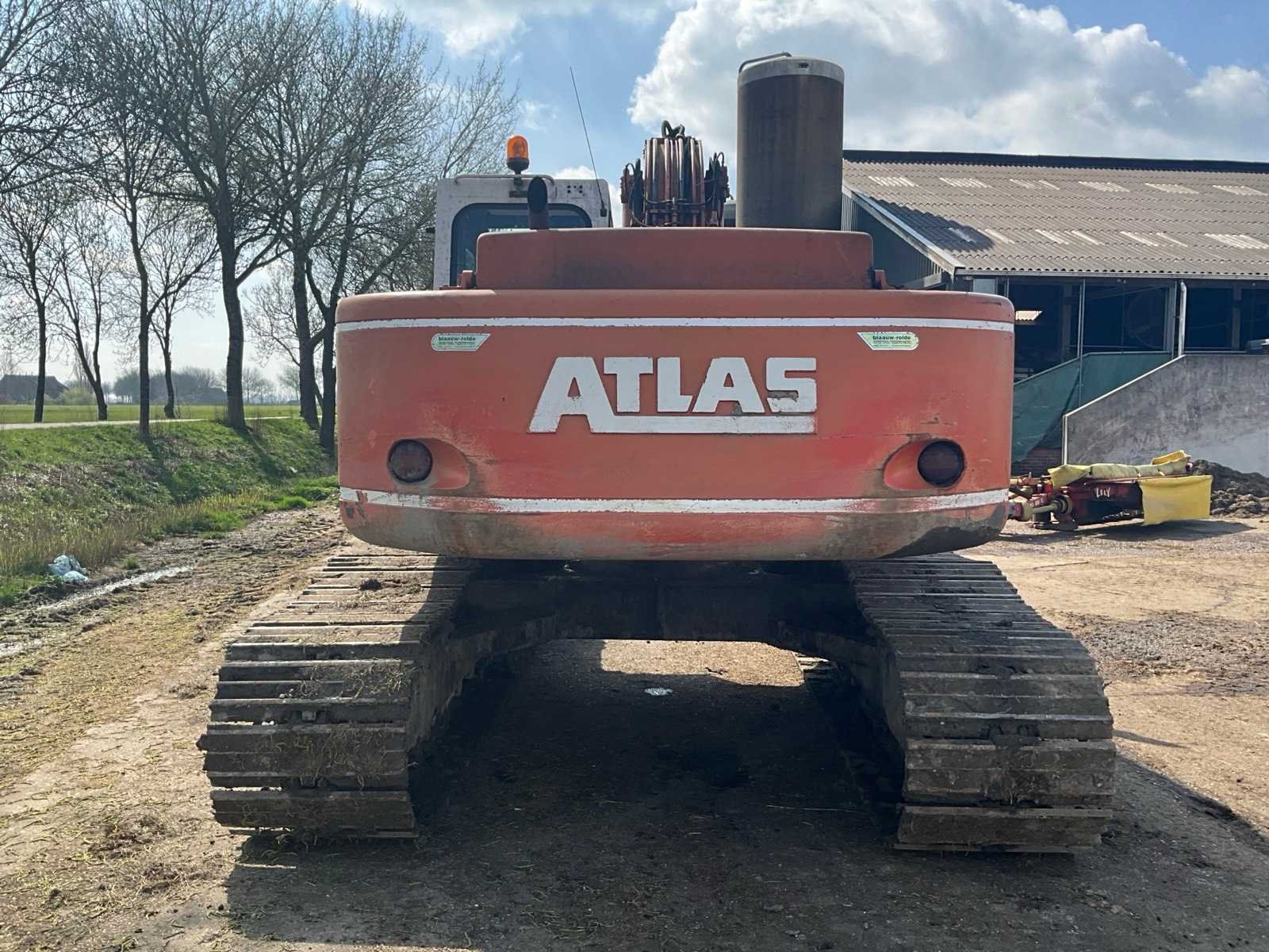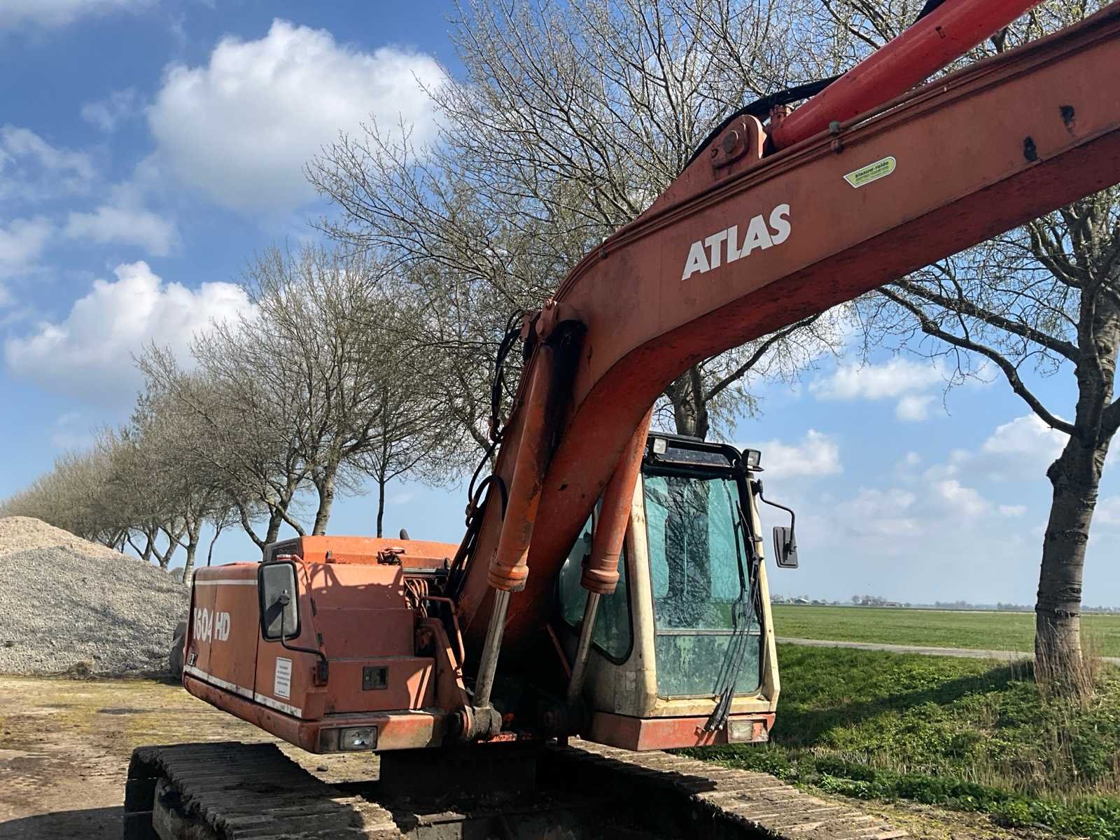 Voorzien van 4-Cil. Dieselmotor; hydraulische snelwissel; CW30 aansluiting; extra hydraulische functie; Merk: Atlas Type: 1604HD Bouwjaar: 1995 Serienummer: 166R42570 Aantal cilinders: 4 Brandstof: Diesel Bedrijfsgewicht: 20000kg Rups breedte: 700mm Cabine: true Afgelezen urenstand: 11000