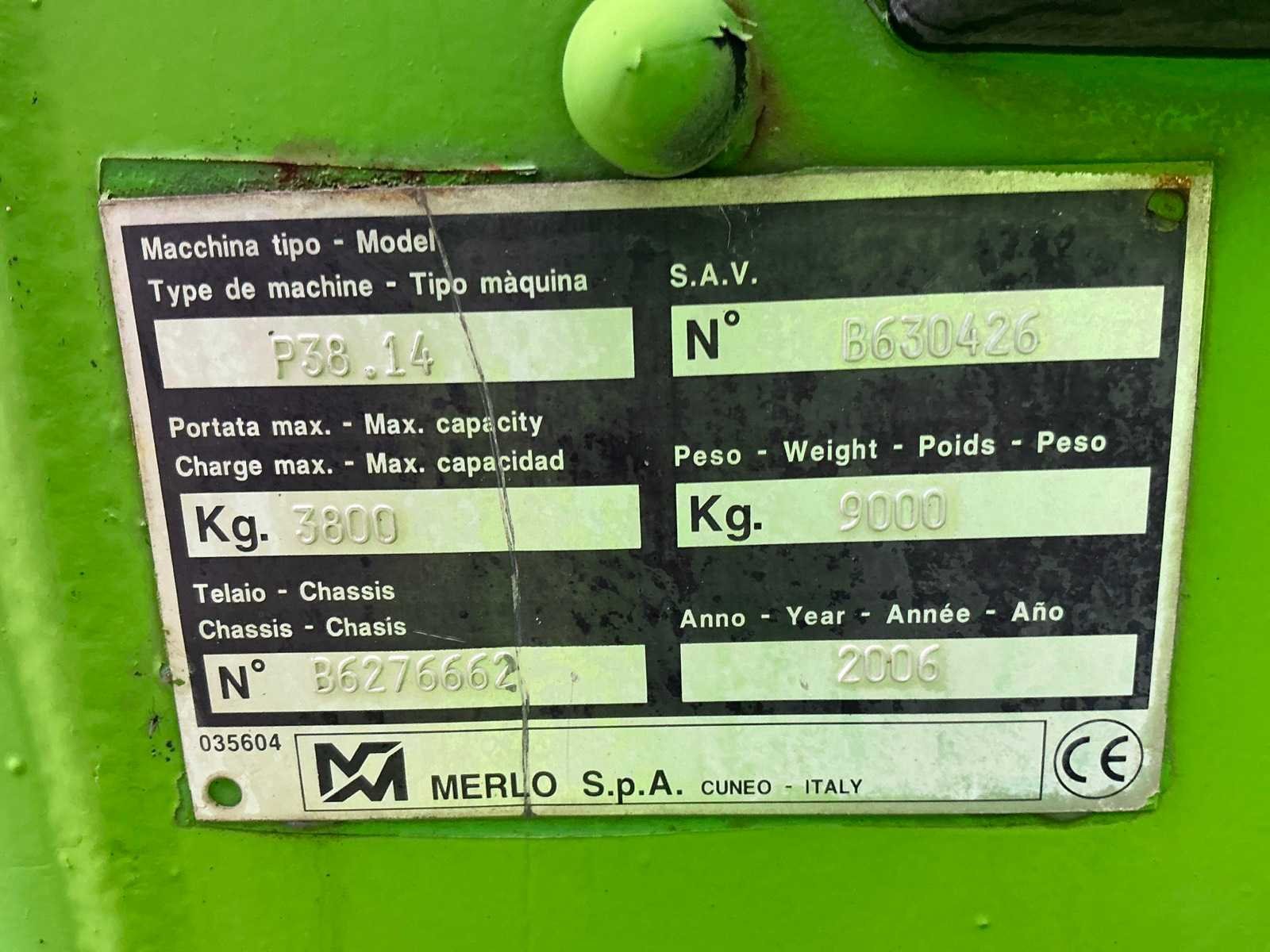 Let op; remt niet goed, rijdt meteen aan, 4x4x4, Asstabilisatie, nivellering, Lepels 1200mm, hydraulische wissel, 3e functie, 3 delig telescopische mast, steunpoten, verwarming Merk: Merlo Type: P38-14 Bouwjaar: 2006 Serienummer: B6276662 Hefvermogen: 3800kg Hefhoogte: 14000mm Cabine: true Vierwielaandrijving 4x4: true Lepellengte: 1200mm Luchtbanden: true Afgelezen urenstand: 3605 Eigen gewicht: 9000kg Totale afmeting L: 6850mm Totale afmeting Breedte: 2230mm Totale afmeting Hoogte: 2500mm