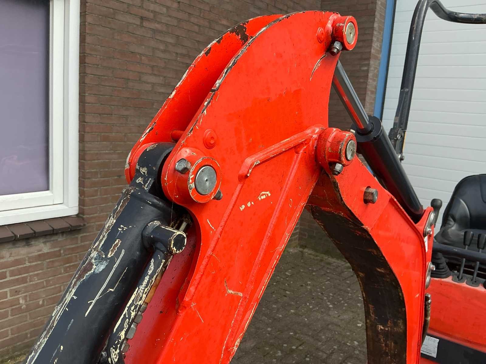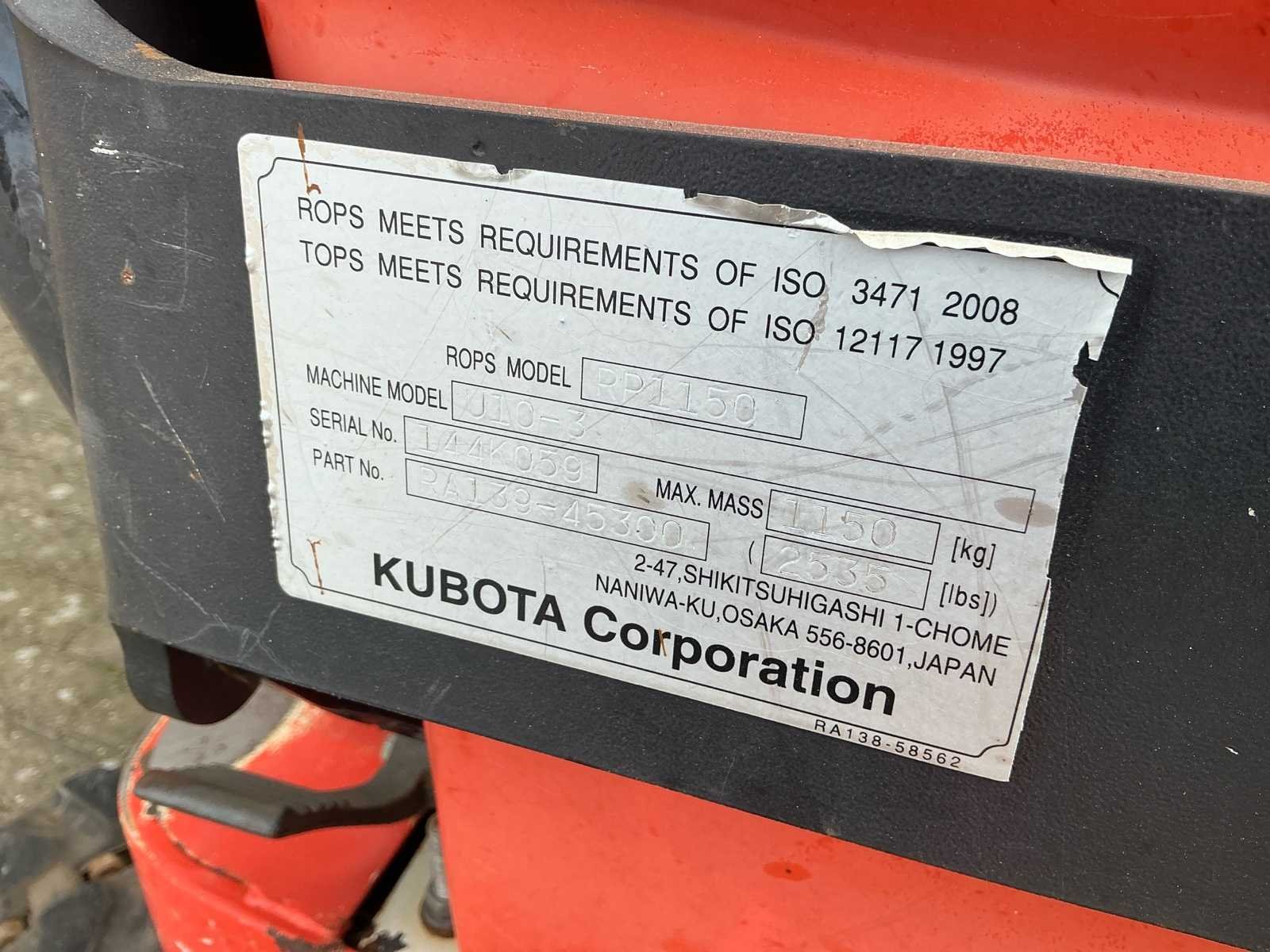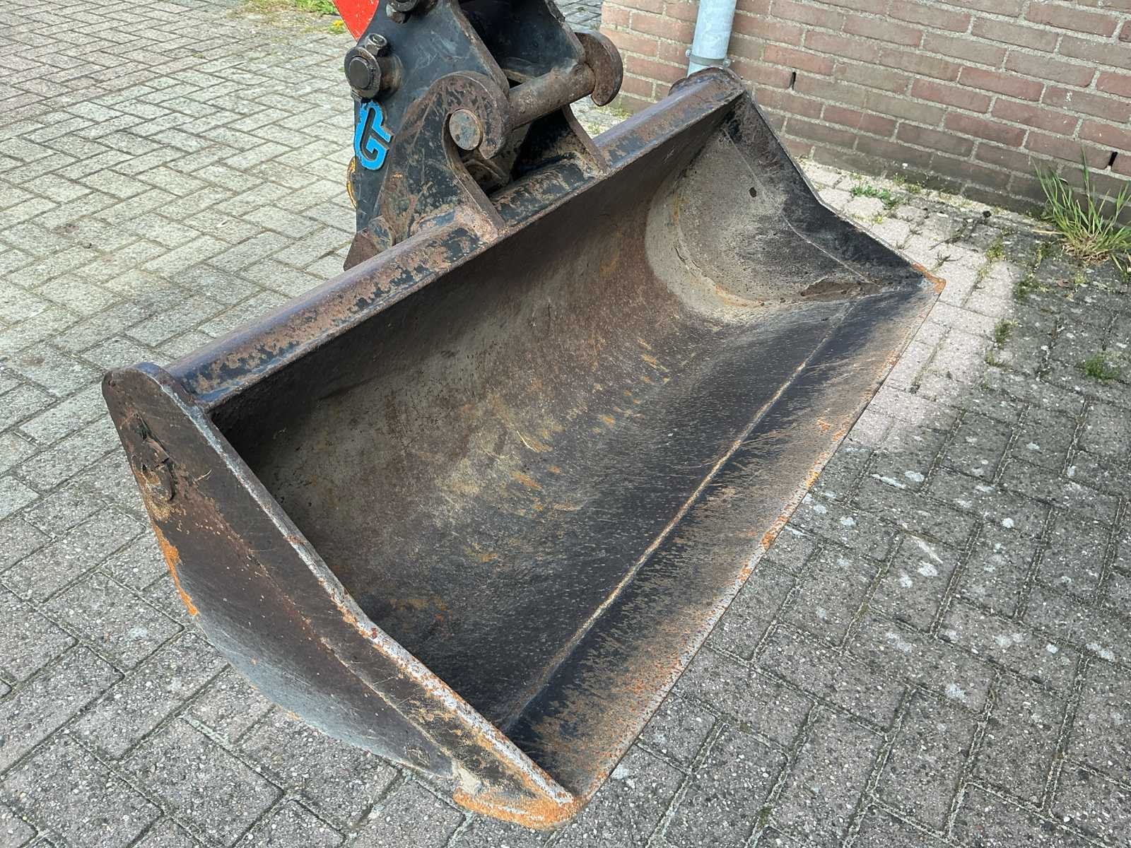 Voorzien van: graafbak, werkverlichting, draaiwerk verstelbaar, rupsbreedte verstelbaar, tweede rijsnelheid, mechanische snelwissel, verstelbaar rijwerk, brede bak Merk: Kubota Type: U10-3 Bouwjaar: 2014 Serienummer: JKUU0103E01H23236 Bedrijfsgewicht: 1045kg Gieklengte: 2400mm Inclusief graafbak: Ja Graafbak afm. b: 800mm Rups breedte: 180mm Afgelezen urenstand: 2544 Totale afmeting L: 1900mm Totale afmeting Breedte: 770mm Totale afmeting Hoogte: 2230mm