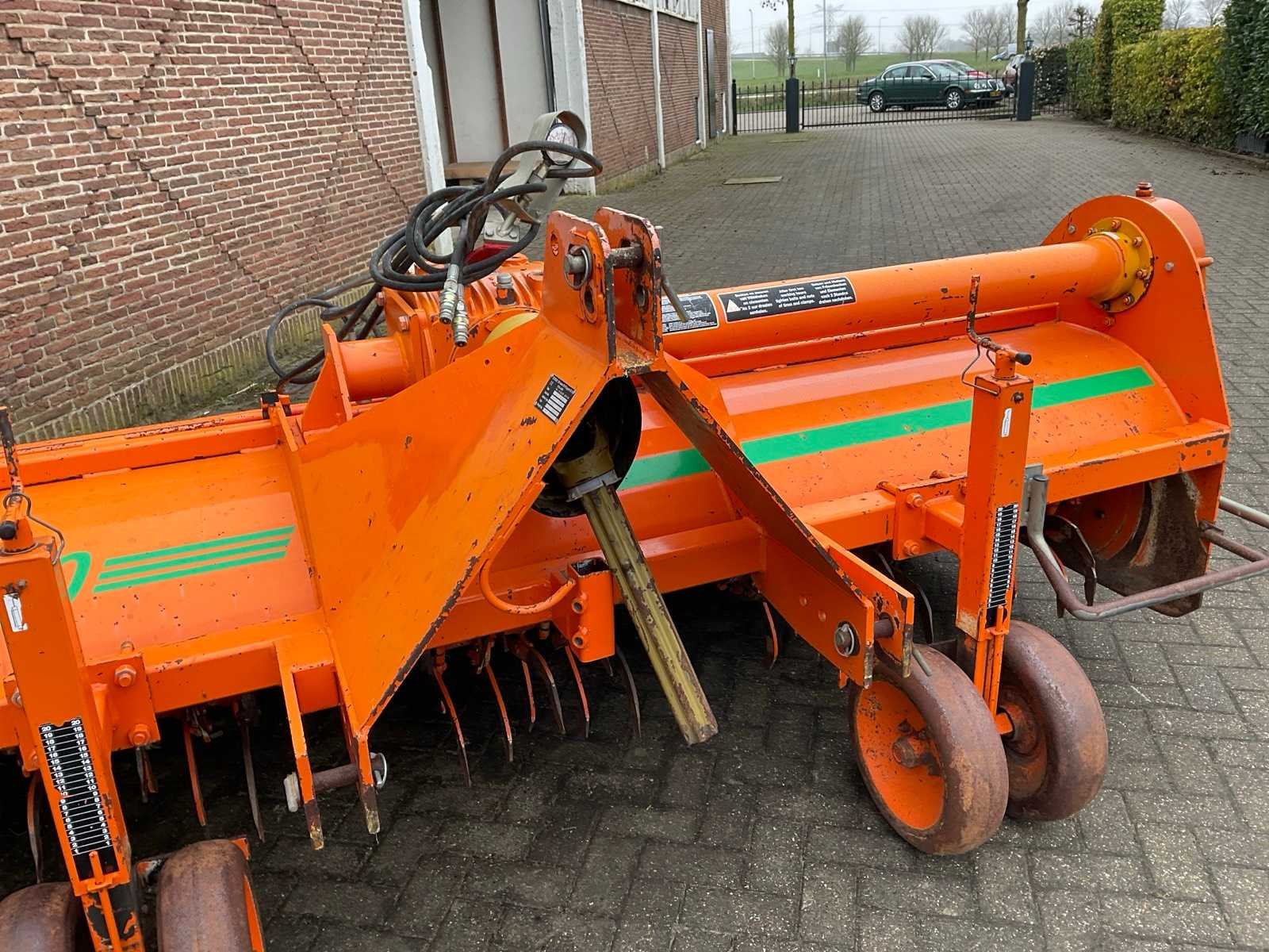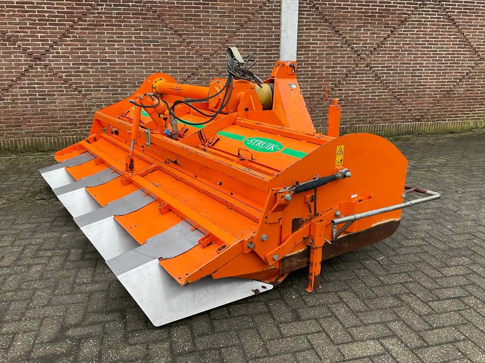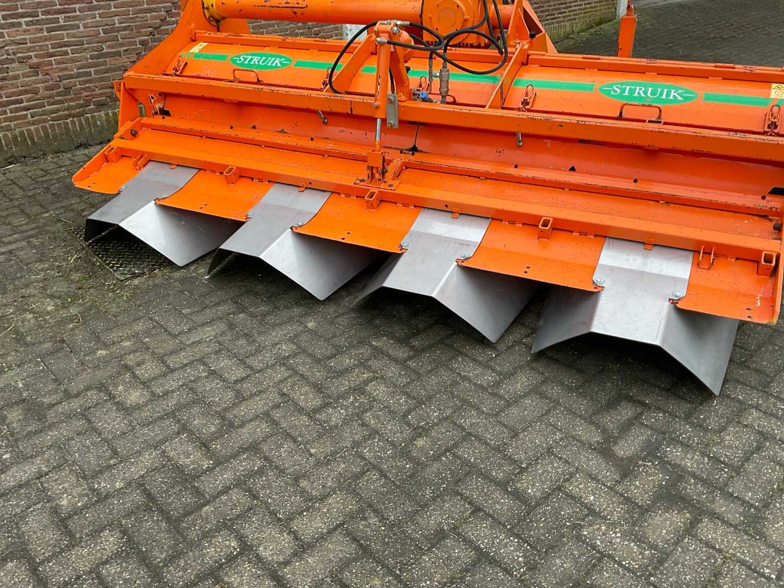 Bouwjaar: 2004, Struik ruggenfrees 4x75 met volveldset en sporenwissers. Merk: Struik Type: 4RF310 Bouwjaar: 2004 Serienummer: 0124405 Snelheid tot n =: 1000rpm Machinegewicht: 1250kg Afmeting l: 2250mm Afmeting b: 3500mm Afmeting h: 1300mm