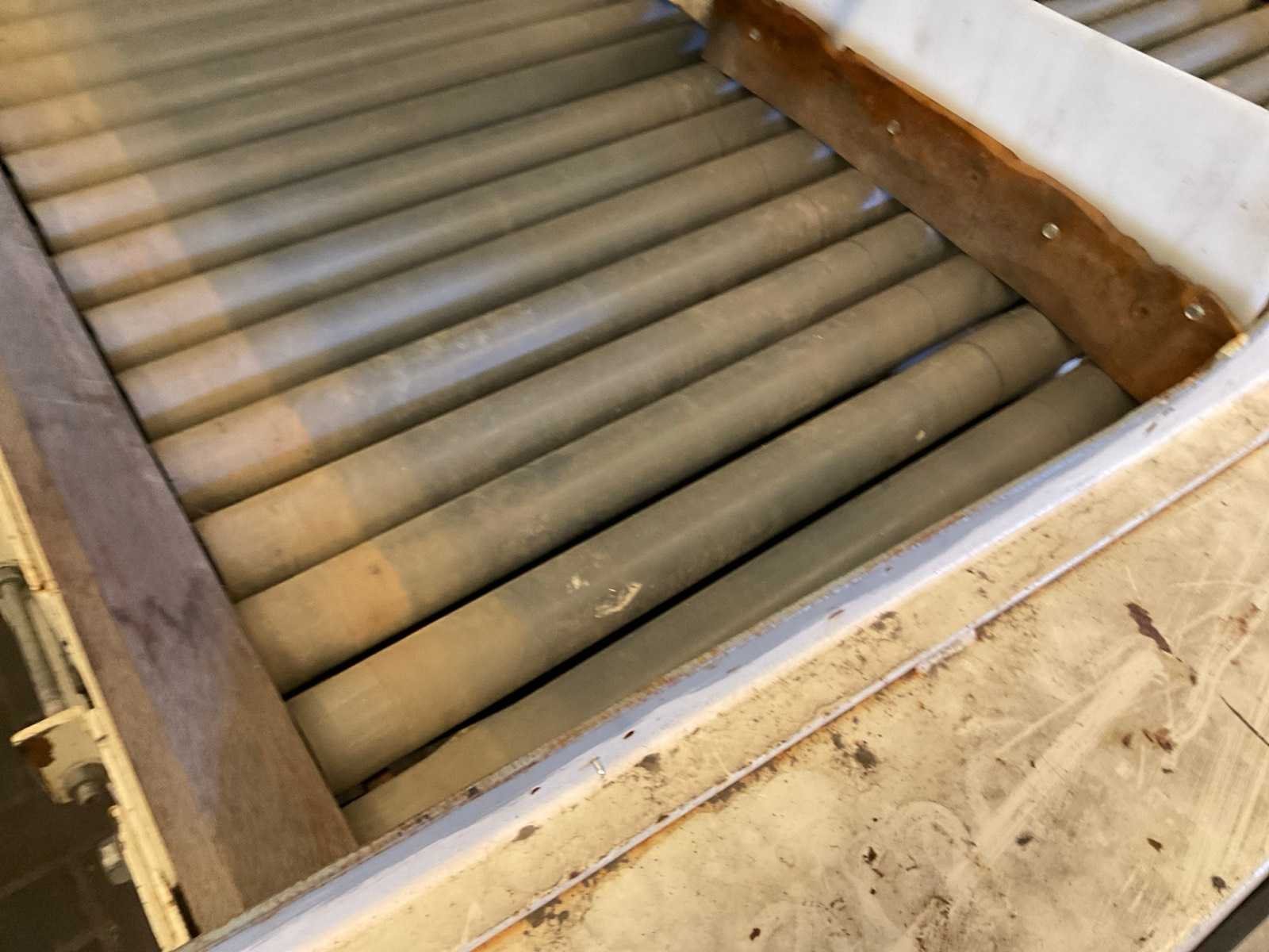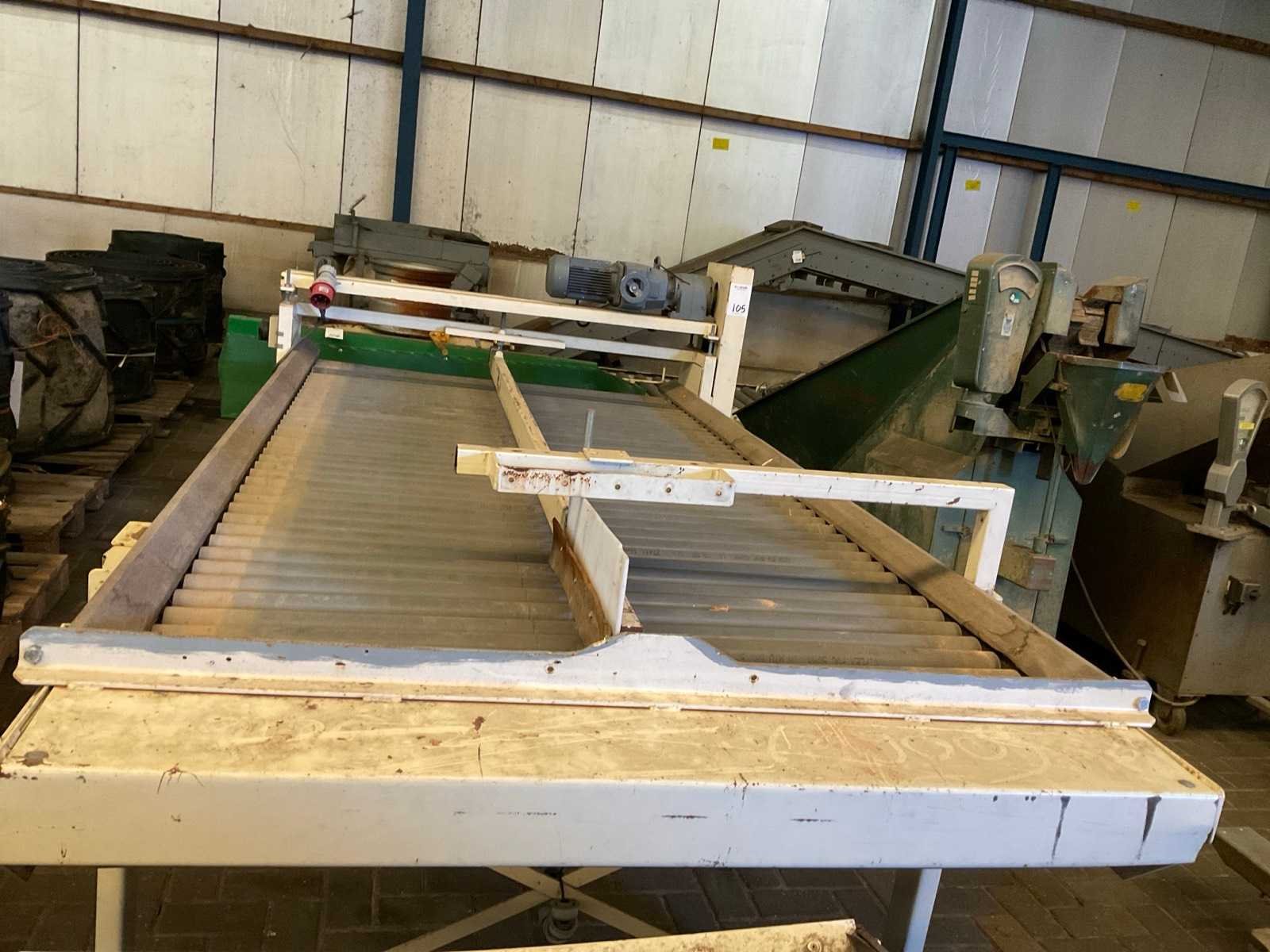Rollenleesband 2.50x1.20m. met variator motor (Grisnich) Merk: Grisnich Type: 35 Serienummer: 991247 Afmeting l: 2500mm Afmeting b: 1200mm Vermogen: 0.75kW Totale afmeting L: 3000mm Totale afmeting Breedte: 1530mm Totale afmeting Hoogte: 1450mm