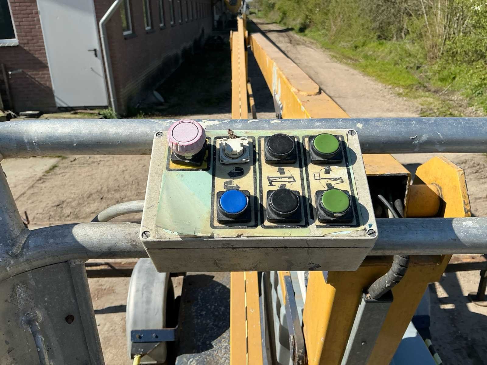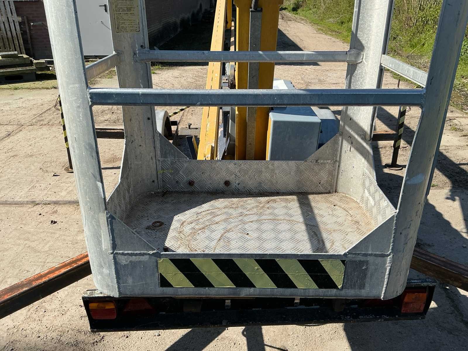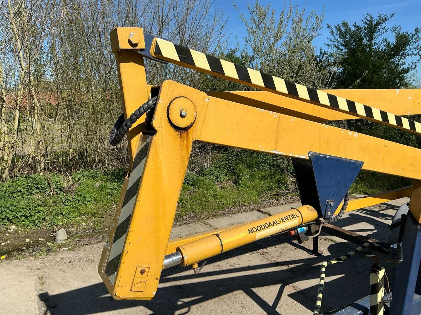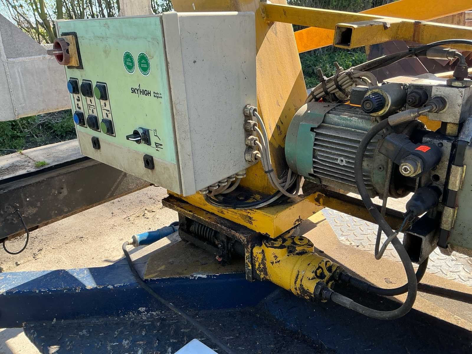 Voorzien van: type: 1200, bouwjaar: 1993, werkhoogte: ca. 12,20 meter, max. zijdelings bereik: ca. 4,50 meter, max. korfbelasting: 215 kg (geschikt voor 2 personen + gereedschap), eigen gewicht: ca. 1.120 kg, afmetingen werkbak: 1,10 x 0,65 meter, aandrijving: elektrisch 220V, voorzien van 4 mechanisch uitschuifbare stempelpoten voor snelle en veilige opstelling, 7 polige stekker, geen kenteken, stempelplaten. Merk: Sky High Type: 1200 Bouwjaar: 1993 Serienummer: AHC316 Elektrisch: true Knikarm hoogwerker: true Werkhoogte: 12000mm Horizontale rijkwijdte: 4500mm Plateau afm. l: 1100mm Plateau afm. b: 650mm Platform capaciteit: 215kg Accu lader: true Eigen gewicht: 1120kg Totale afmeting L: 5200mm Totale afmeting Breedte: 1400mm Totale afmeting Hoogte: 2000mm