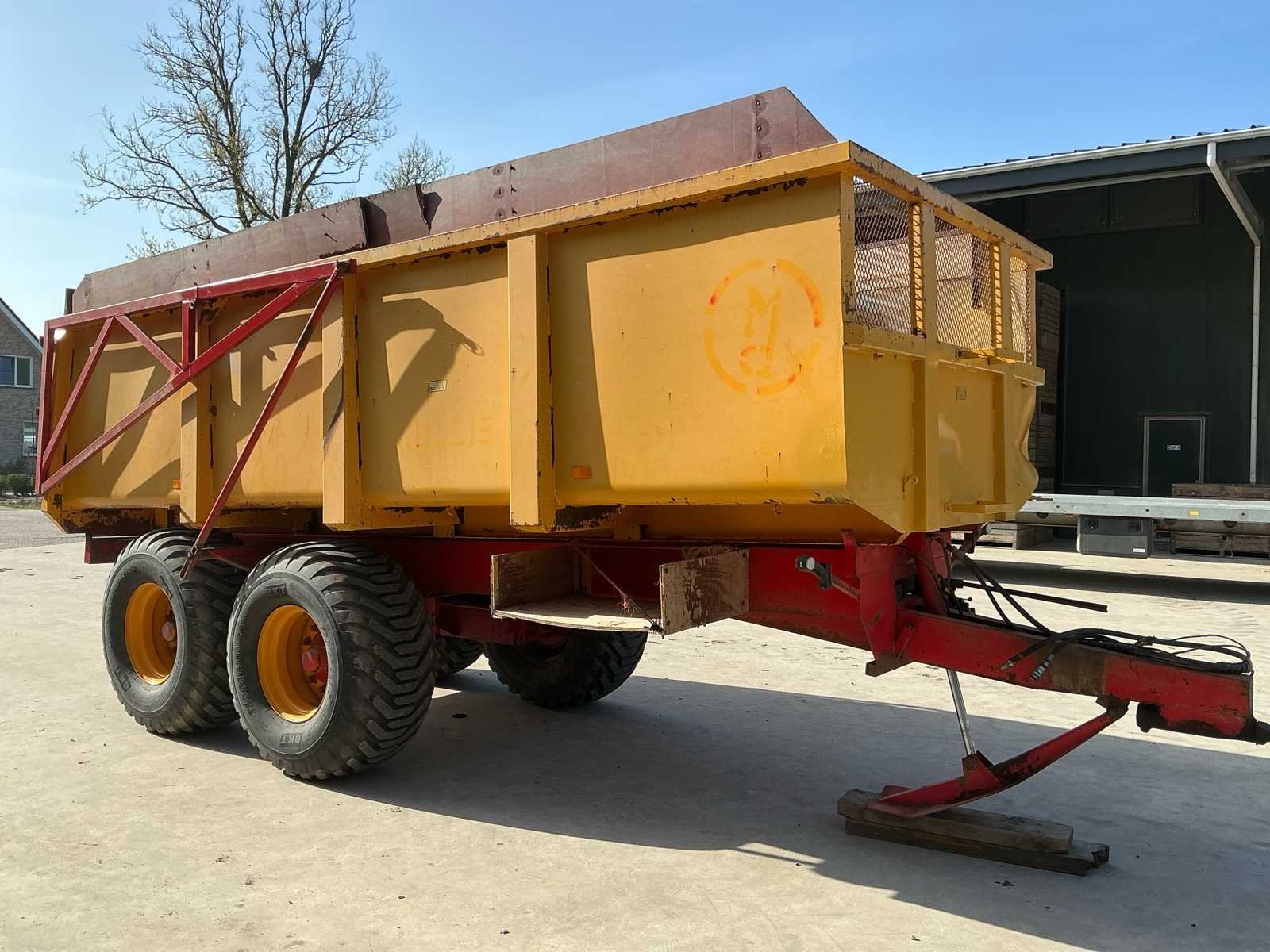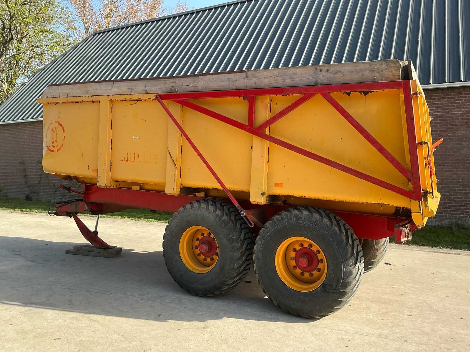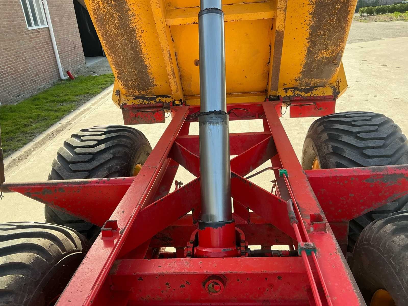 Voorzien van: LED verlichting Hydraulische remmen op 4 wielen Kipfunctie Trekookaansluiting Trekoog achter Zij markering led Handmatig hydraulische steunpoot BKT Flotation 550/60-22.5 banden Merk: Mullié Type: T12 Bouwjaar: 1996 Serienummer: 140696 Kenteken: LBF56L Aantal assen: 2 Bandenmaat: 550/60-22.5 Totaal max. gewicht: 12t Hydraulische remmen: true Eigen gewicht: 3400kg Totale afmeting L: 6700mm Totale afmeting Breedte: 2500mm Totale afmeting Hoogte: 2700mm