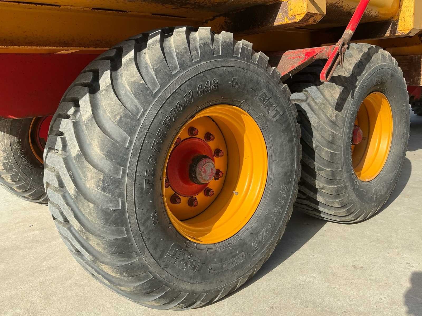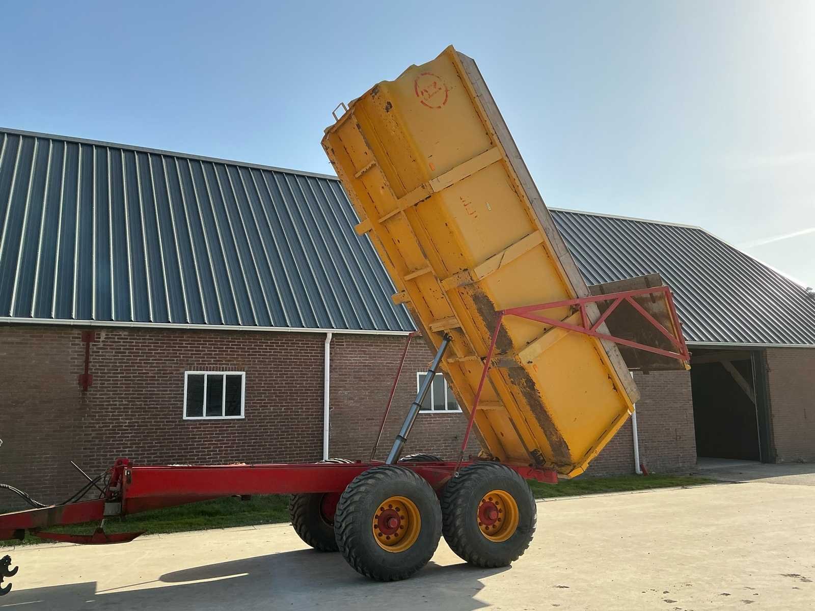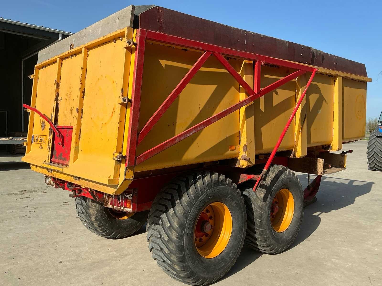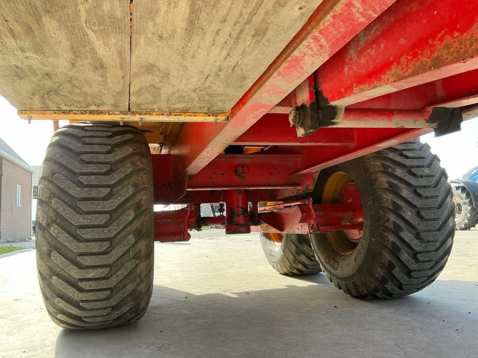 Voorzien van: LED verlichting Hydraulische remmen op 4 wielen Kipfunctie Trekookaansluiting Trekoog achter Zij markering led Handmatig hydraulische steunpoot BKT Flotation 550/60-22.5 banden Merk: Mullié Type: T12 Bouwjaar: 1996 Serienummer: 140696 Kenteken: LBF56L Aantal assen: 2 Bandenmaat: 550/60-22.5 Totaal max. gewicht: 12t Hydraulische remmen: true Eigen gewicht: 3400kg Totale afmeting L: 6700mm Totale afmeting Breedte: 2500mm Totale afmeting Hoogte: 2700mm
