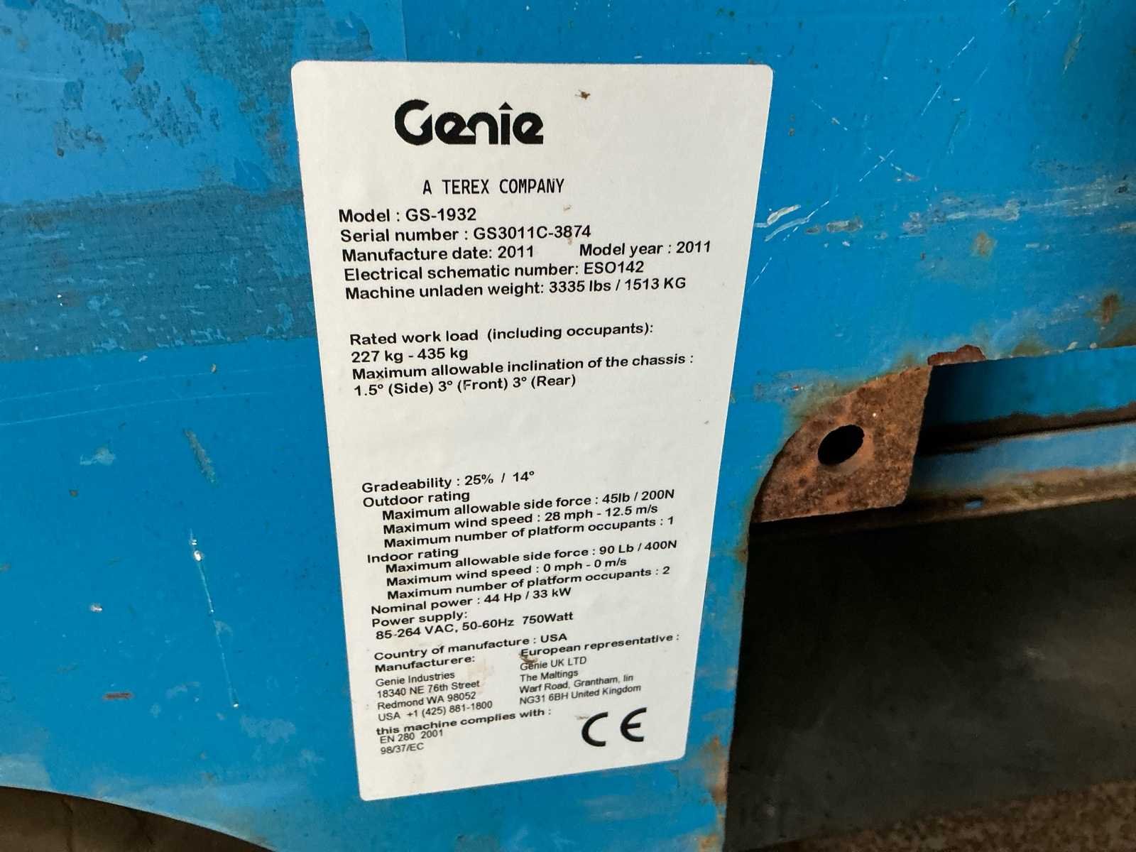 Voorzien van: noodstop, nonmarking banden, bedieningspaneel Merk: Genie Type: GS-1932 Bouwjaar: 2011 Serienummer: GS3011C-3874 Elektrisch: true Schaarhoogwerker: true Werkhoogte: 7800mm Plateau afm. l: 550mm Plateau afm. b: 1600mm Platform capaciteit: 227kg Afgelezen urenstand: 340 Eigen gewicht: 1513kg Totale afmeting L: 740mm Totale afmeting Breedte: 1800mm Totale afmeting Hoogte: 2100mm