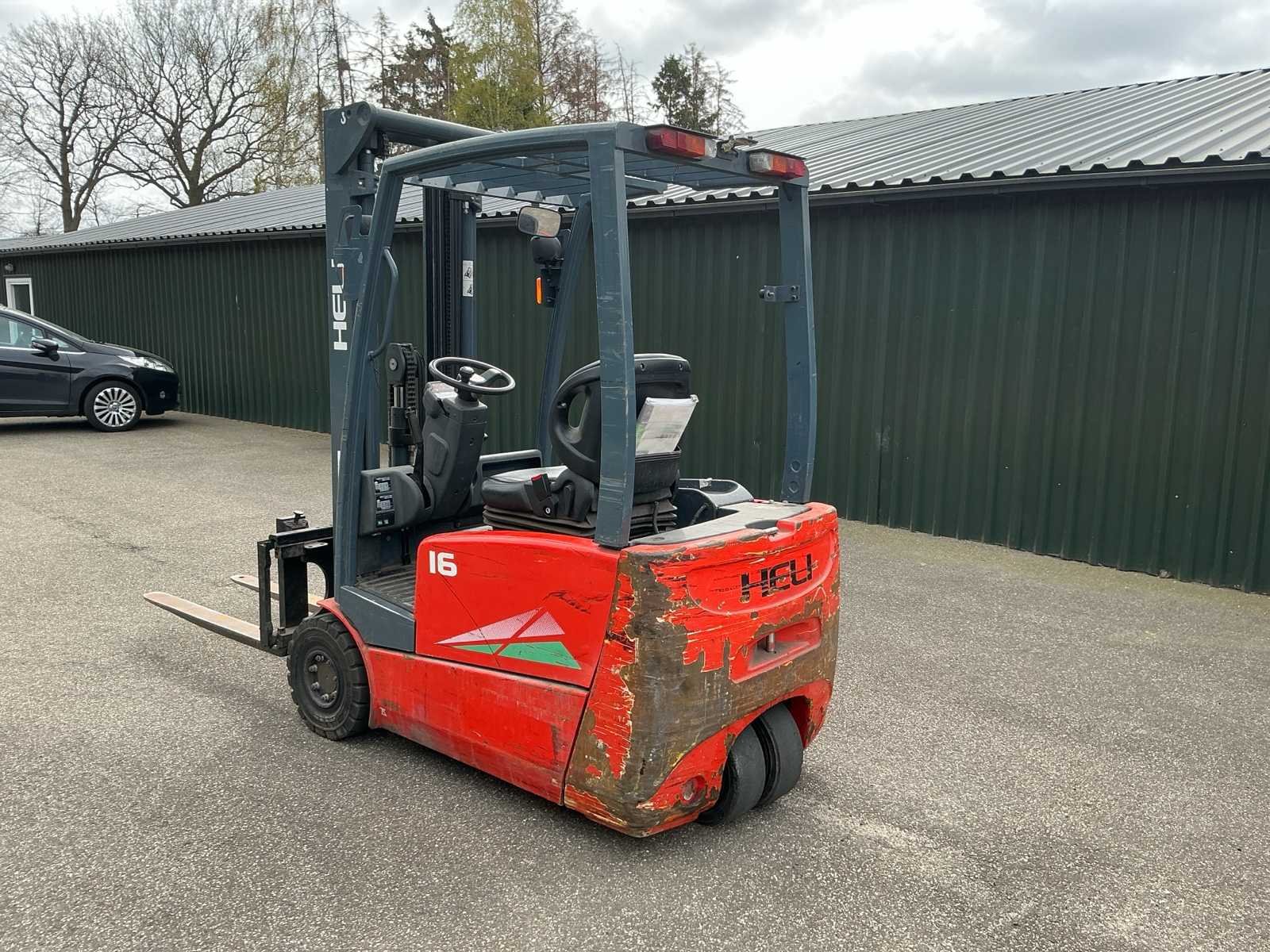 Voorzien van: verlichting, werkverlichting, metalen kooi, Merk: Heli Type: EFG216KN Bouwjaar: 2018 Serienummer: FN000331 Aantal wielen: 3 Free-lift: true Side-shift: true Triple mast: true Eigen gewicht: 3406kg Hefvermogen: 1600kg Lepellengte: 1140mm Max. hefhoogte: 5000mm Vol rubber banden: true Minimale doorrijhoogte: 2290mm Totale afmeting L: 3140mm Totale afmeting Breedte: 1050mm