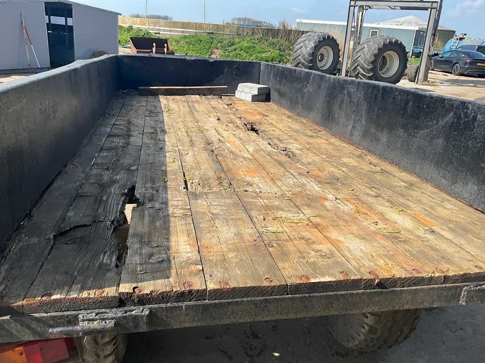 Voorzien van ringtrekhaak; neuswiel; 7 polige stekker; “BKT” 13.00/75R16 banden; binnenmaat laadbak 4000x1650 mm (lxb); opstaandernd circa 40 cm;