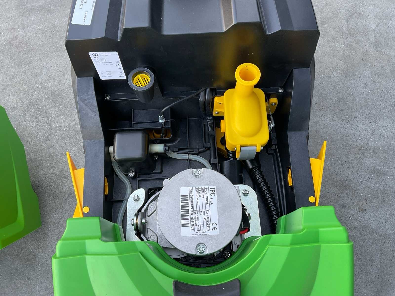 Voorzien van:230V lader, mini schrobzuigmachine, RDS-systeem (drogen tijdens achterwaarts rijden), dubbele vloerzuigmond, ergonomisch inklapbaar handvat, intuïtief bedieningspaneel, afneembare en eenvoudig te legen vuilwatertank, machinegedeelte goed bereikbaar voor onderhoud, gereedschapsloze vervanging van borstel/zuigrubbers/slangen, in hoogte verstelbare duwbeugel (ook tijdens gebruik), ECO Select functie (lager verbruik en geluidsreductie), geel gemarkeerde servicepunten, borstel met gebruiksindicator, Li-ion batterij 36 V, werktijd ca. 50 min, laadtijd ca. 3 uur, reinigingsmiddelentank 5 liter, vuilwatertank 5 liter, werkbreedte borstel 280 mm, werkbreedte zuigmond ca. 375 mm, productiviteit ca. 900 m²/u, afmetingen ca. 758 x 376 x 392 mm, gewicht ca. 19,8 kg, geluidsniveau ca. 58 dB Merk: Dibo Type: CT5-B28 Bouwjaar: 2019 Accu lader: true Oplaadbaar: true