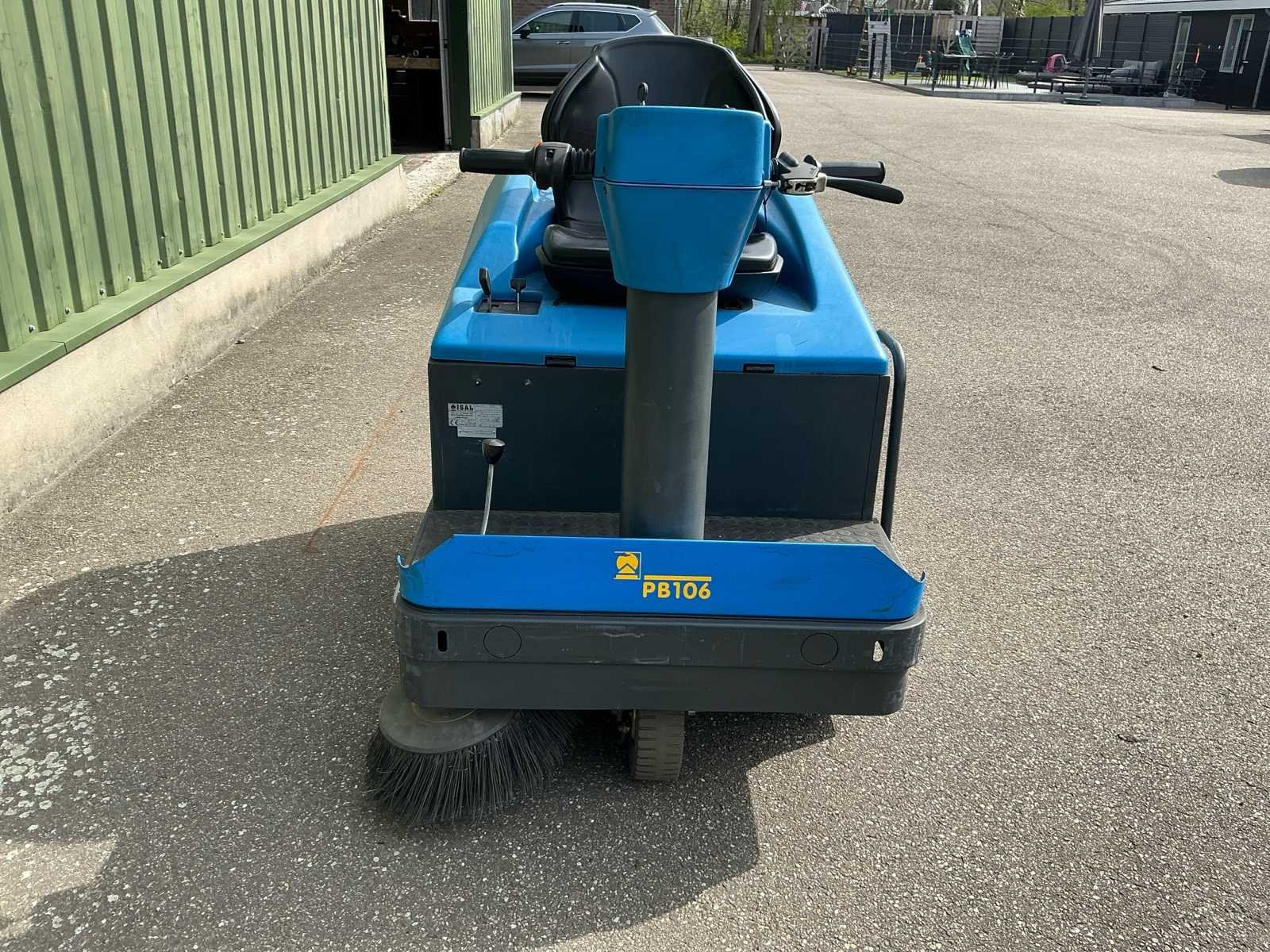 Voorzien van: Zijborstel, verlichting, claxon Merk: ISAL Type: PB106 Bouwjaar: 2012 Serienummer: 01101019127 Elektrisch aangedreven: true Met oplader: true Eigen gewicht: 478kg Totale afmeting L: 1400mm Totale afmeting Breedte: 880mm Totale afmeting Hoogte: 1250mm