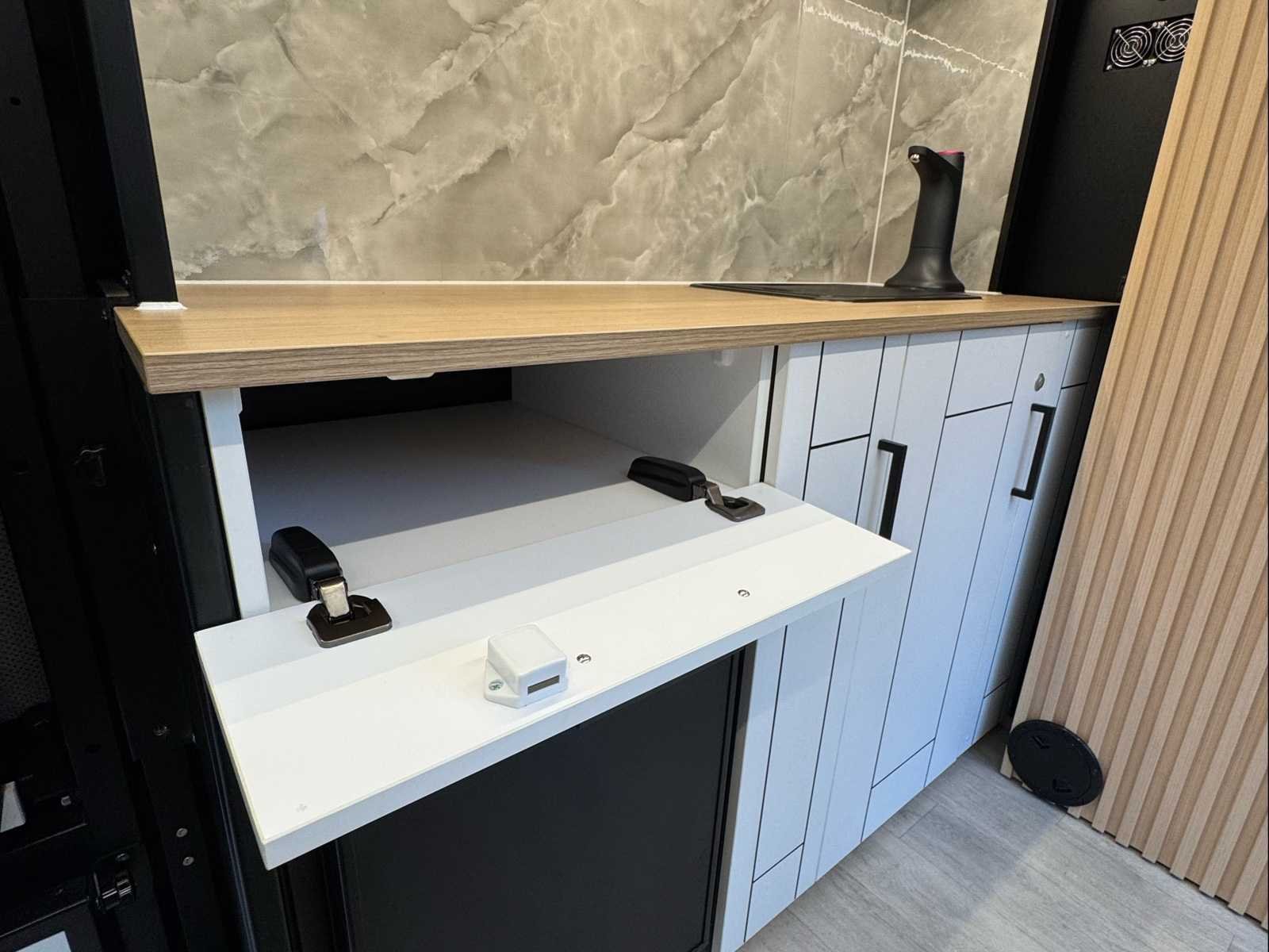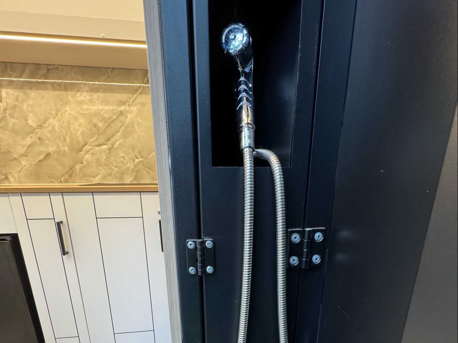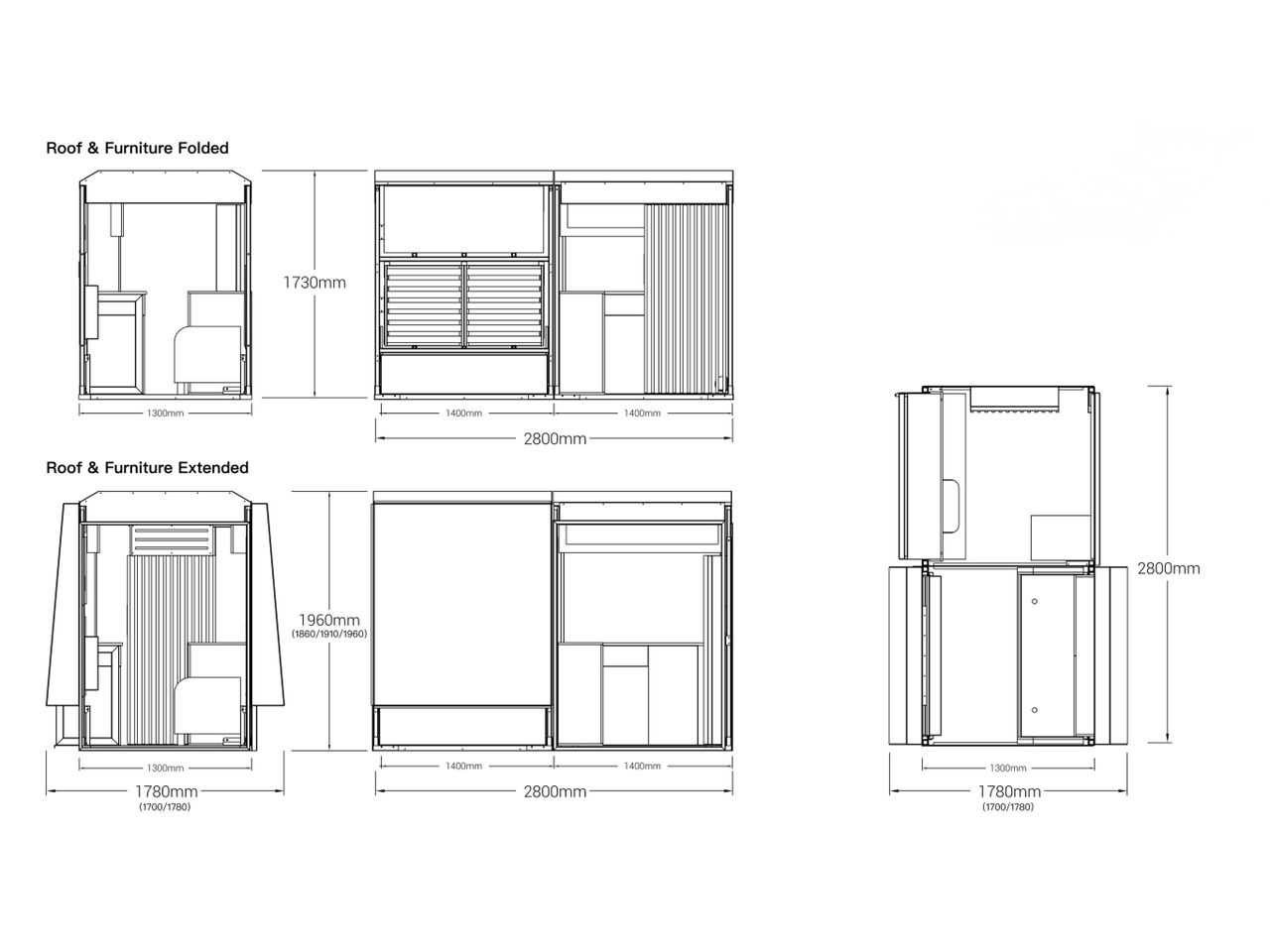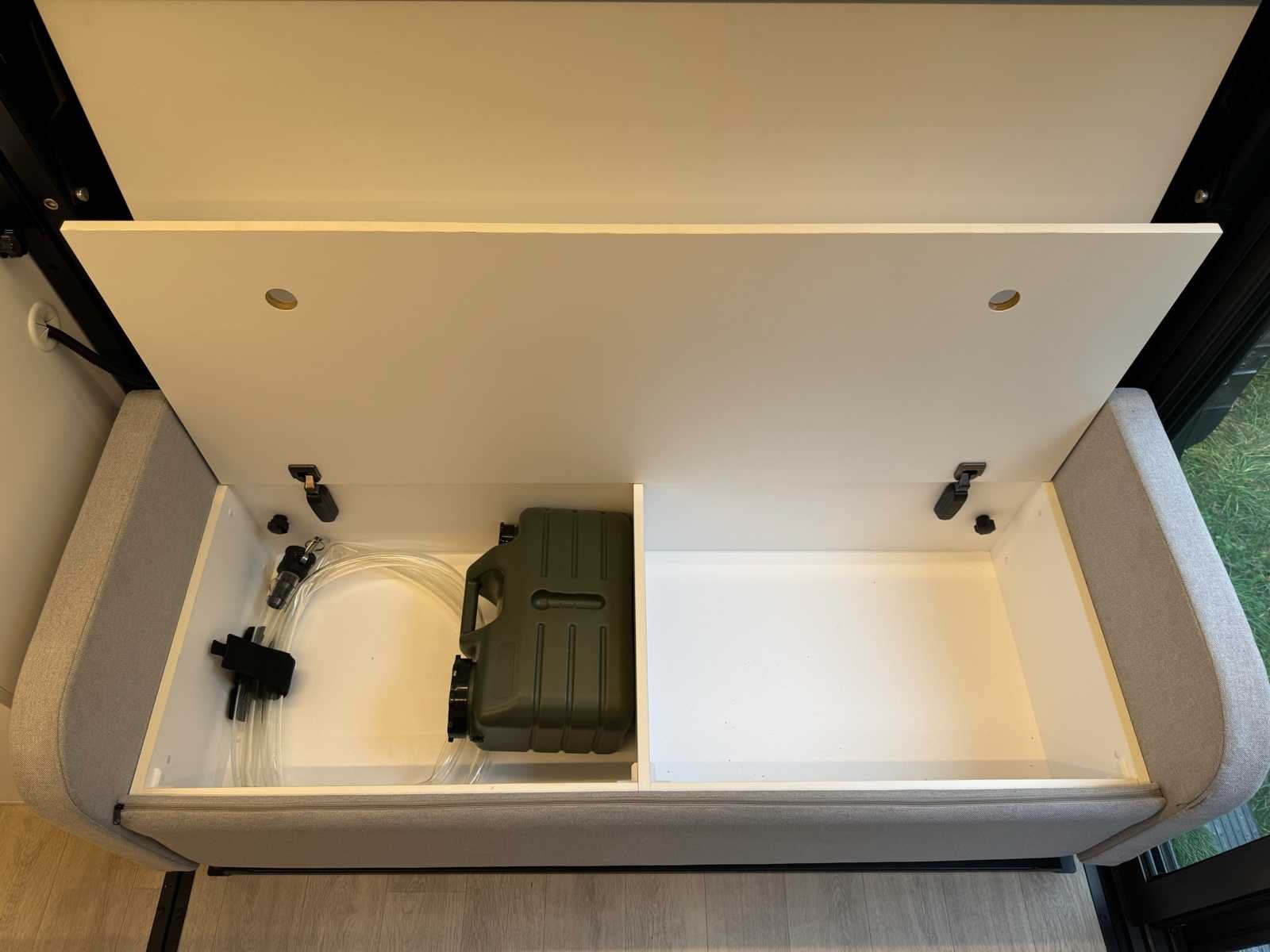Voorzien van: rails, 8 verbindingen met laadbak (door middel van spanbanden), binnen en buiten douche, 1x 2-persoons bed (breedte 120cm, lengte tot 190cm) en een kinder bed. mobiel zonnepaneel (200W), 2x glazen schuifdeur met hor, 49L koelkast, 52L schoonwatertank, 40L grijswatertank, TetFord toilet, brand en koolstofdioxide melder, 2x 1000W mobiele powerstation, led verlichting, rolbaar onderstel inbegrepen,