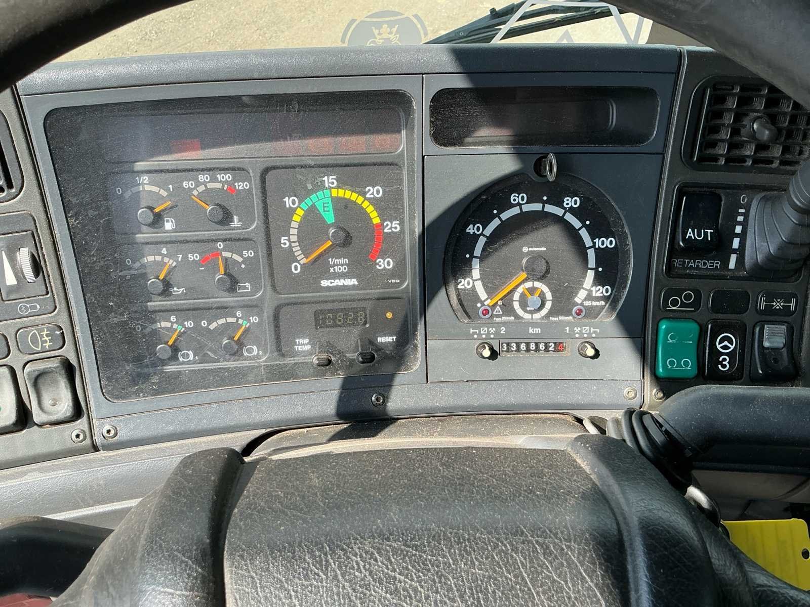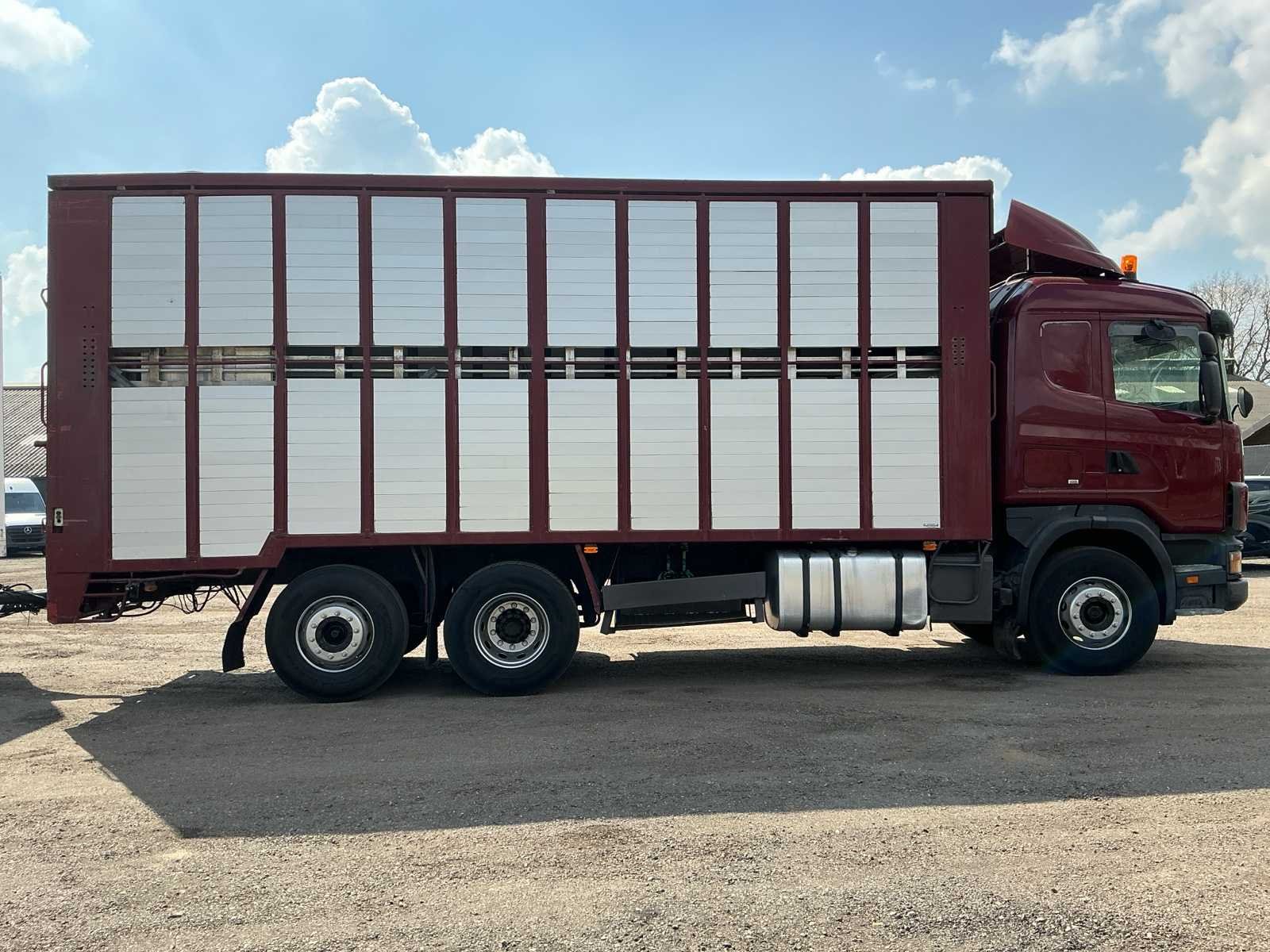 Voorzien van: handgeschakelde versnellingsbak, luchtgeveerde stoel, stuurknuppel, opbergkisten zijkant, zonneklep, dakspoiler, Veewagen opbouw, vangmuilkoppeling, werkverlichting, hoogslaper, laadvloer in hoogte verstelbaar met afstandsbediening Merk: Scania Type: 124G 420 Chassisnummer VIN: XLER6X20004484320 Kilometerstand bij opname: 336862km Aantal assen: 3 Asconfiguratie: 6x2 Fuel Type: Diesel Aantal sleutels: 2 Slaapcabine: true Hydraulische laadklep: true Gesloten opbouw: true Totale afmeting L: 9900mm Totale afmeting Breedte: 2550mm Totale afmeting Hoogte: 4100mm Aantal zitplaatsen: 2 Handgeschakelde versnellingsbak: true Diesel: true